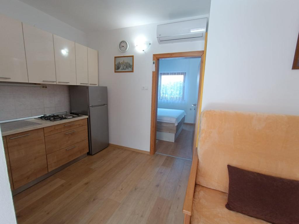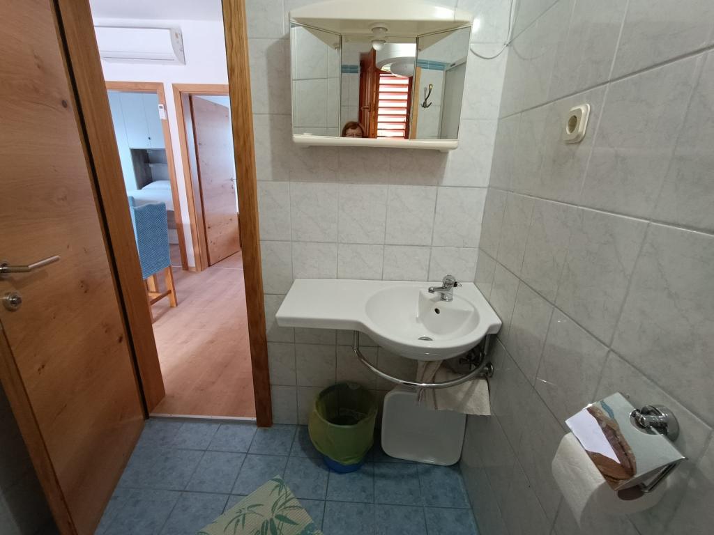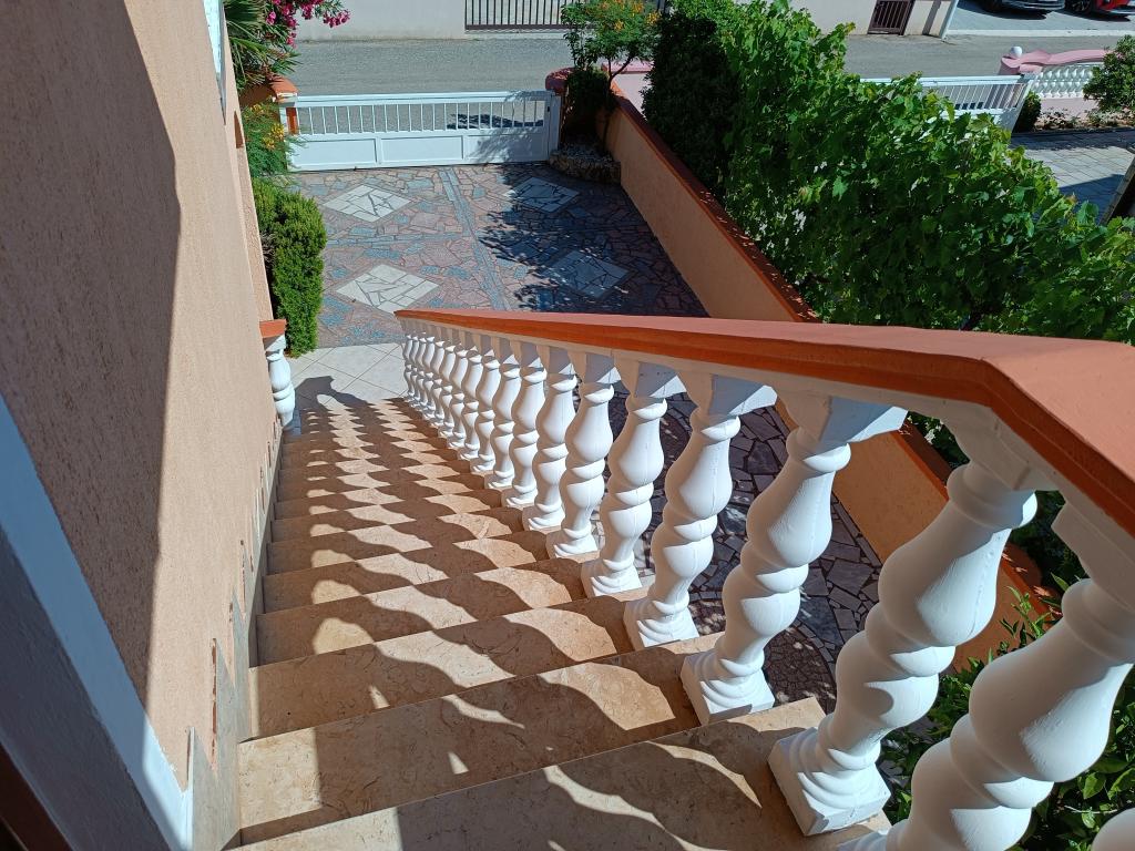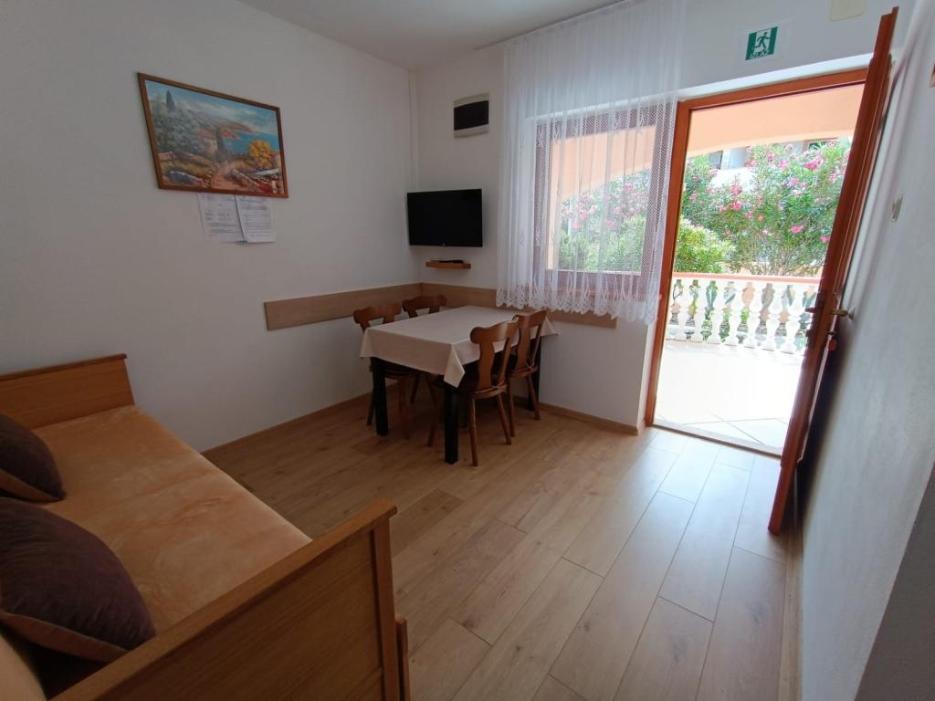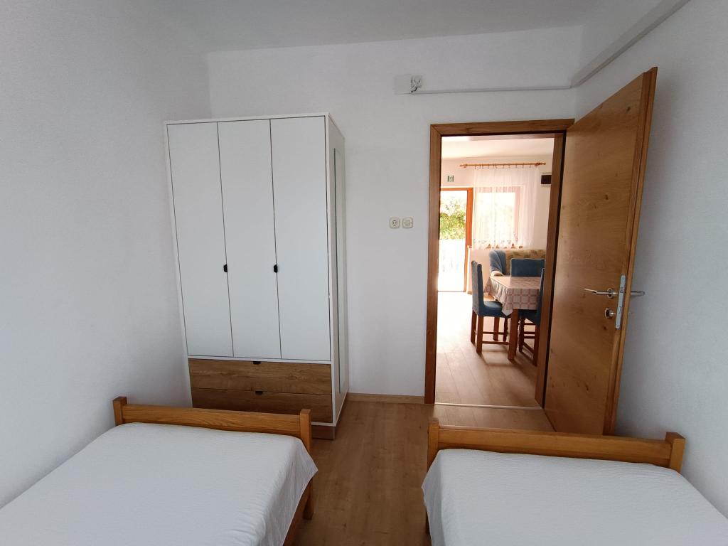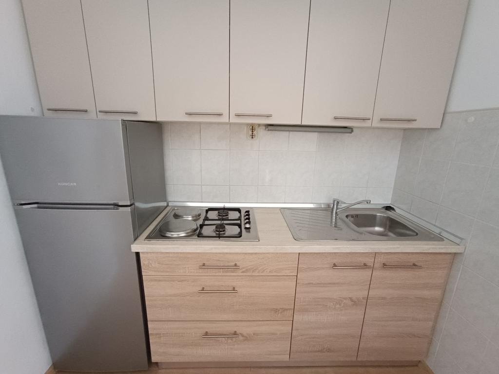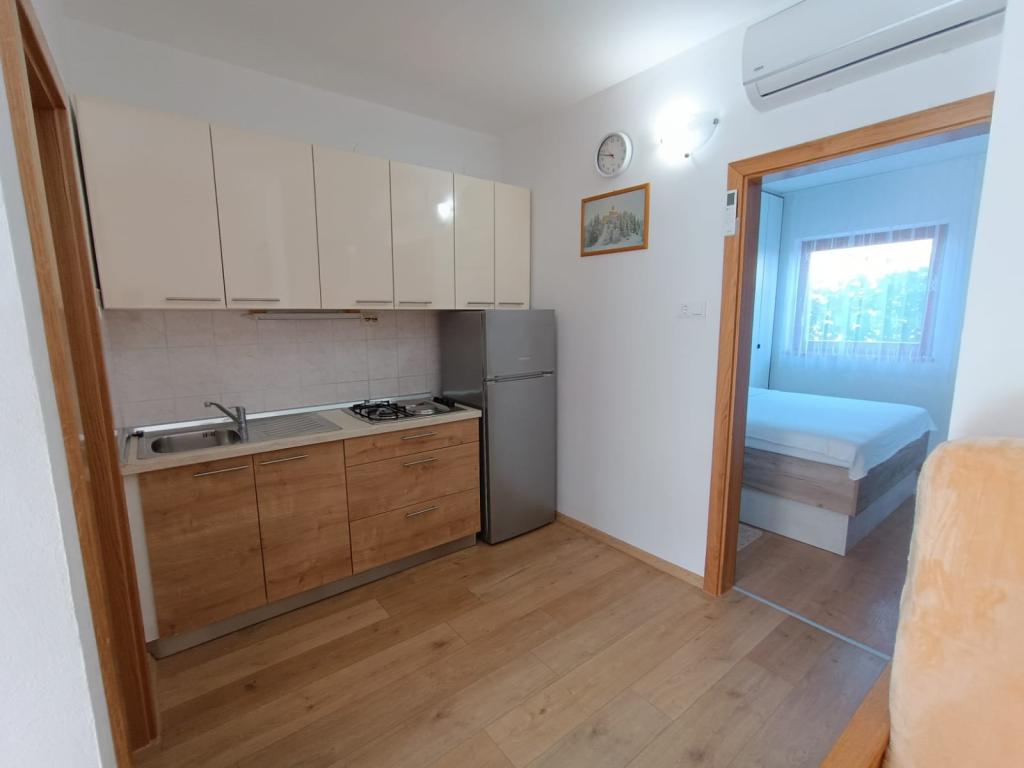 Vi udlejer tre identiske større lejligheder med aircondition til 4 personer, og en mindre lejlighed til to personer. En større er i stueetagen til venstre og to på første sal. Den mindre er i stueetagen til højre. Større lejligheder har to soveværelser og en stue, mens mindre lejligheder har et soveværelse og en stue. Hver lejlighed har en separat indgang og en terrasse på 12 kvadratmeter. I lejlighederne får du alt sengetøj og service til madlavning og servering af mad og drikke. Gæster bedes medbringe egne midler til opvask og aftørring samt håndklæder til badeværelset og alt til personlig hygiejne. Den nærmeste strand (Žitna uvala) ligger 100 m væk Udenfor på stranden er der grus, og i vandet er der sand. Den er velegnet til børn. Der er en lang promenade og cykelsti langs stranden. Der er flere restauranter og en isbar på stranden. Inden for en radius af 150-250 meter er der en frugtbutik, et bageri, flere dagligvarebutikker og butikker med strandudstyr. Vores gade er ikke befærdet. Det bruges kun af sine lejere og gæster. Den er asfalteret og har offentlig belysning.