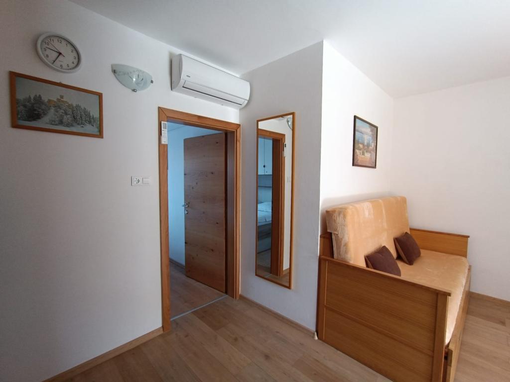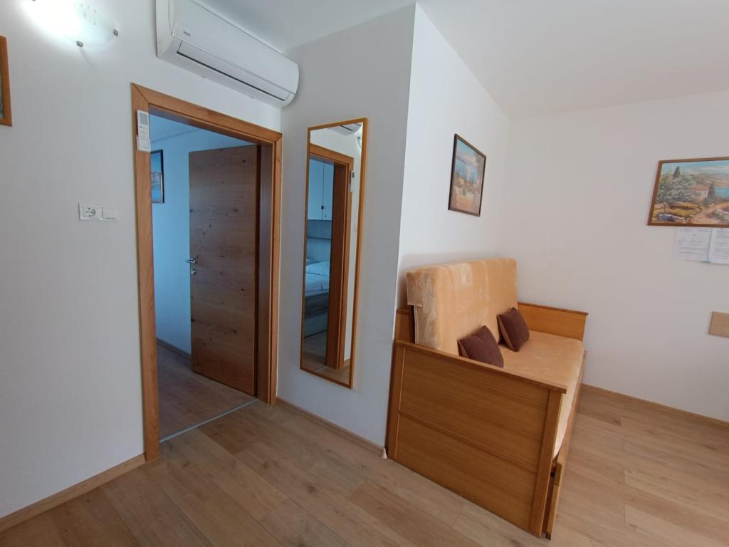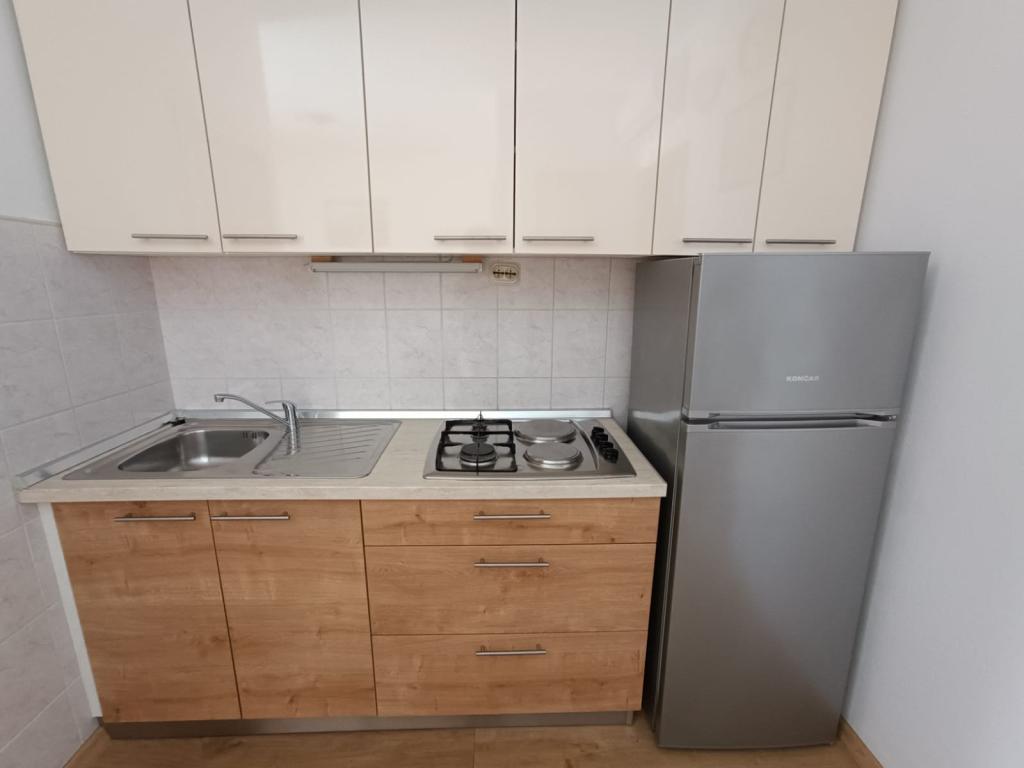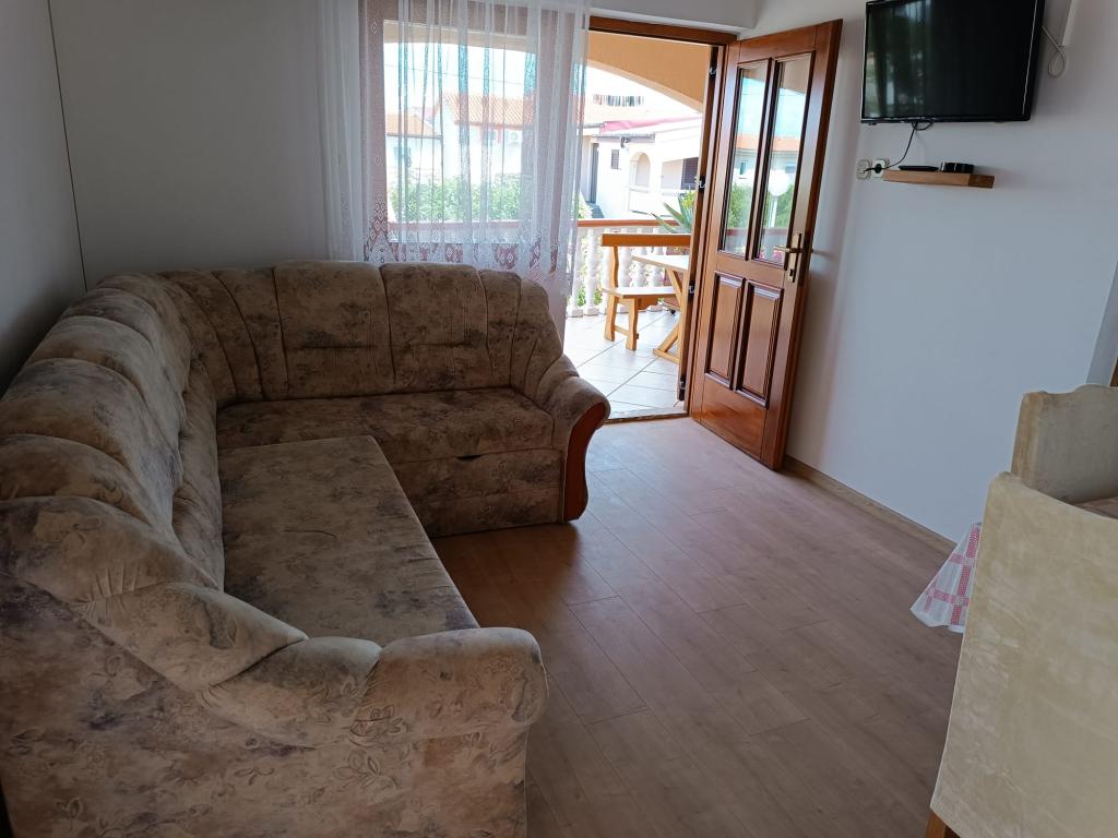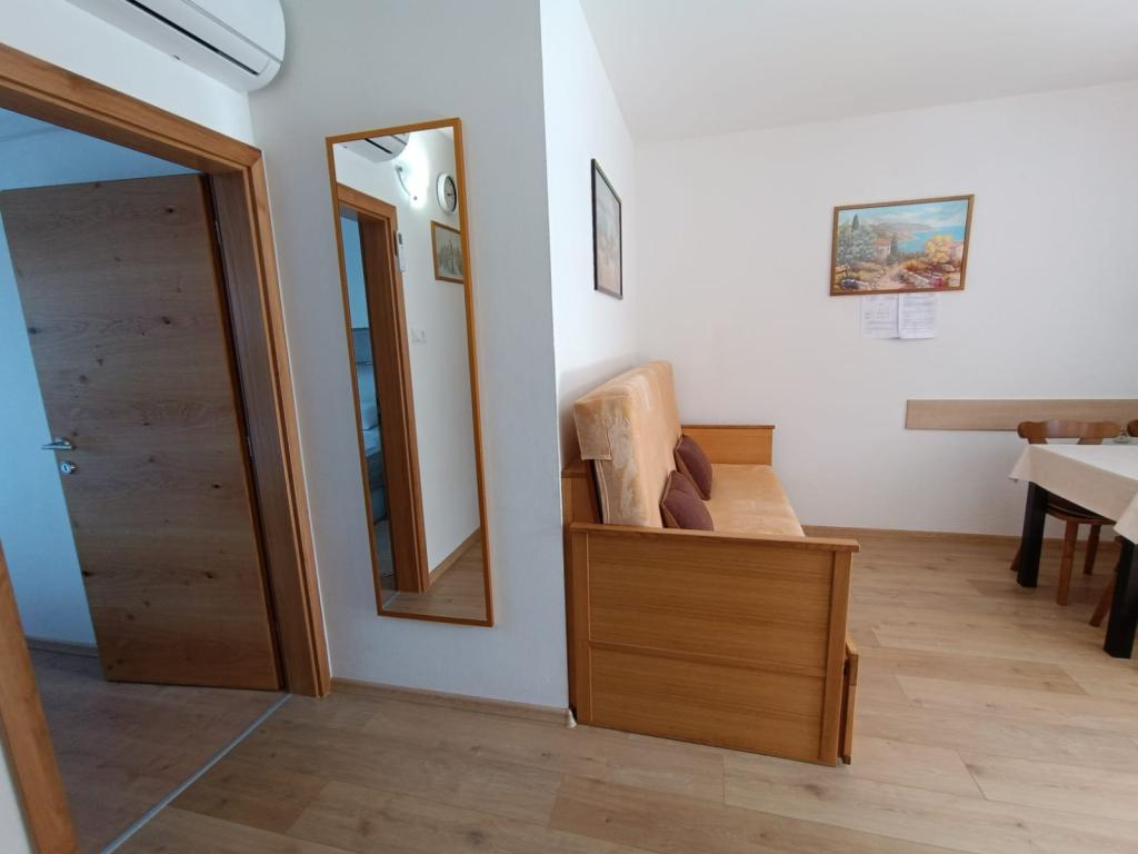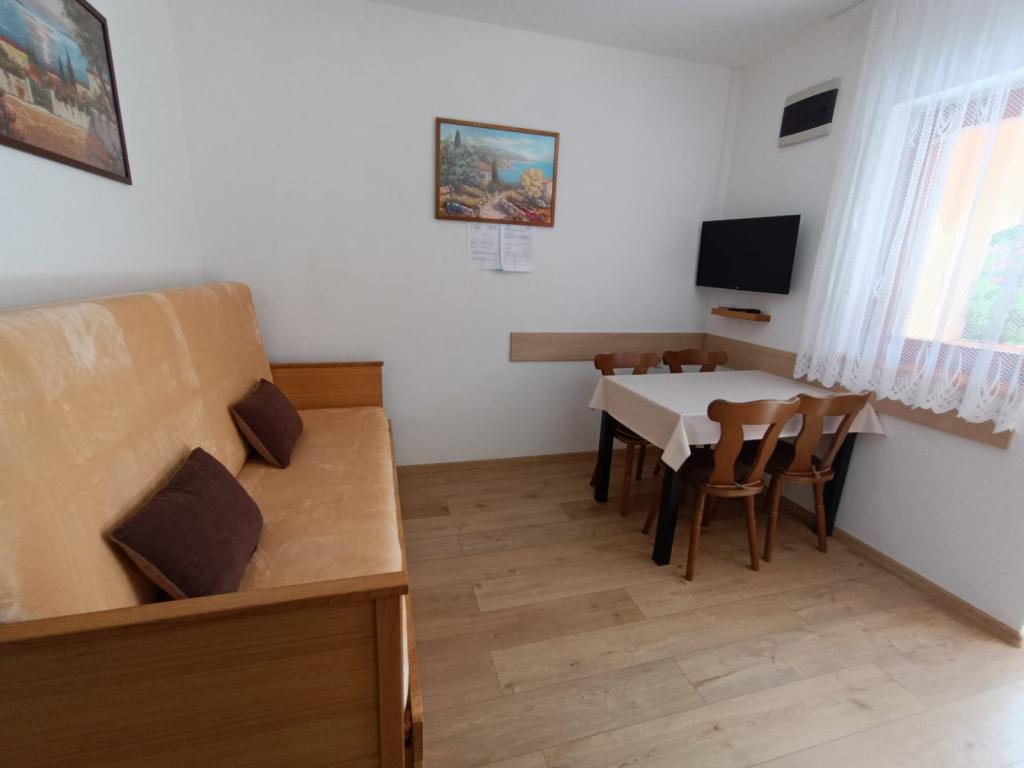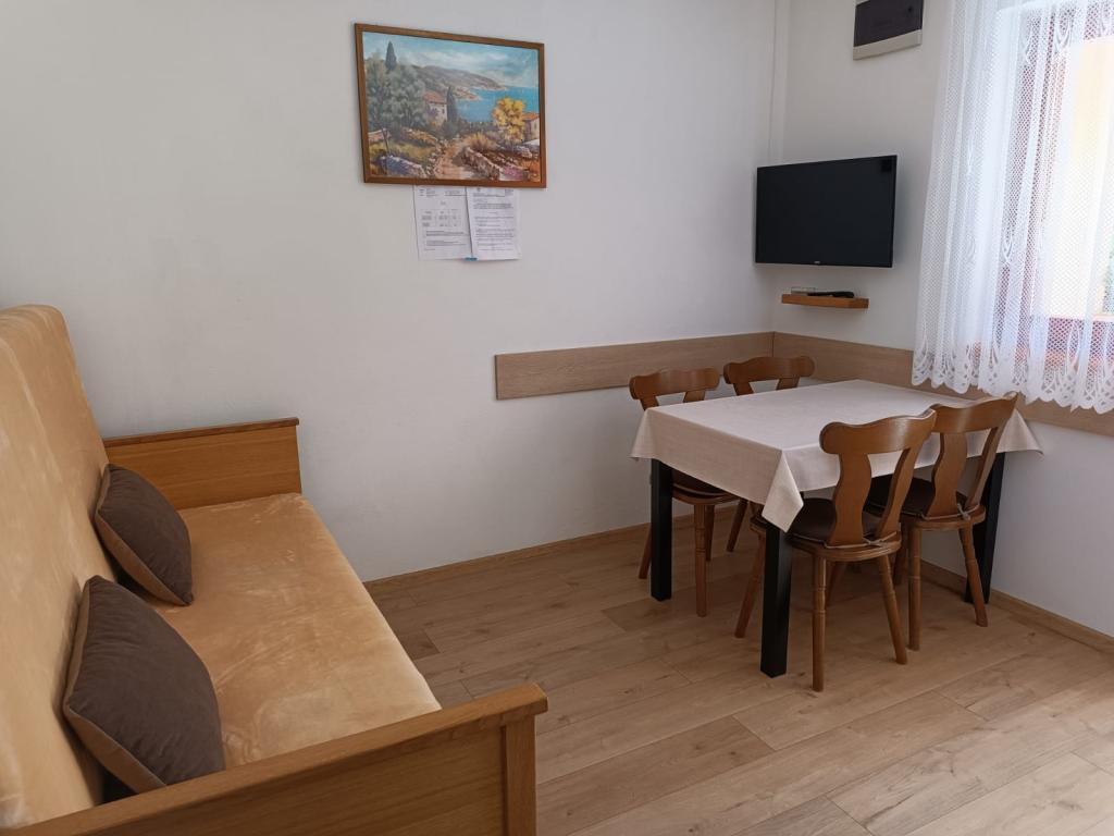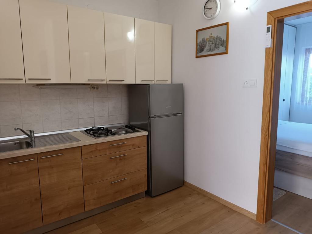 Vi udlejer tre identiske større lejligheder med aircondition til 4 personer, og en mindre lejlighed til to personer. En større er i stueetagen til venstre og to på første sal. Den mindre er i stueetagen til højre. Større lejligheder har to soveværelser og en stue, mens mindre lejligheder har et soveværelse og en stue. Hver lejlighed har en separat indgang og en terrasse på 12 kvadratmeter. I lejlighederne får du alt sengetøj og service til madlavning og servering af mad og drikke. Gæster bedes medbringe egne midler til opvask og aftørring samt håndklæder til badeværelset og alt til personlig hygiejne. Den nærmeste strand (Žitna uvala) ligger 100 m væk Udenfor på stranden er der grus, og i vandet er der sand. Den er velegnet til børn. Der er en lang promenade og cykelsti langs stranden. Der er flere restauranter og en isbar på stranden. Inden for en radius af 150-250 meter er der en frugtbutik, et bageri, flere dagligvarebutikker og butikker med strandudstyr. Vores gade er ikke befærdet. Det bruges kun af sine lejere og gæster. Den er asfalteret og har offentlig belysning.