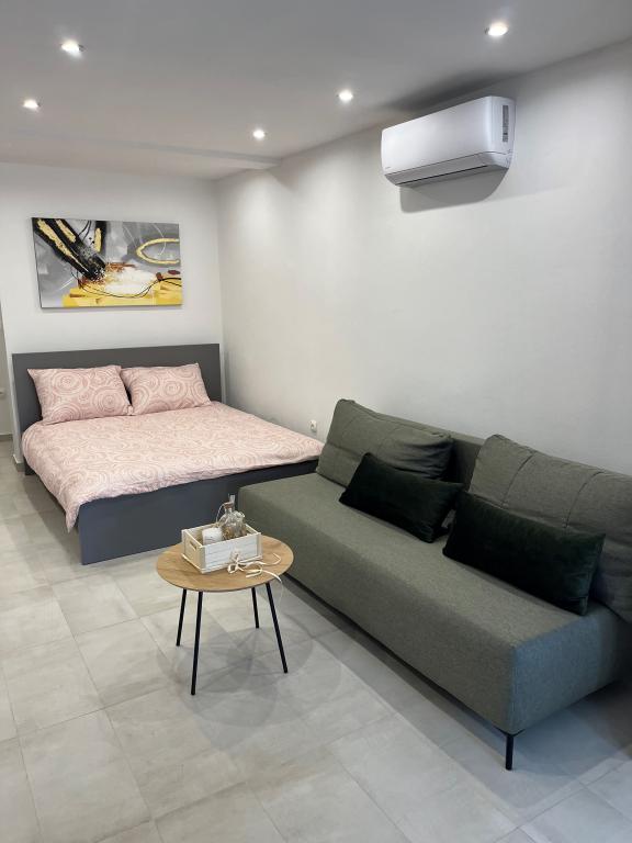 Apartments BB er nyindrettede, fuldt udstyrede lejligheder med aircondition. De ligger i en stille ensrettet gade, hvor trafikken kun er for gadens beboere, hvilket også gør det til en sikker zone for børn at lege. Der er også en parkeringsplads til hver lejlighed. Lejlighederne ligger 150 m fra den anlagte stenstrand og den nærliggende bugt med sandstrand. Butikker er kun 200 m fra lejligheden, og det nærliggende bageri ligger 100 m væk. Nærhed til diverse faciliteter er en stor fordel ved disse lejligheder, men den største kvalitet er bestemt den følelse, som lejlighederne giver - som hjemme!