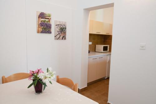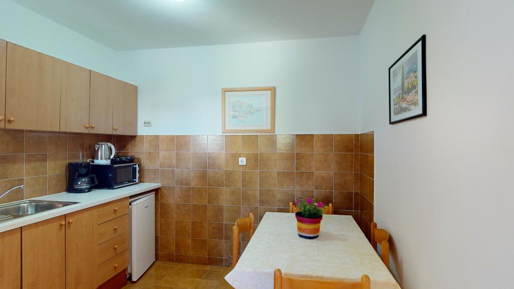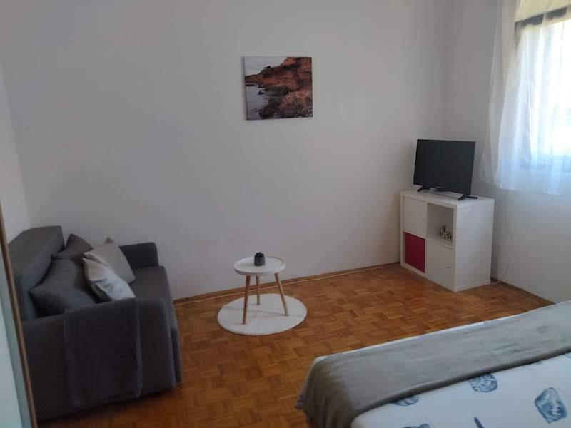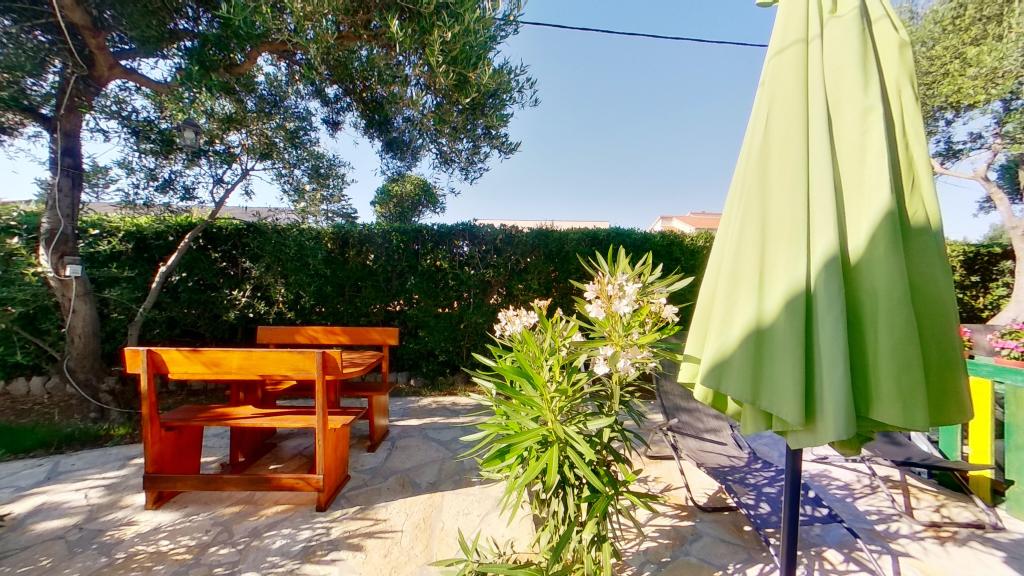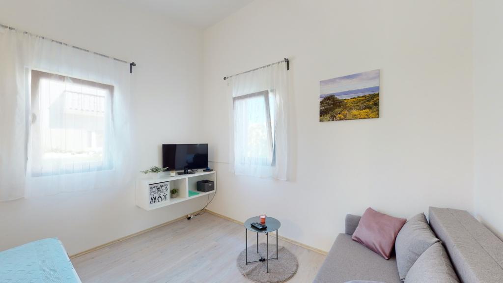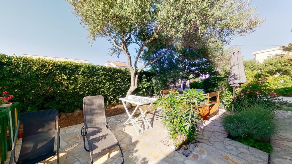 Fuldt møbleret lejlighed i stueetagen. Foran lejligheden ligger en 40 m2 stenterrasse omgivet af grønne områder. Parkering og grill i bygningens gårdhave. Alt til et behageligt ophold er tilgængeligt inden for en radius af 250 m: strand, centrum, marked, restaurant.