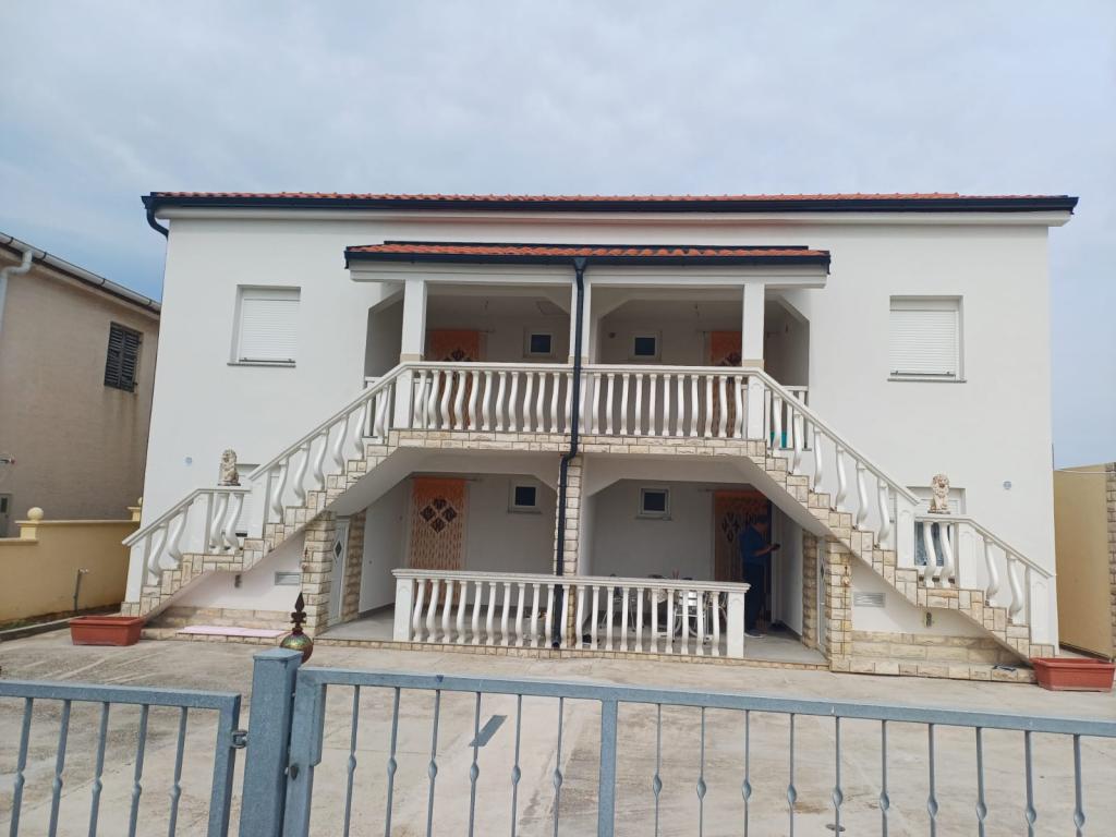 Huset består af 4 boligenheder, 2 på hver etage. Der er i alt 3 lejligheder til leje, 2 på øverste etage og 1 lejlighed i kælderen. Alle enheder er identiske med 2 soveværelser, en terrasse, en entré, et fuldt udstyret køkken og et badeværelse. Hver enhed har et LCD-tv med satellitkanaler og aircondition. En grill samt et opholdsområde i haven er til rådighed til almindelig brug. Hver enhed har dog også sin egen private terrasse/balkon. De nærliggende strande er for det meste af småsten, men vandet har det fineste sand. Især for familier med børn. Aircondition koster ekstra €1/time.