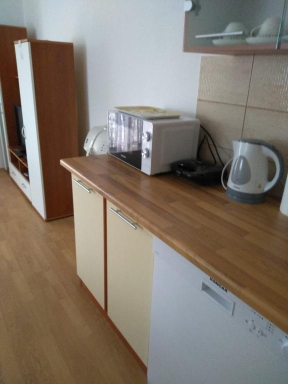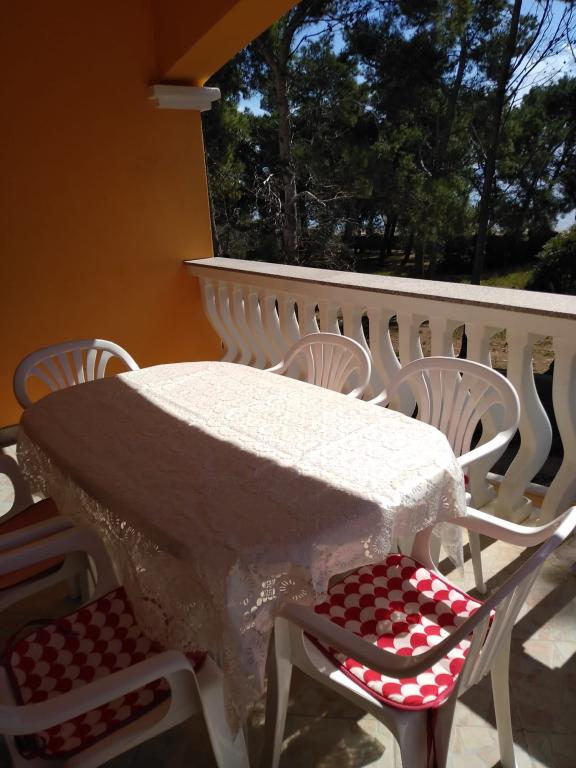 Fuldt udstyret lejlighed i en stille gade. Terrassen har udsigt over fyrrelunden og havet. Lejligheden er fuldt møbleret med alle fornødenheder såsom wi-fi, aircondition, mikroovn, komfur, koldt og varmt vand dispenser mv. Parkering er placeret i husets gård. Stranden ligger 2 minutters gang derfra.