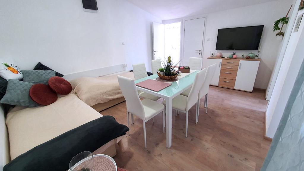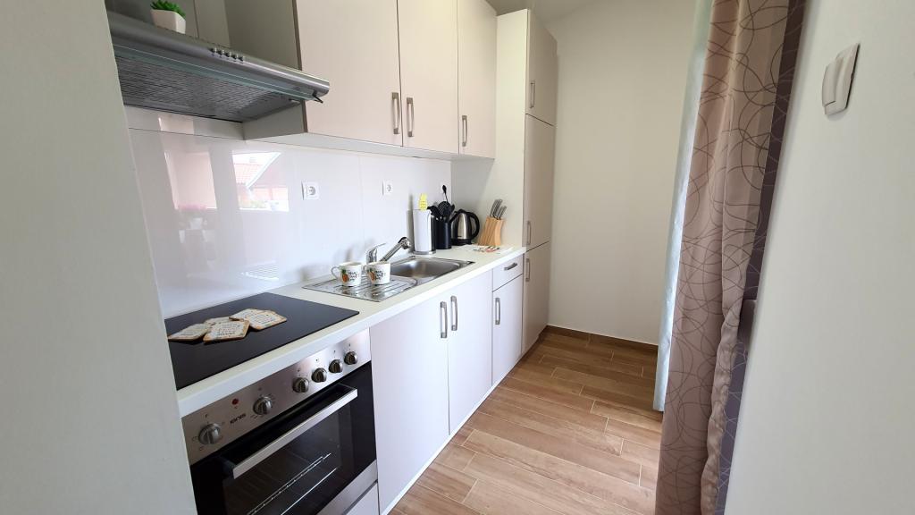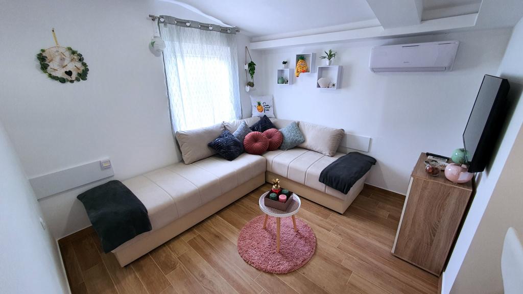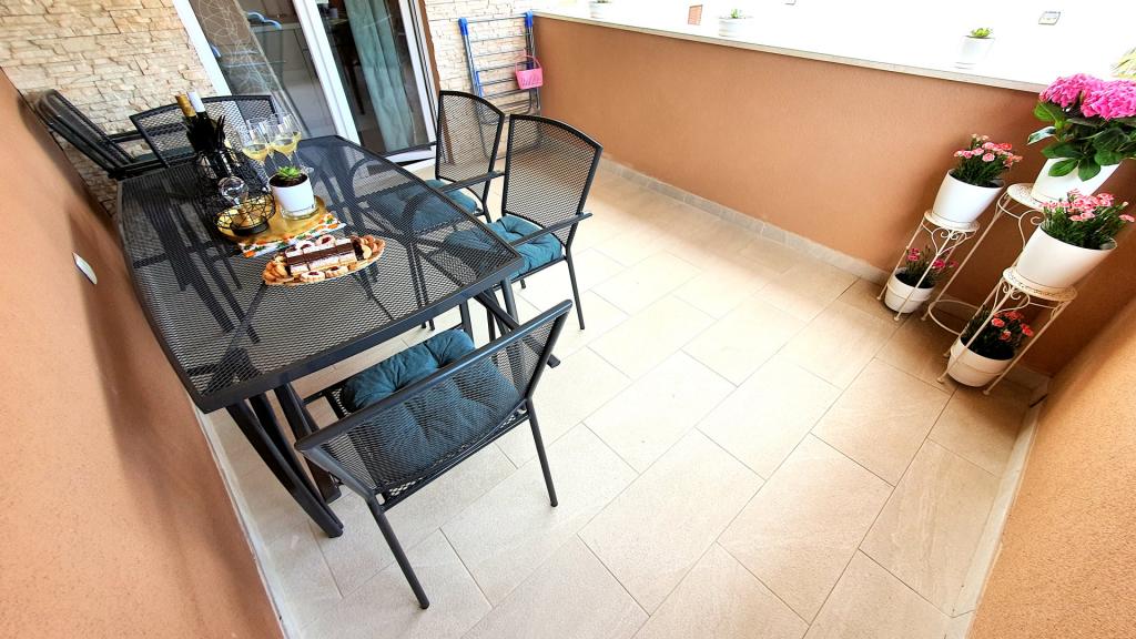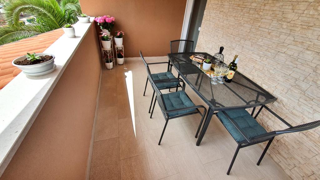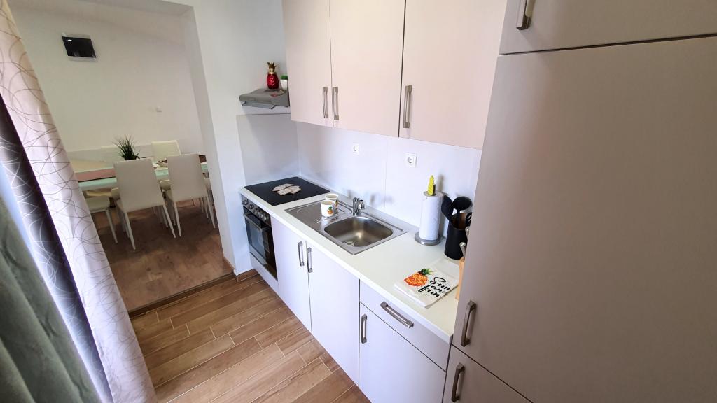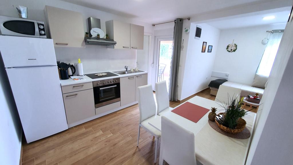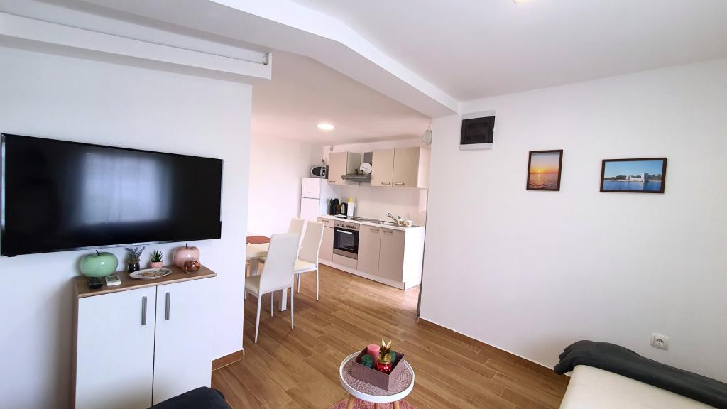 Nyindrettede, moderne lejligheder på øen Vir er udstyret med alt, hvad du behøver for en behagelig og afslappende ferie. Lejlighederne ligger på første sal i familiehuset og har hver sin egen store terrasse samt et fuldt udstyret køkken, badeværelse og soveværelse samt en tilhørende parkeringsplads, der er under 24-timers videoovervågning for din bils sikkerhed. Lejlighederne ligger i en rolig del af øen uden nattetøj og er velegnede til børn at lege, da mange strande har sandbund og er meget lavvandede i de fleste dele, hvilket gør dem til et ideelt valg for forældre med børn. I nærheden er der forskellige strande, promenader samt alle andre faciliteter såsom butikker, bagerier, caféer, restauranter, apoteker, klinikker, kirker, posthuse og busstationer. Alle faciliteter er inden for gåafstand, og det er ikke nødvendigt at bruge en bil under dit ophold. Alle lejligheder har wi-fi, aircondition og en vaskemaskine, som er inkluderet i prisen. For alle andre oplysninger og spørgsmål, er du velkommen til at kontakte os.