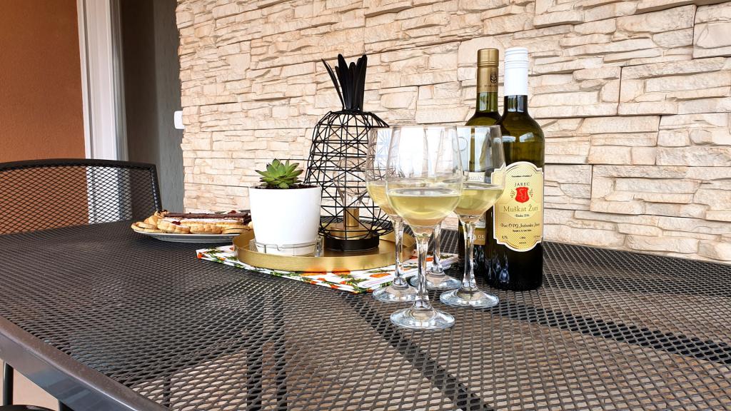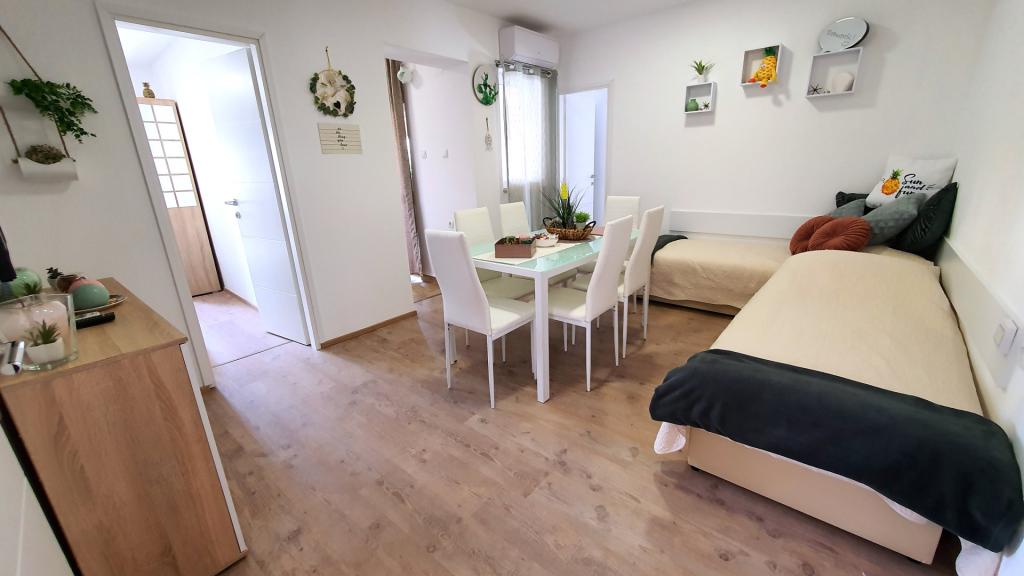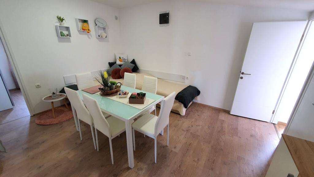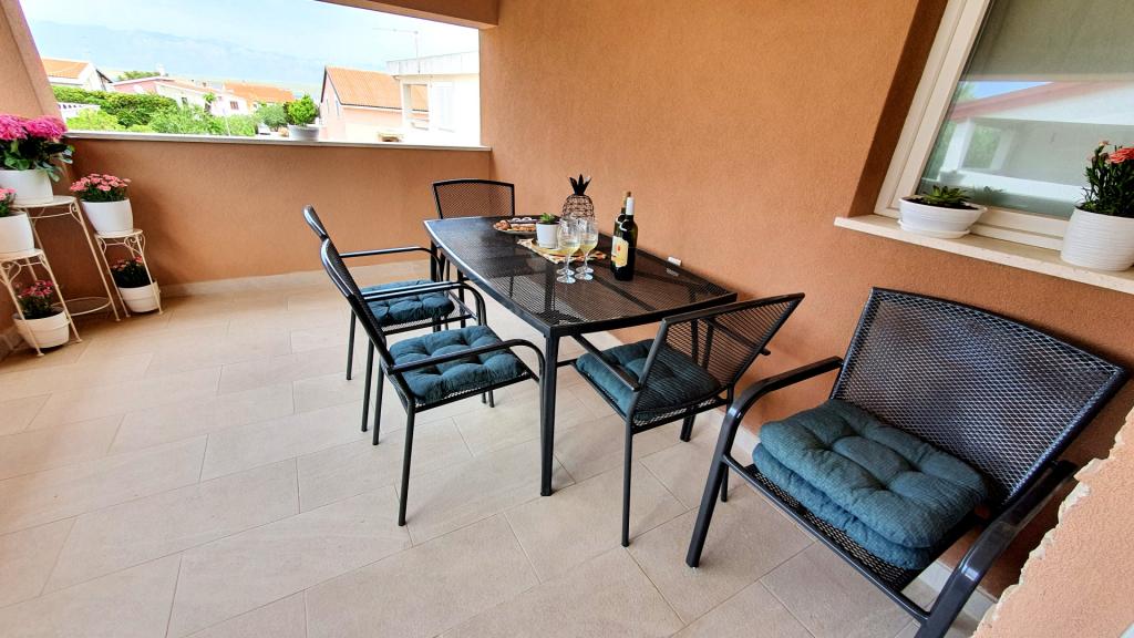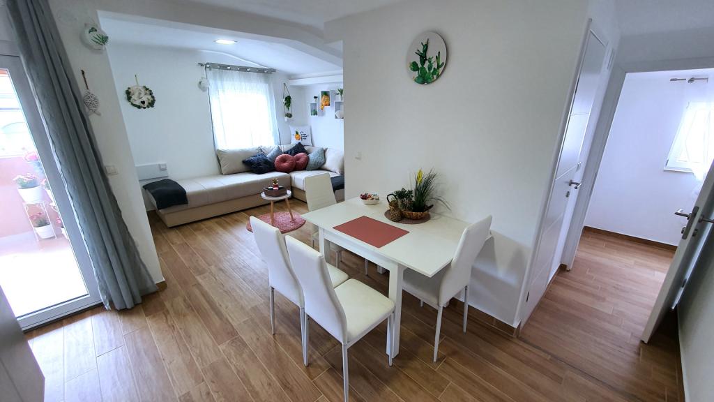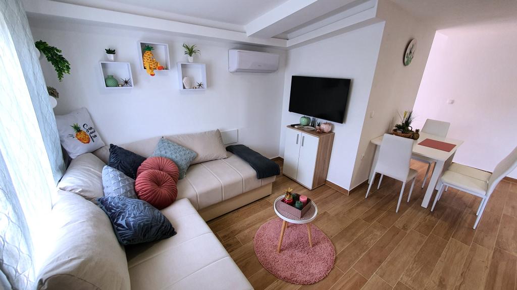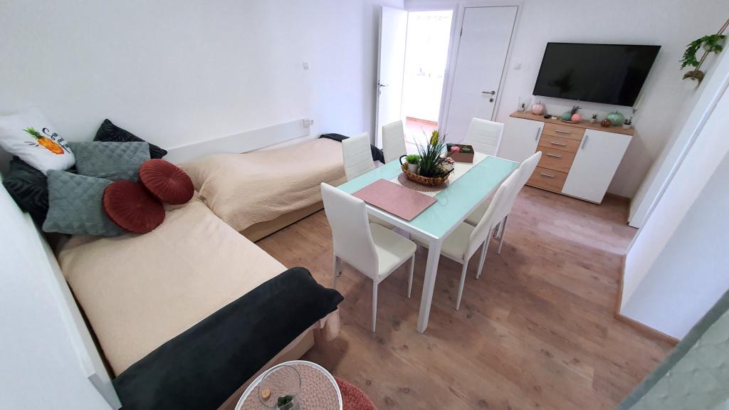 Nyindrettede, moderne lejligheder på øen Vir er udstyret med alt, hvad du behøver for en behagelig og afslappende ferie. Lejlighederne ligger på første sal i familiehuset og har hver sin egen store terrasse samt et fuldt udstyret køkken, badeværelse og soveværelse samt en tilhørende parkeringsplads, der er under 24-timers videoovervågning for din bils sikkerhed. Lejlighederne ligger i en rolig del af øen uden nattetøj og er velegnede til børn at lege, da mange strande har sandbund og er meget lavvandede i de fleste dele, hvilket gør dem til et ideelt valg for forældre med børn. I nærheden er der forskellige strande, promenader samt alle andre faciliteter såsom butikker, bagerier, caféer, restauranter, apoteker, klinikker, kirker, posthuse og busstationer. Alle faciliteter er inden for gåafstand, og det er ikke nødvendigt at bruge en bil under dit ophold. Alle lejligheder har wi-fi, aircondition og en vaskemaskine, som er inkluderet i prisen. For alle andre oplysninger og spørgsmål, er du velkommen til at kontakte os.
