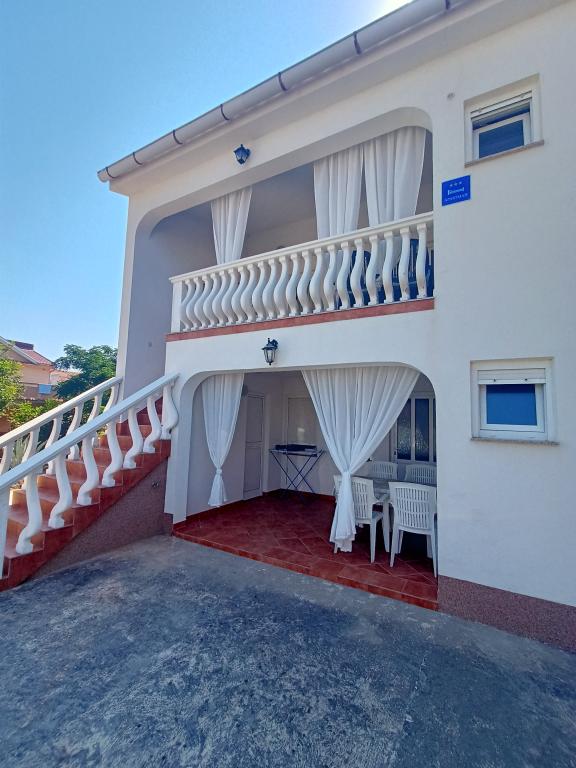 Nyudstyrede lejligheder med en stor indhegnet gård på øen Vir, der er forbundet med fastlandet via en bro. Vi tilbyder tre lejligheder. Hver af lejlighederne har sin egen terrasse. Grill at bruge. De er udstyret med kvalitetskøkkener, LCD-tv med satellit, aircondition, wi-fi, køleskab med fryser. Liggestole og parasoller er beregnet til brug i lejligheden. Stranden er rullesten (krystalklar), 80 m fra boligen. Tæt på butikker 150m. Byens centrum ligger 3-5 minutter væk i bil. Indkvartering og omgivelser ideelle til en familie, stor parkering i haven. Udsigt over havet, Pag og Velebit. I nærheden af Vir adrenalinpark, sjovt for hele familien. 20 km til byen Zadar, der er rig på forskelligt indhold. Turistskat inkluderet i prisen.