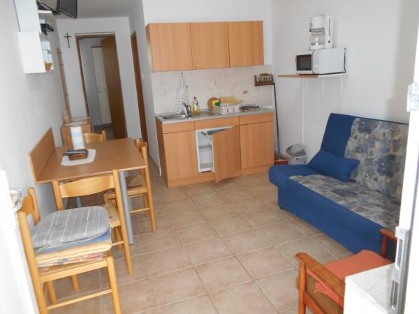 Lejligheden er udstyret med: stue, soveværelse, badeværelse-bruser, køkken-kit, aircondition, TV, parkering, havebruser, grill i stenhuset, overdækket veranda ca 12 m2. (((+ 50 meter til strand-havet, rolig del af landsbyen - egnet til børn + )))