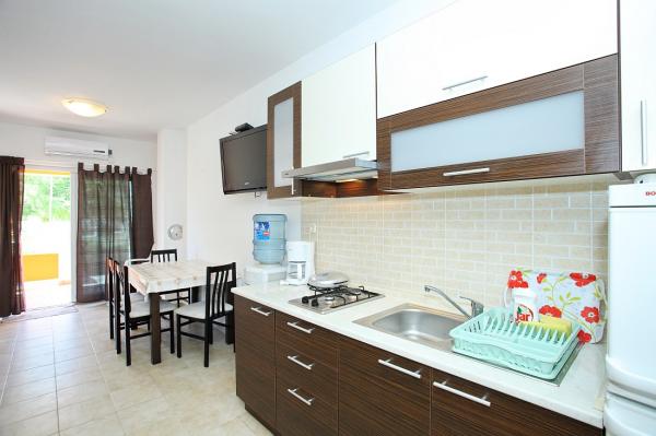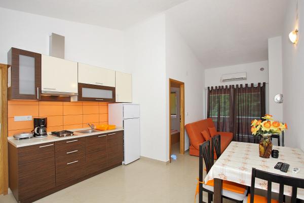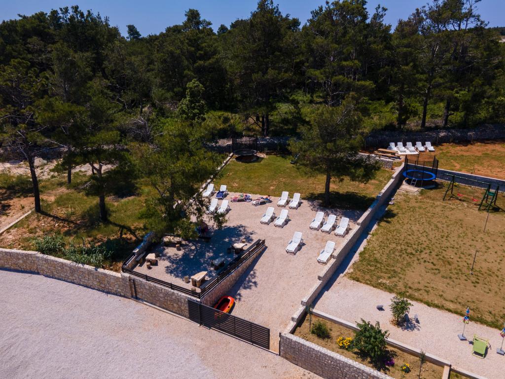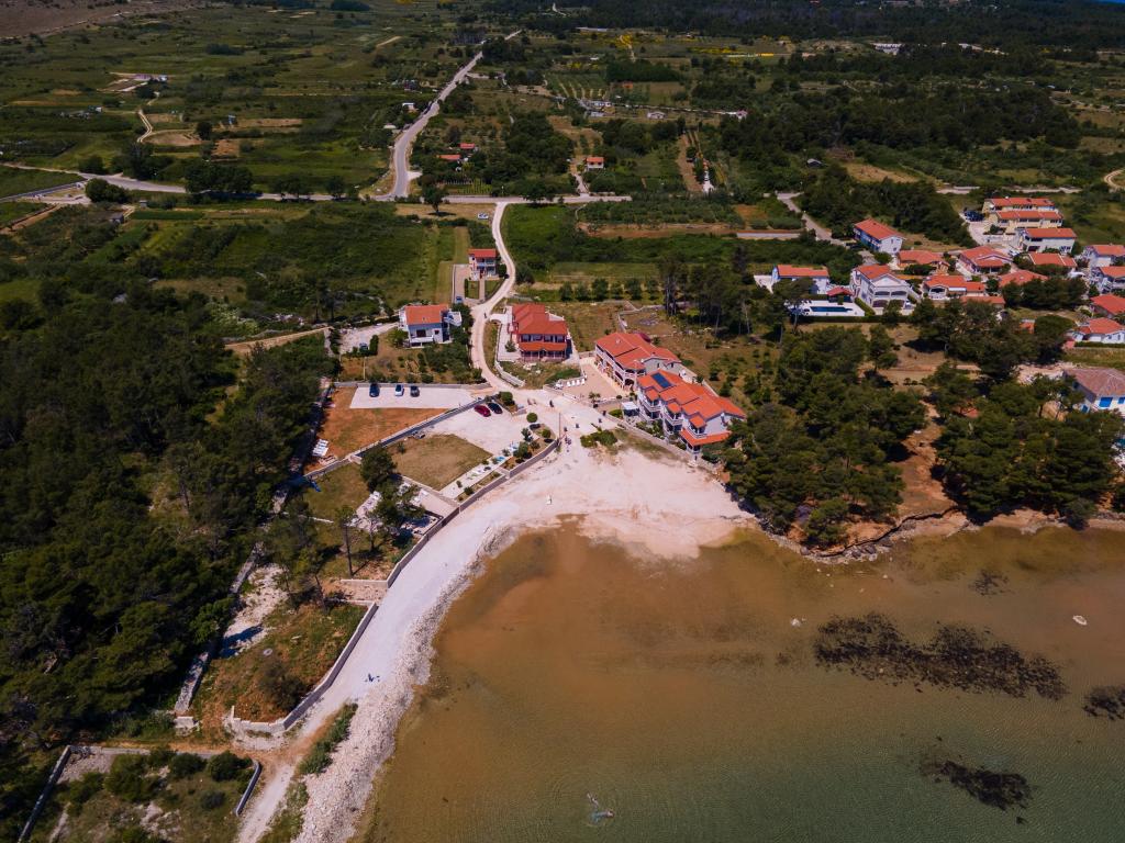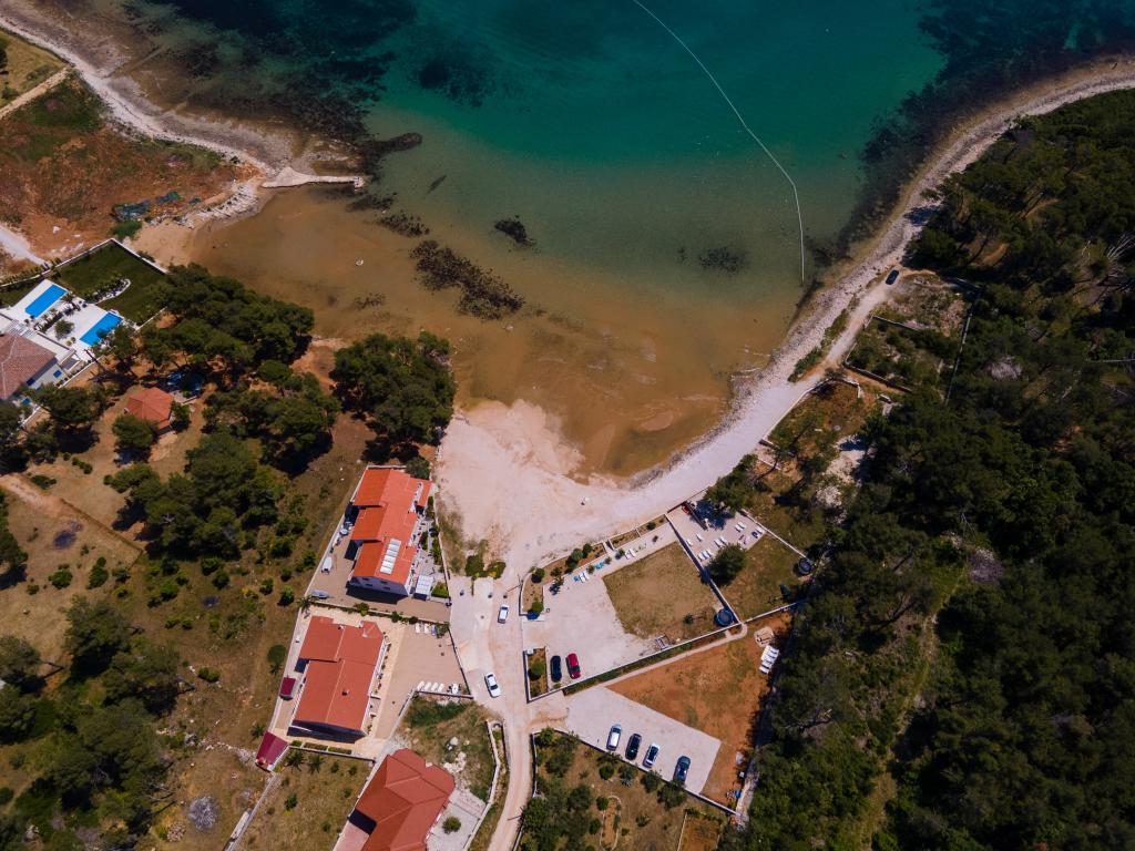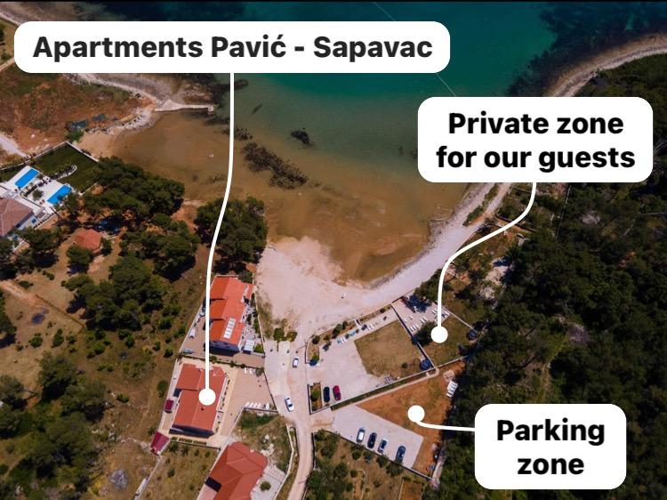 Lejlighederne er beliggende i den rolige bugt Sapavac, ved siden af selve stranden, omgivet af en fyrreskov. Ideel til en familieferie uden støj. Lejlighederne er nye, moderne indrettede, med alle de nødvendige apparater og har aircondition. Hver lejlighed har sin egen terrasse med havudsigt. I gården er der grill med grill og plads til socialt samvær, som er til rådighed for gæster uden merpris. Stranden er småsten, og havet har meget blidt sand, ideelt til små børn.