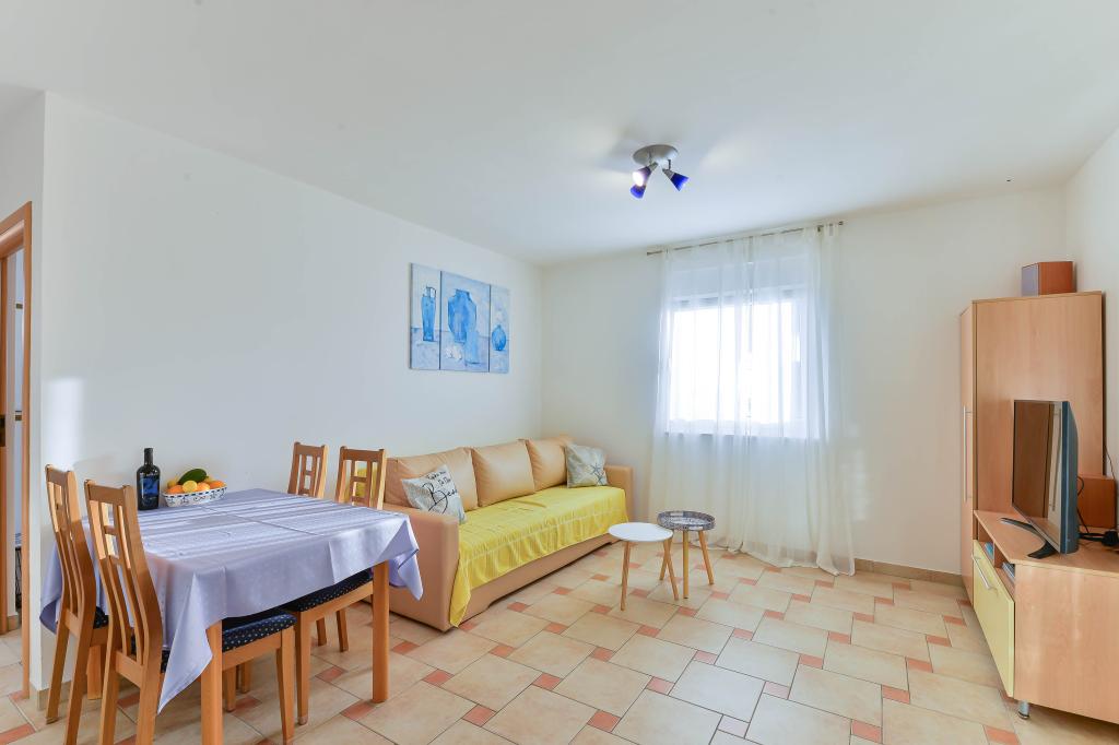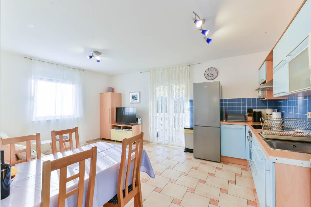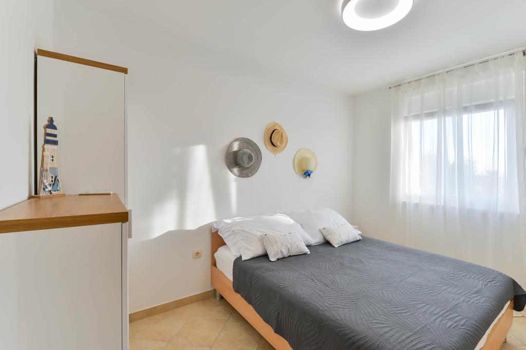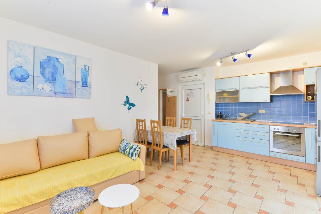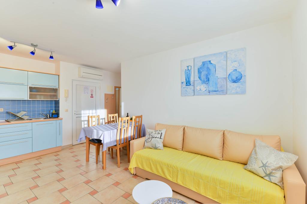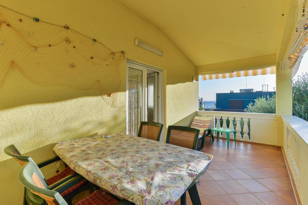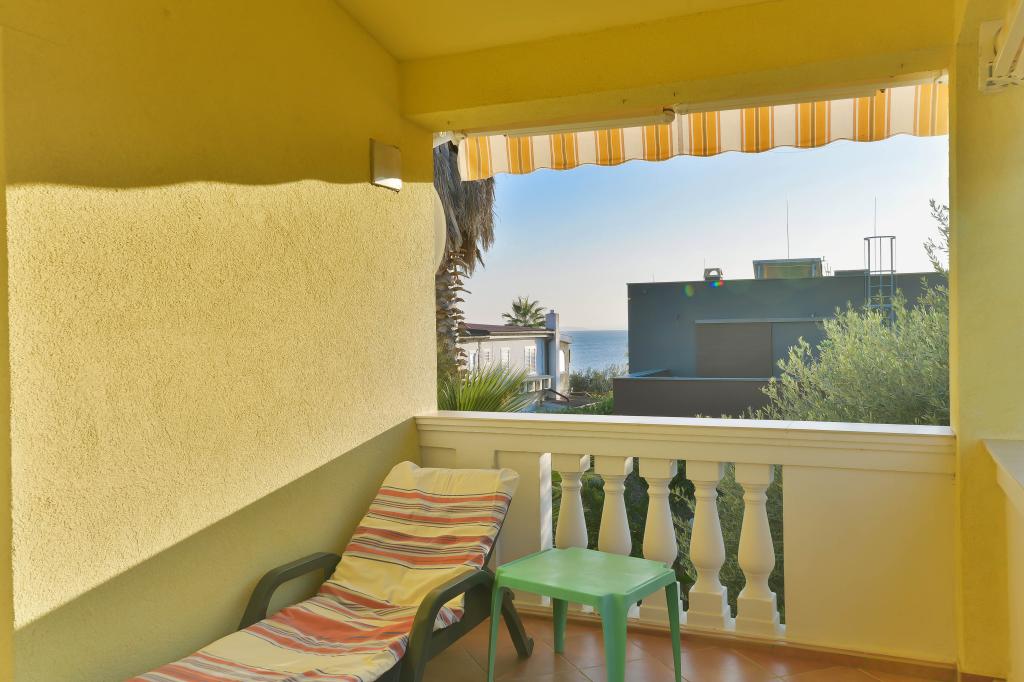 Fuldt udstyrede lejligheder, hvert værelse har sit eget klimaanlæg og tv, beliggende 40 meter fra havet. En bar, restauranter og et supermarked ligger inden for gåafstand. Stranden er af grus og beton, en sandstrand er ti minutters gang væk. Huset har egen parkering, grill og børnegynge i haven. Strandstole, parasoller og cykler er tilgængelige for gæsterne.