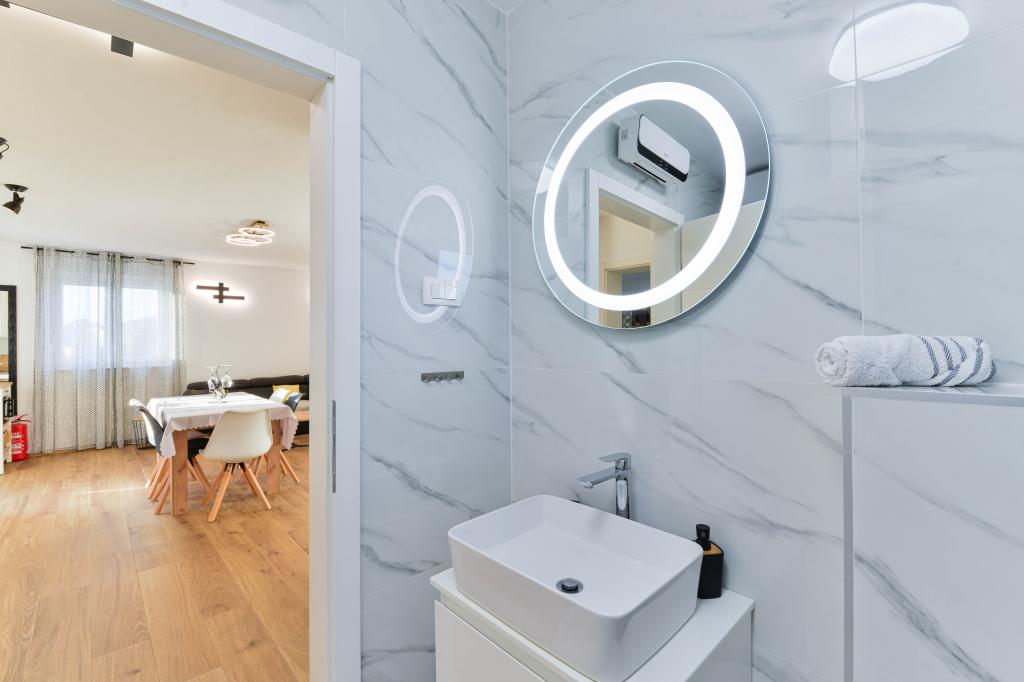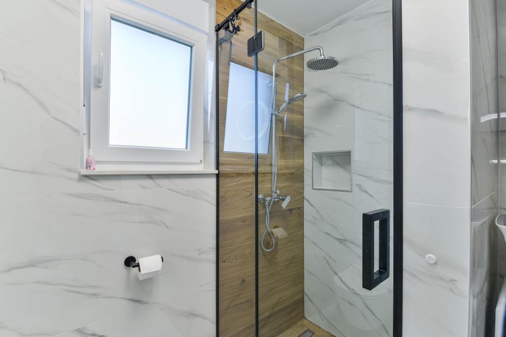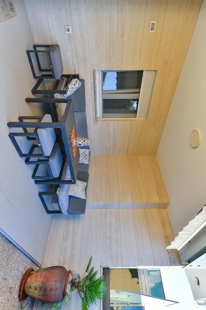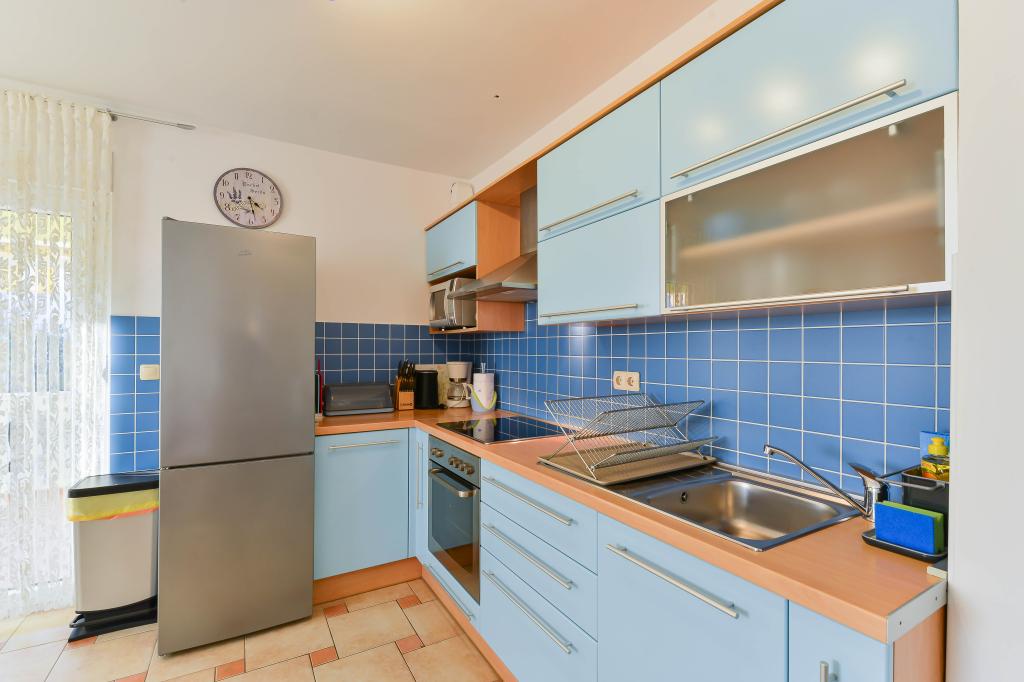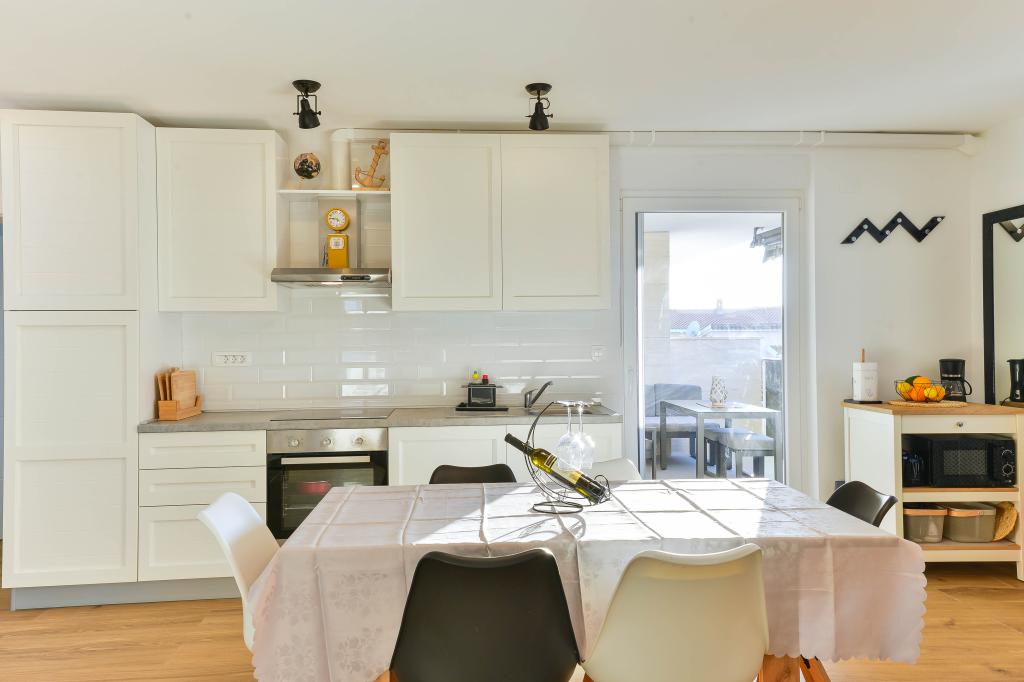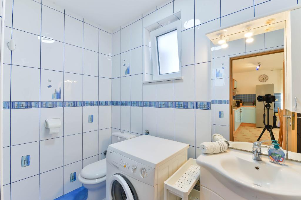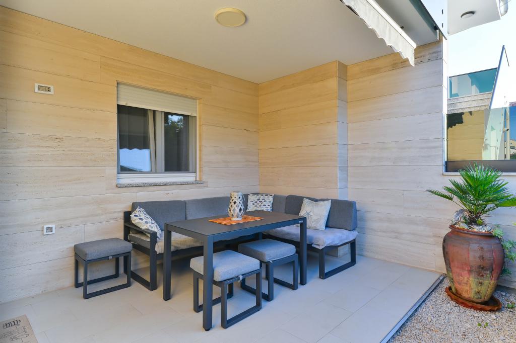 Fuldt udstyrede lejligheder, hvert værelse har sit eget klimaanlæg og tv, beliggende 40 meter fra havet. En bar, restauranter og et supermarked ligger inden for gåafstand. Stranden er af grus og beton, en sandstrand er ti minutters gang væk. Huset har egen parkering, grill og børnegynge i haven. Strandstole, parasoller og cykler er tilgængelige for gæsterne.