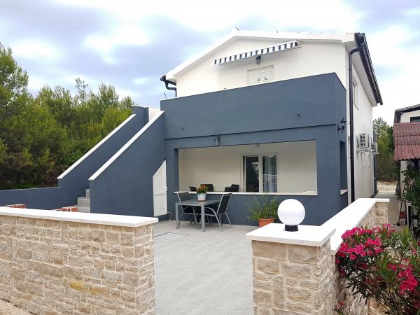 Huset er beliggende i en fyrreskov 35 m fra havet, for enden af Vir, Mirna gaden, ideel til ferie, fordi vi er langt fra støjen fra byens strande, huset har en etage, hvor der er to soveværelser med en stor stue, toilet, bruser og vaskerum køkken er udstyret med alle de nødvendige ting, en mikroovn, kaffemaskine, elkedel og tallerkener til madlavning, to terrasser, i husets stueetage to lejligheder, hver udstyret med et køkken , toilet og bad, et soveværelse og en stue, lejligheden har egen terrasse, og yderligere terrasse med grill, huset kan rumme fra 10 til 13 personer, . Vi vil med glæde være vært for dig. Barneseng til rådighed.