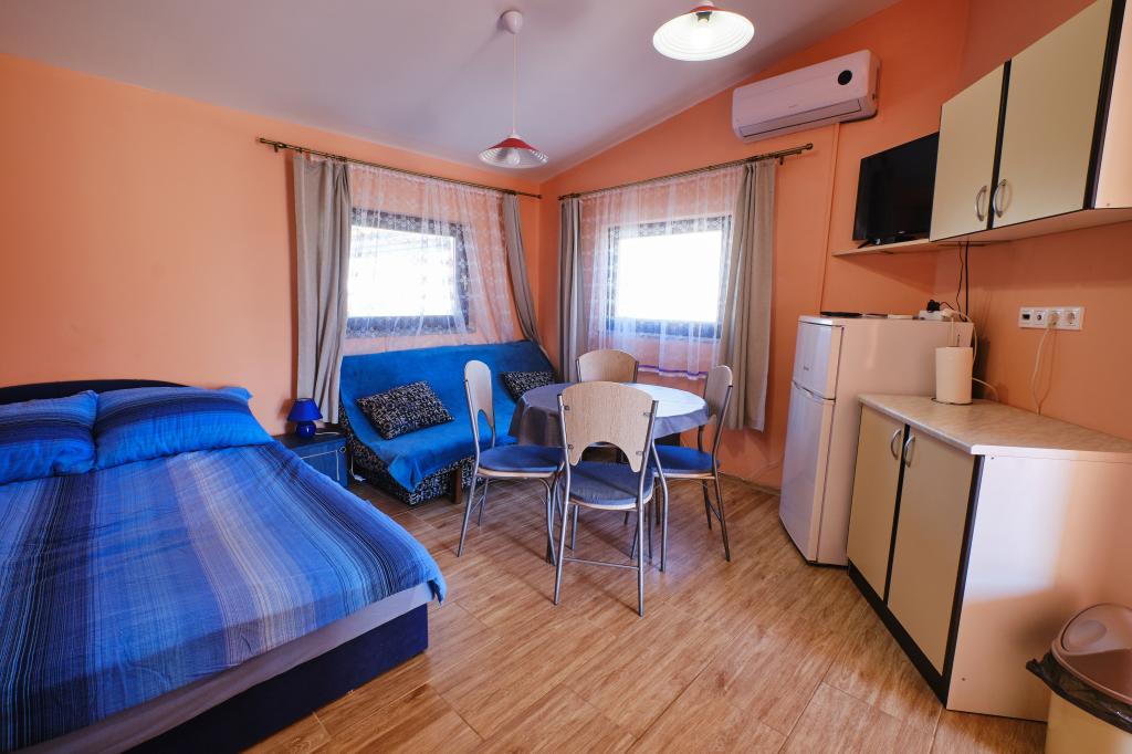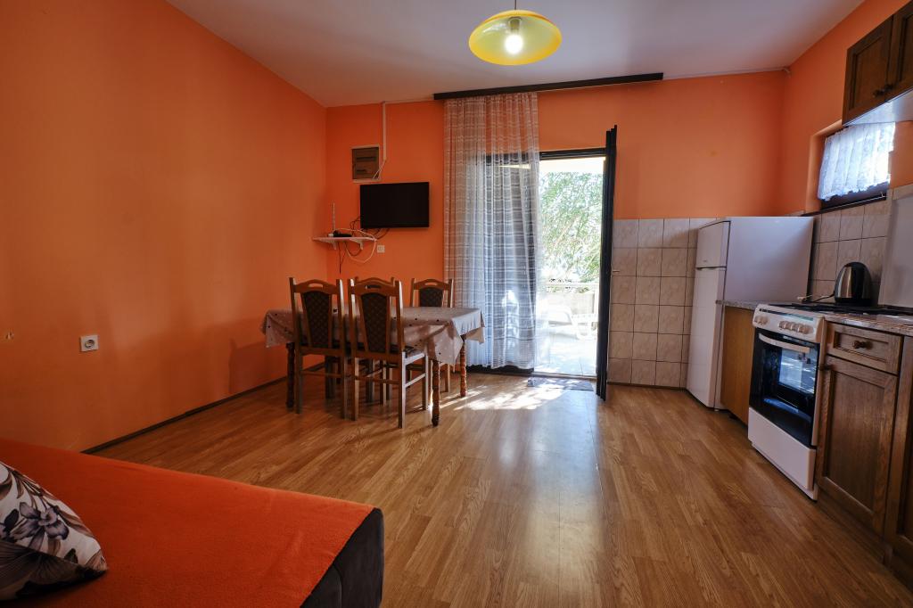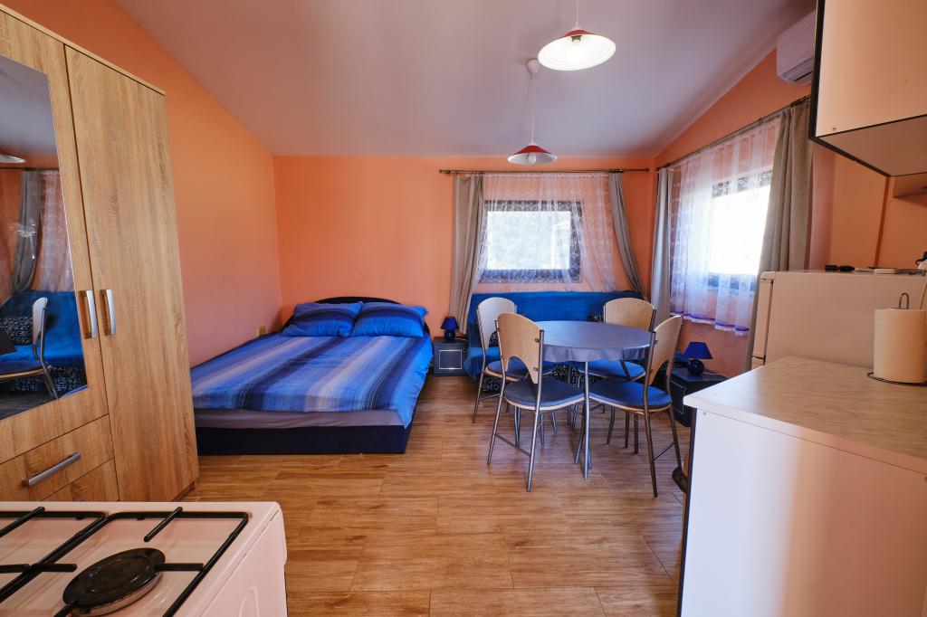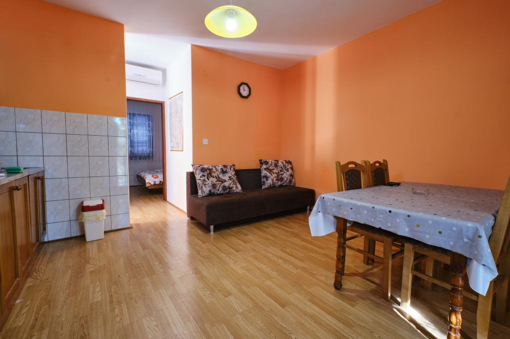 Tre lejligheder i et feriehus på øen Vir, 200 m fra stranden, 50 m fra butikken. Lejlighederne har WiFi internet og aircondition, har separate indgange og er helt adskilte. To større lejligheder består hver af et soveværelse med dobbeltseng, et badeværelse og en stue med en sovesofa (ekstra seng til to) og et køkken. Lejligheden på 1. sal har stor altan, og lejligheden i stueetagen har terrasse. Der er parkeringspladser foran bygningen. Den tredje mindre lejlighed er et studie med et stort værelse med en dobbeltseng og en ekstra seng til 1 person (eller 2 mindre børn) og husholdningsapparater, separat badeværelse og entre. Lejligheden har en lille altan-terrasse.