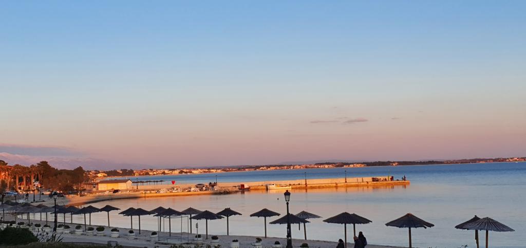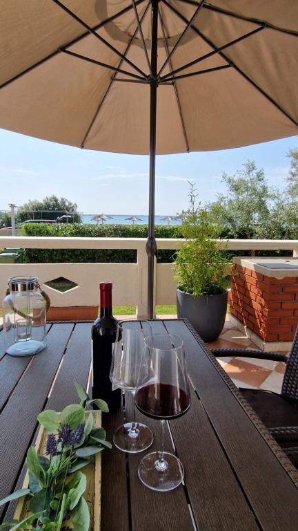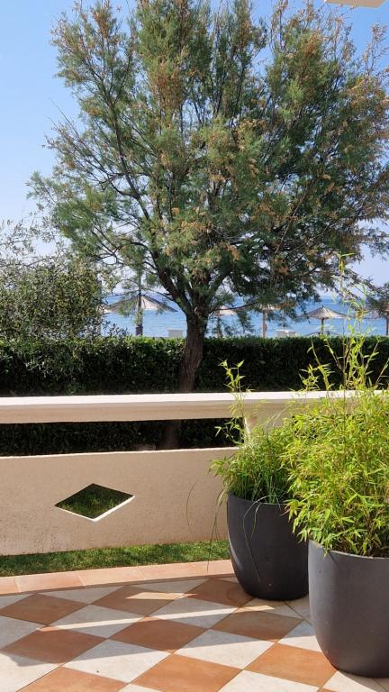 Smuk beliggenhed med en lejlighed med aircondition og en kæmpe terrasse med udsigt over havet. Lejligheden har alt. Fuldt udstyret køkken med alt, hvad vi havde brug for. Soveværelset har den mest komfortable seng, badeværelset er rummeligt og pænt indrettet. Vi var meget tilfredse med renligheden, fordi alt er virkelig rent. Jeg så frem til morgenkaffe på terrassen med udsigt over havet og den smukke grønne have, og børnene ville altid kun spise på terrassen, fordi det var rart for dem. Værterne er yderst venlige og hjælpsomme. Vi tilbragte vores ferie meget godt, fordi vi virkelig hvilede i sådan en fremragende beliggenhed. Ros!