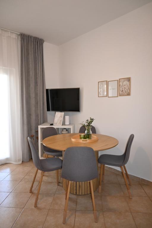 Vi var i lejligheden for første gang i år, men flere af vores familiemedlemmer var tilbagevendende gæster, så vi tog ikke til stedet som fremmede. Værten/værterne er meget venlige, direkte og hjælpsomme. Går du ud af lejlighedens gårdhave, kan du finde dig selv lige ved den centrale strand, lejligheden har en rigtig god beliggenhed. Vandlegeplads, vandsport omkring 10 minutters gang fra stranden. Butikker og et bageri ligger inden for gåafstand, og centrum ligger 5 minutters gang derfra. Gården er meget hyggelig, i skyggen af mange planter, og der er også et grillhjørne. Vi valgte studielejligheden, den var perfekt til os med 1 baby, vi kunne passe komfortabelt. Lejligheden er smuk, ren og veludstyret. Vi er taknemmelige for den 1 uge, vi har brugt her. Mange tak.