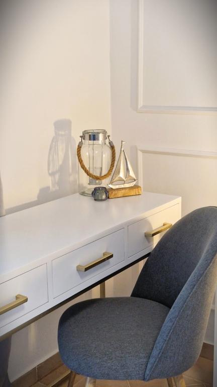 Vores lejligheder ligger i første række til havet og er fuldt udstyrede (fladskærms-tv, Netflix, filterkaffemaskine, Nespresso-kaffemaskine, brødrister,...). Hver lejlighed har en separat indgang og en 16 m2 terrasse med havudsigt. Den er ideel for familier med små børn på grund af den nære beliggenhed til havet. Stranden er lavvandet med sand. Alle vores gæster har 1 gratis parkeringsplads i vores gård. Alle gæster har en vaskemaskine til rådighed i det fælles vaskerum.