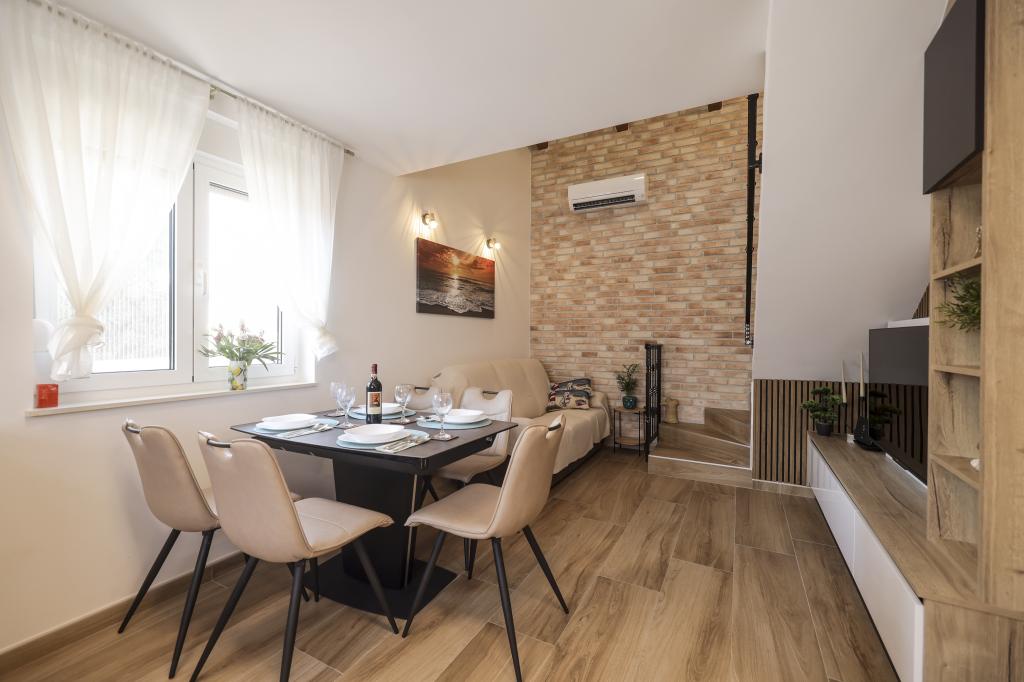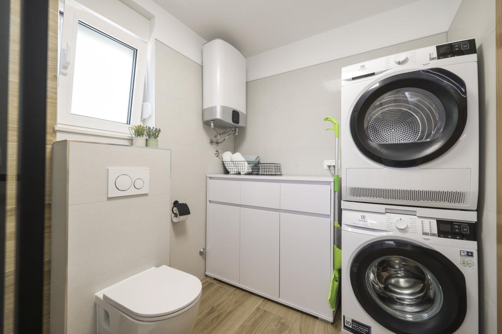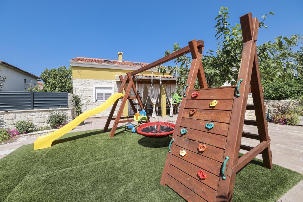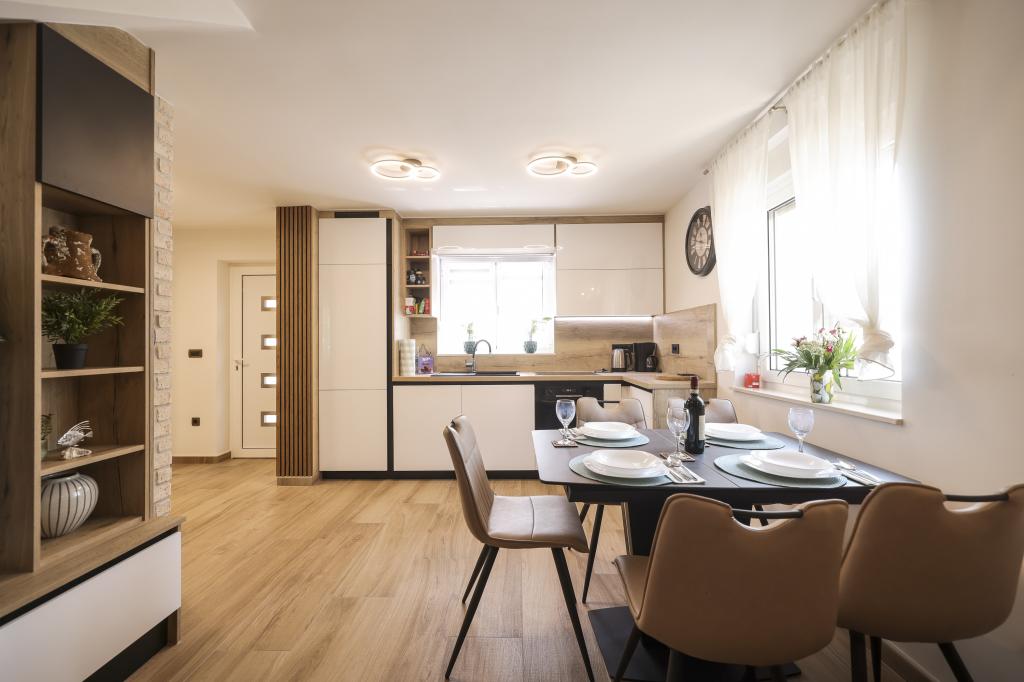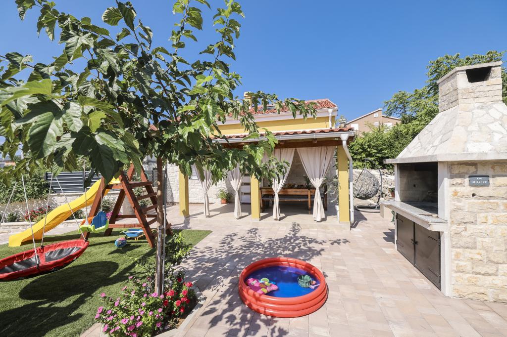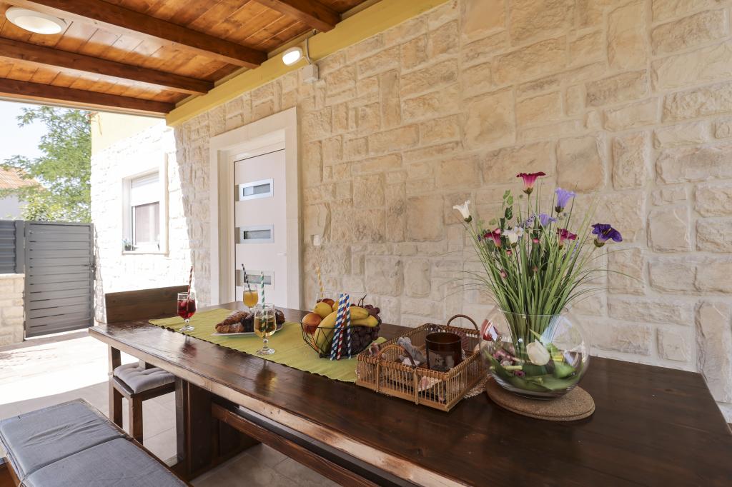 Dette nye feriehus ligger i centrum af øen Vir. Skjult for støj og udsigt. Huset har 2 soveværelser med dobbeltseng og en dobbeltseng på galleriet. Den samlede kapacitet er 6 personer. Der er også to badeværelser, det ene på loftet og det andet i stueetagen, udstyret med vaskemaskine og tørretumbler. Køkkenet er også udstyret med alle hårde hvidevarer. I gården er der overdækket terrasse, grill og legeplads. Parkering er tilgængelig for gæster samt en plads i garagen. Alle naboer er i god afstand, og du har privatliv for dig selv. Hvis du ønsker at være i centrum, tæt på alle faciliteter, og alligevel skjult for indsyn, er dette hus det rigtige valg for dig. Vi glæder os til din ankomst.
