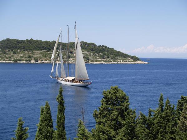Et must besøg. Vojko og Beba er først og fremmest fantastiske værter, og først derefter turistarbejdere. Upåfaldende og altid til din tjeneste. De tilberedte en stor fisk til os som en velkomstfrokost, som blev suppleret med lokal vin. Noget som bestemt ikke ses ret tit. Husets beliggenhed er perfekt med udsigt over Vis-bugten fra lejligheden. Obligatorisk, men skal besøges.