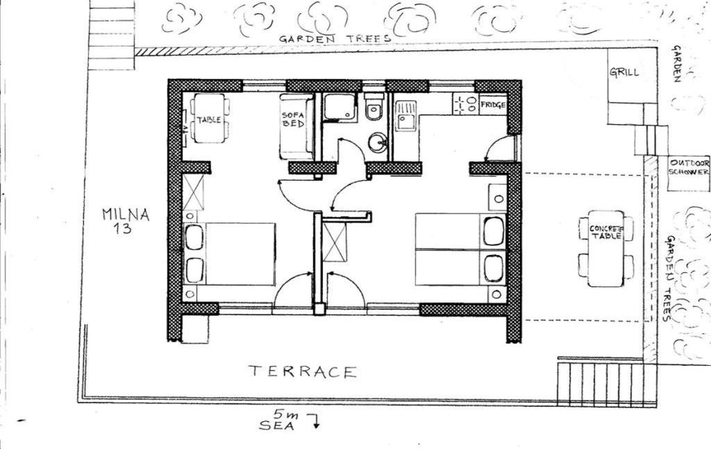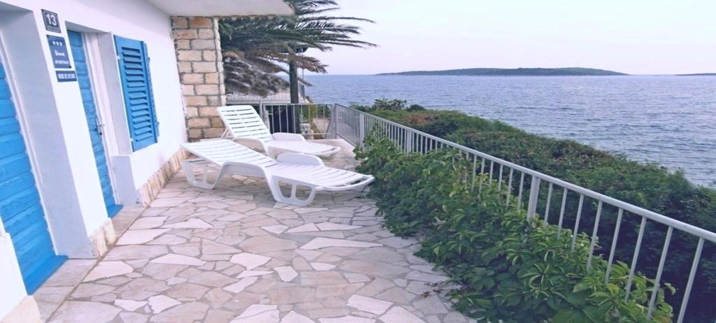 Hele huset udlejes, 5 m fra havet: exceptionel beliggenhed - første række til havet, Milna-bugten (øen Vis), ideel til en familie. Huset er fritliggende med et indvendigt areal på 50 m2, omgivet af en 60 m2 terrasse og en have (150 m2) med grønne områder, der giver dig privatliv og en behagelig ferie. Lige ved siden af huset, 5 meter fra terrassen, kan du svømme, dykke eller hoppe i havet. Når du kommer tilbage fra havet, er der en udendørs bruser. På terrassen er der to liggestole, en grill og et betonbord til at sidde og spise med udsigt over det blå hav, som du kan nyde hele dagen lang. En del af terrassen over bordet og grillen er overdækket, hvilket giver skygge/beskyttelse hele dagen lang. Huset har aircondition, har ubegrænset Wi-Fi, LCD-tv, komfur med gas og elkedel, stort køleskab (250 liter) med fryser og alt andet, der er nødvendigt til madlavning/bagning og servering. Privat parkering er 250 m fra huset: langs kysten, til huset, er der en betonsti (2-3 m bred). Tilgængelig: indtil 10.06.; 24.06. - 5.07.; og fra 20.08.