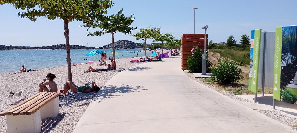 Vodice er en moderne turistby nær Sibenik og Krka. Det er kendt mere for sin attraktive cykelstier bugtende Middelhavet miljø nær de mystiske arkæologiske udgravninger. På kysten er kilometer af strande med forskellige sport og underholdning. Stranden er sandet og strækker sig langs promenaden fra centrum til Tribunja nord. Vores lejlighed er beliggende i udkanten af den nordlige del af byen kaldes Blato. Ekstremt rolig del af byen med en strand tæt på 150 m. Vores lejlighed er fuldt udstyret køkken, aircondition, satellit-tv og wi-fi. Det har en stor terrasse med udendørs siddepladser. Terrassen byder på en malerisk udsigt over havet og de omkringliggende øer. Der er to soveværelser med dobbeltsenge, køkken, spisestue og badeværelse. Foran vores bygning er en parkeringsplads. Vi vil være glade for at være vært for dig i vores lejlighed!