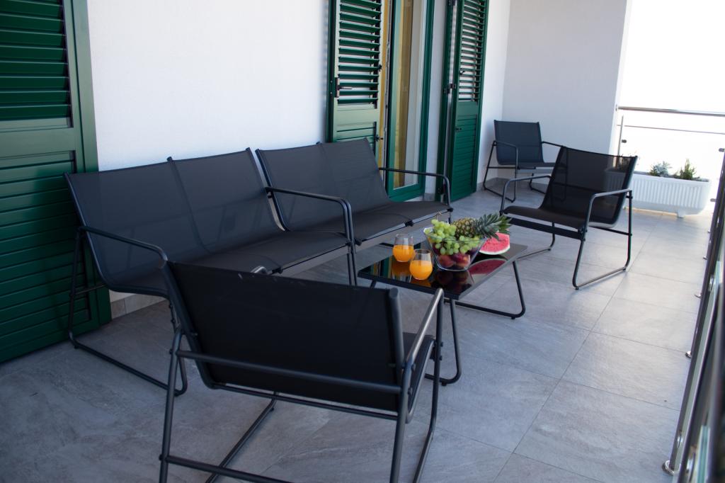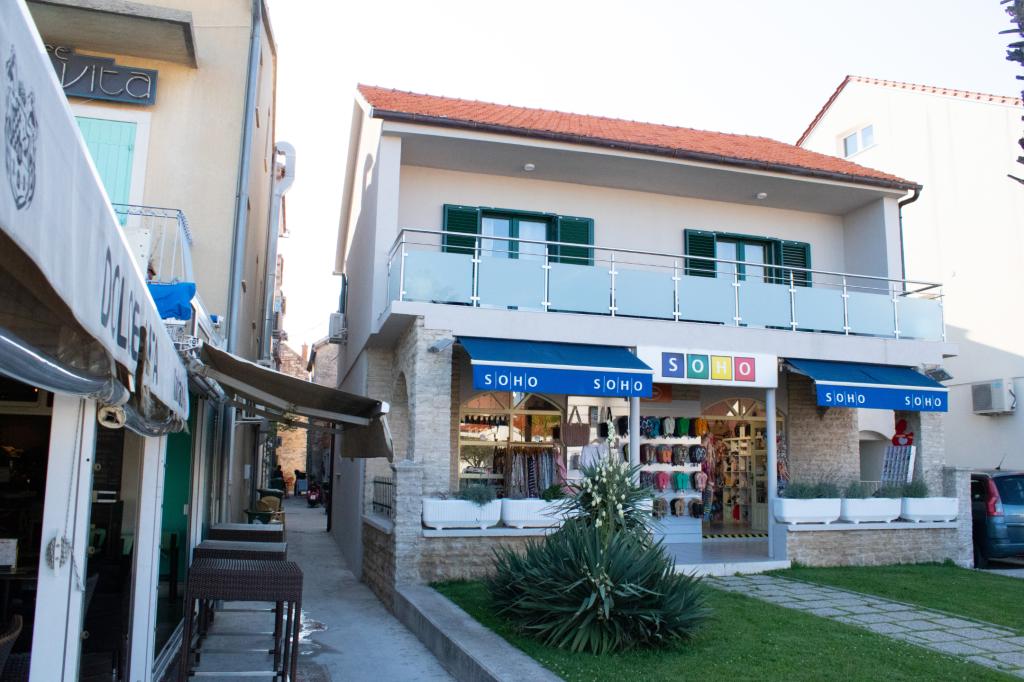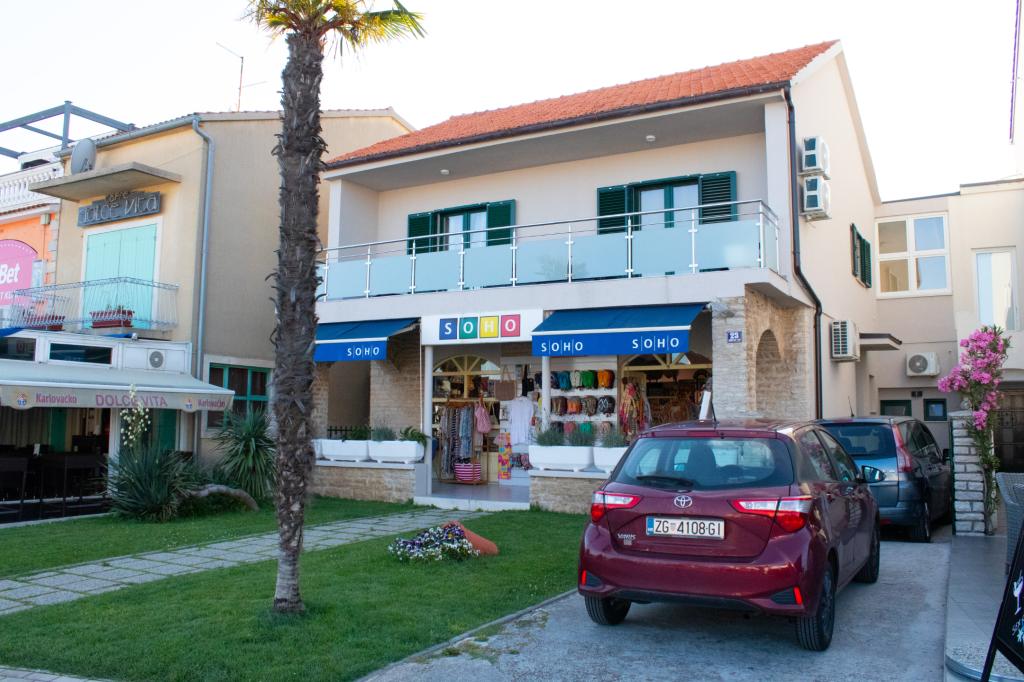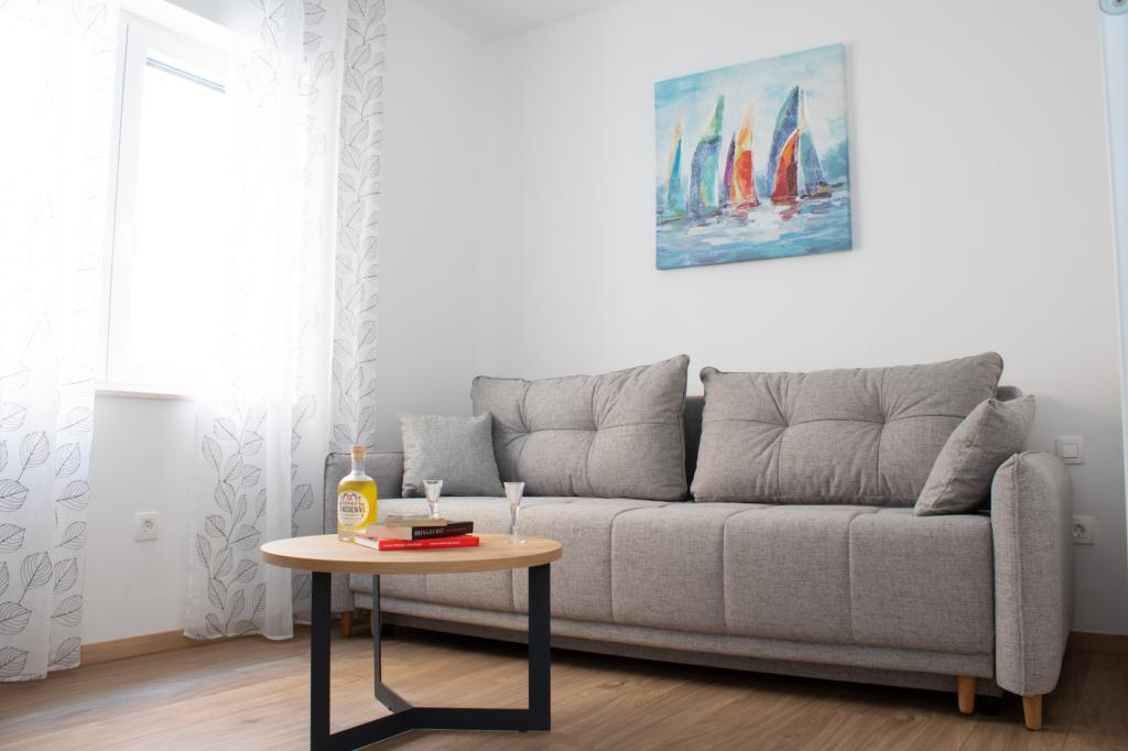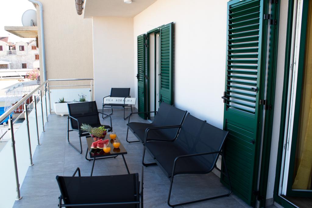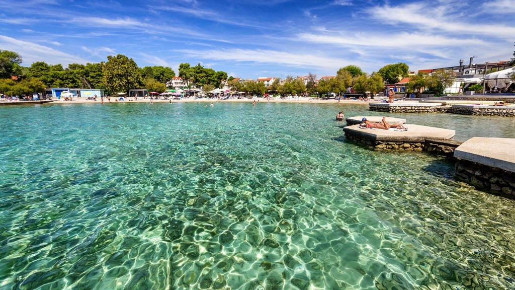 En rummelig 3-værelses lejlighed med terrasse, stor balkon og privat parkeringsplads fylder hele 1. salen i et nyligt totalrenoveret hus på hovedgaden i centrum af Vodice. Det er perfekt beliggende i umiddelbar nærhed af ACI-marinaen, mellem to store bystrande. Inden for 100 m kan du finde byens marked, fiskemarked, butikker, posthus, bank, bageri, apotek, klinik, natklubber og mange caféer og restauranter. Lejligheden består af to soveværelser med en stor dobbeltseng, en skydegarderobe, et skrivebord og et stort smart-tv, en stue udstyret med en stor sovesofa, et klædeskab og et stort smart-tv, et fuldt udstyret køkken (køleskab med dyb fryser , komfur med ovn, mikroovn, opvaskemaskine, kaffemaskine, elkedel) med spisestue, badeværelse (vask, bruser, vaskemaskine) og separat toilet. Alle værelser har aircondition. Indvendig terrasse (25m2), stor altan ud mod havet og grill i gården