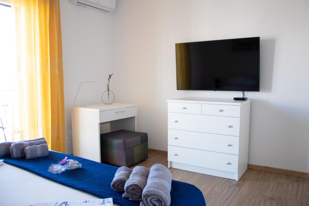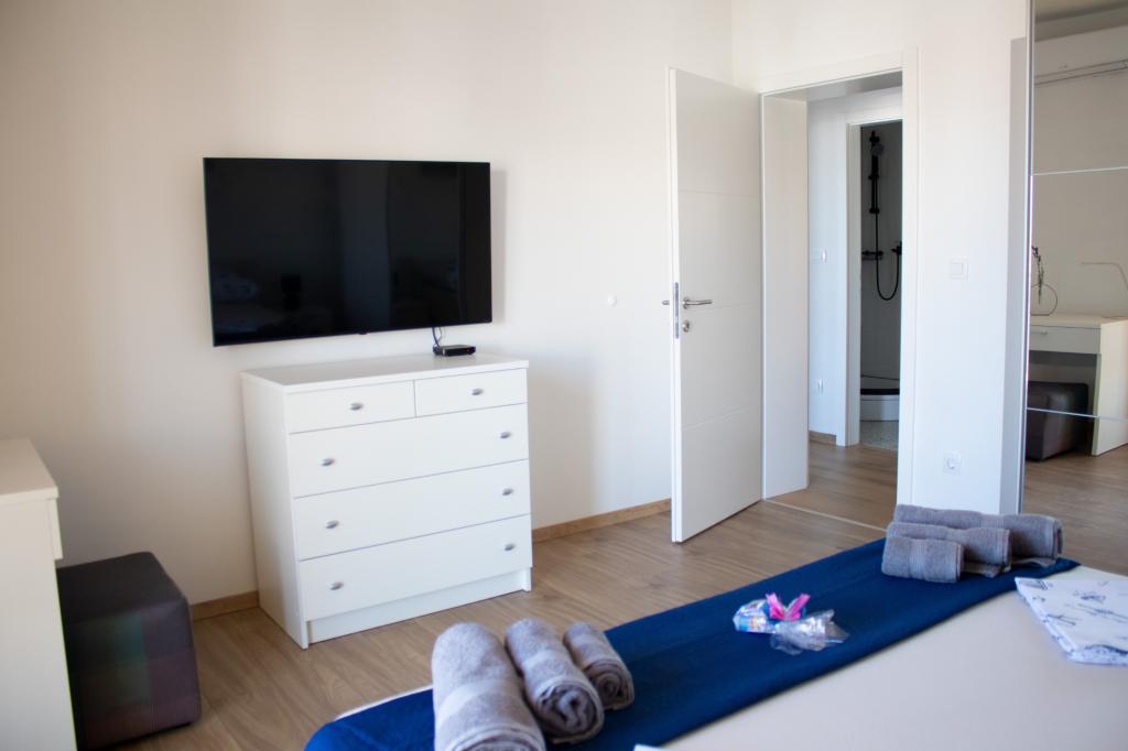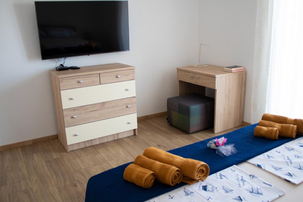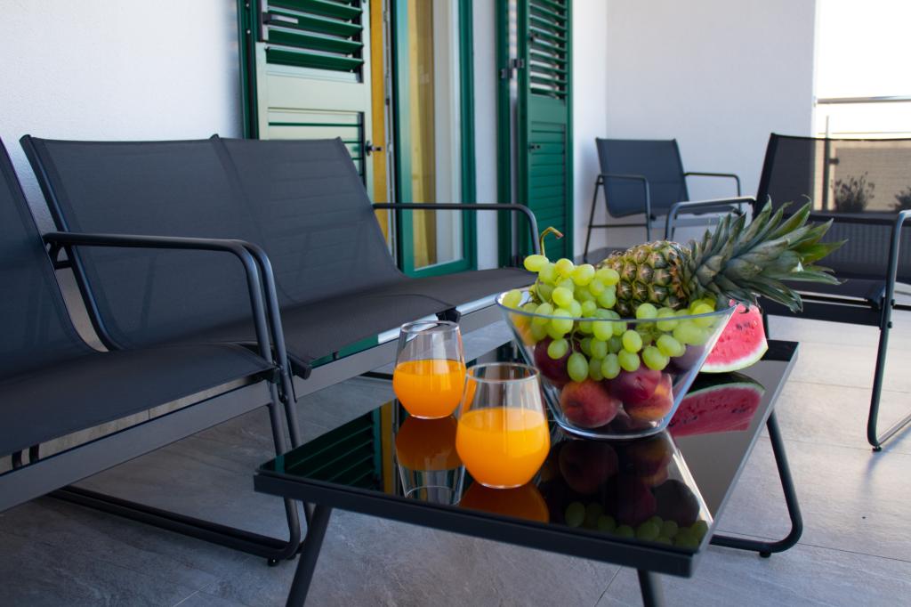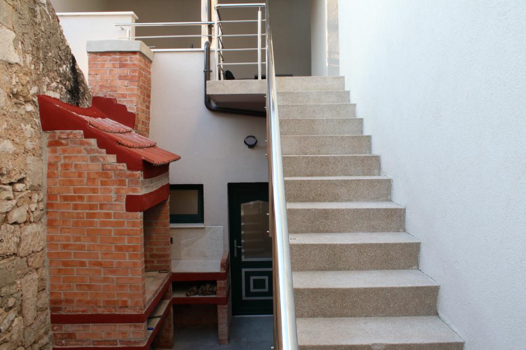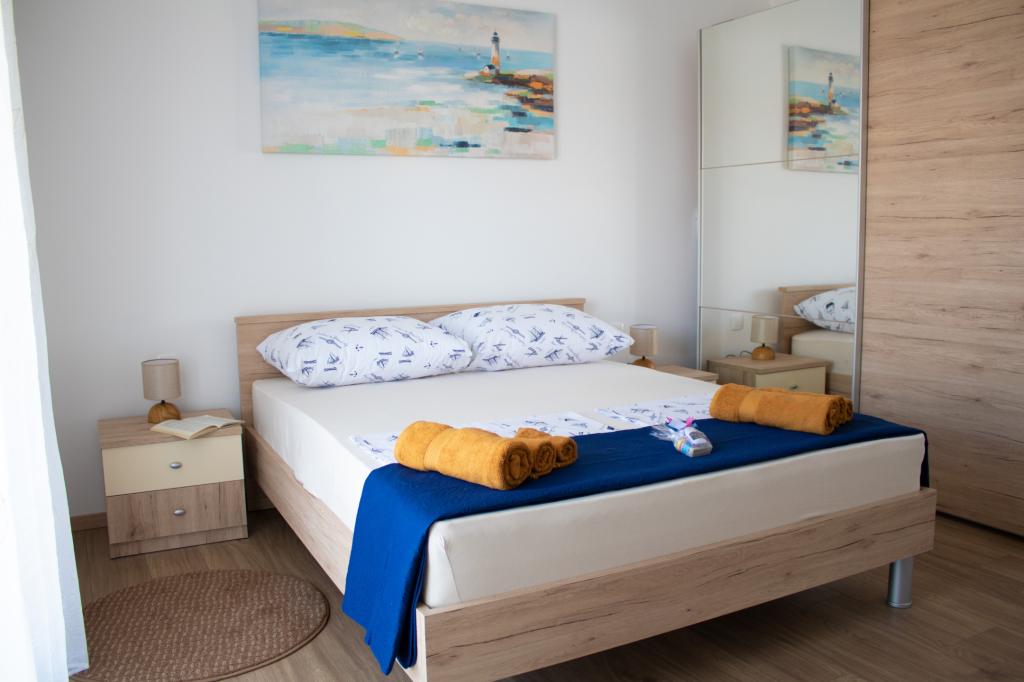 En rummelig 3-værelses lejlighed med terrasse, stor balkon og privat parkeringsplads fylder hele 1. salen i et nyligt totalrenoveret hus på hovedgaden i centrum af Vodice. Det er perfekt beliggende i umiddelbar nærhed af ACI-marinaen, mellem to store bystrande. Inden for 100 m kan du finde byens marked, fiskemarked, butikker, posthus, bank, bageri, apotek, klinik, natklubber og mange caféer og restauranter. Lejligheden består af to soveværelser med en stor dobbeltseng, en skydegarderobe, et skrivebord og et stort smart-tv, en stue udstyret med en stor sovesofa, et klædeskab og et stort smart-tv, et fuldt udstyret køkken (køleskab med dyb fryser , komfur med ovn, mikroovn, opvaskemaskine, kaffemaskine, elkedel) med spisestue, badeværelse (vask, bruser, vaskemaskine) og separat toilet. Alle værelser har aircondition. Indvendig terrasse (25m2), stor altan ud mod havet og grill i gården