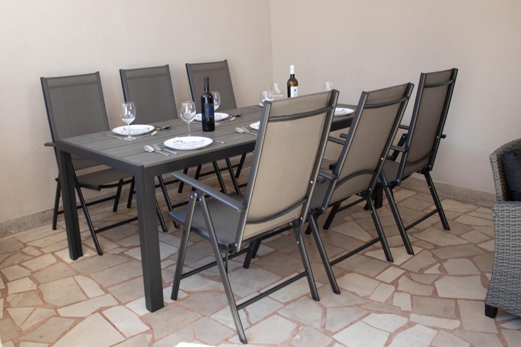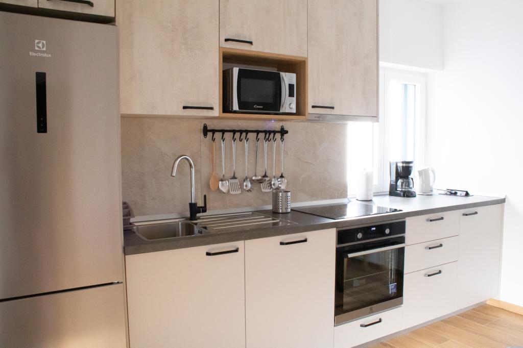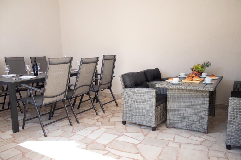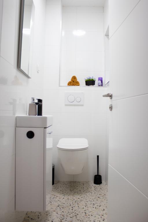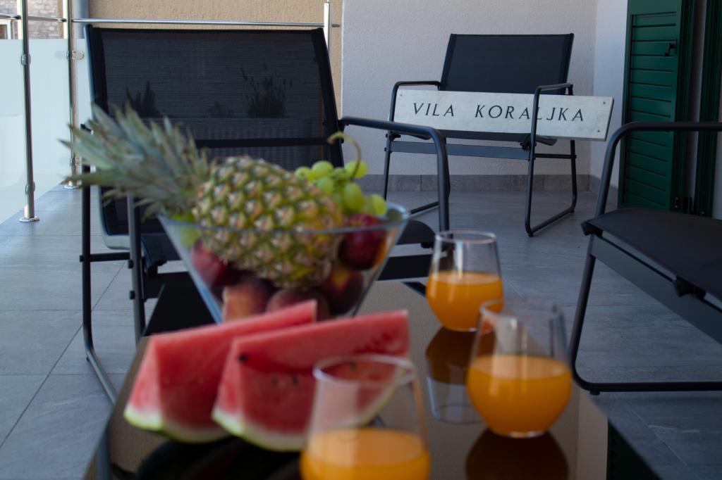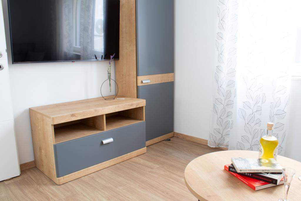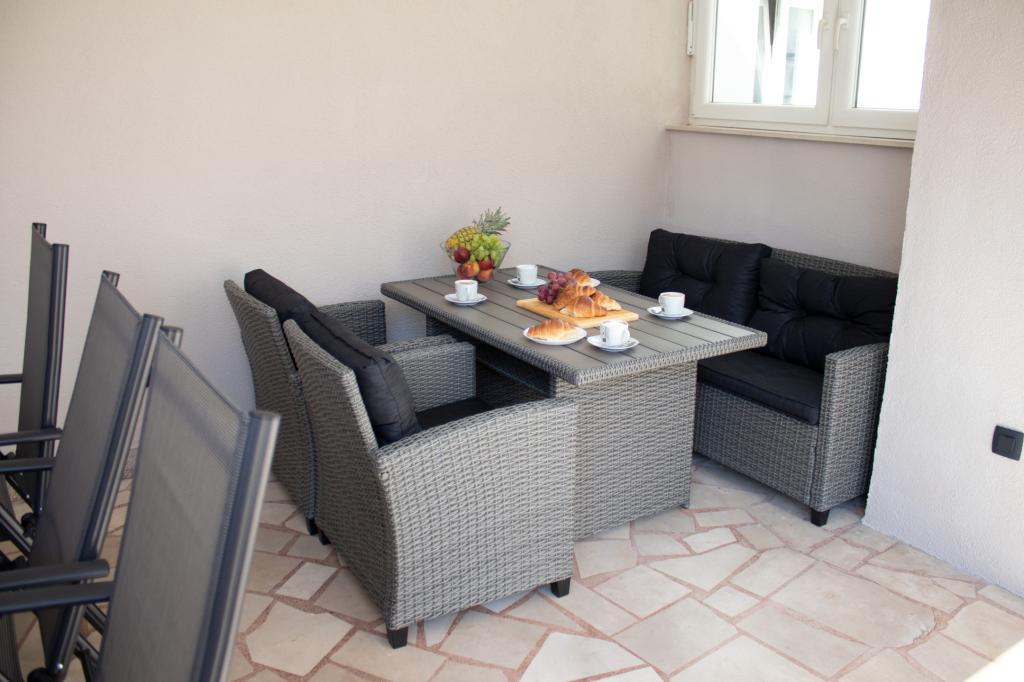 En rummelig 3-værelses lejlighed med terrasse, stor balkon og privat parkeringsplads fylder hele 1. salen i et nyligt totalrenoveret hus på hovedgaden i centrum af Vodice. Det er perfekt beliggende i umiddelbar nærhed af ACI-marinaen, mellem to store bystrande. Inden for 100 m kan du finde byens marked, fiskemarked, butikker, posthus, bank, bageri, apotek, klinik, natklubber og mange caféer og restauranter. Lejligheden består af to soveværelser med en stor dobbeltseng, en skydegarderobe, et skrivebord og et stort smart-tv, en stue udstyret med en stor sovesofa, et klædeskab og et stort smart-tv, et fuldt udstyret køkken (køleskab med dyb fryser , komfur med ovn, mikroovn, opvaskemaskine, kaffemaskine, elkedel) med spisestue, badeværelse (vask, bruser, vaskemaskine) og separat toilet. Alle værelser har aircondition. Indvendig terrasse (25m2), stor altan ud mod havet og grill i gården