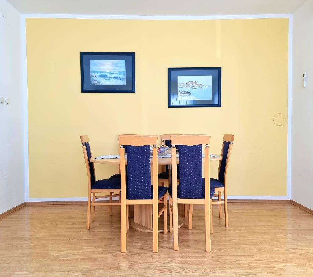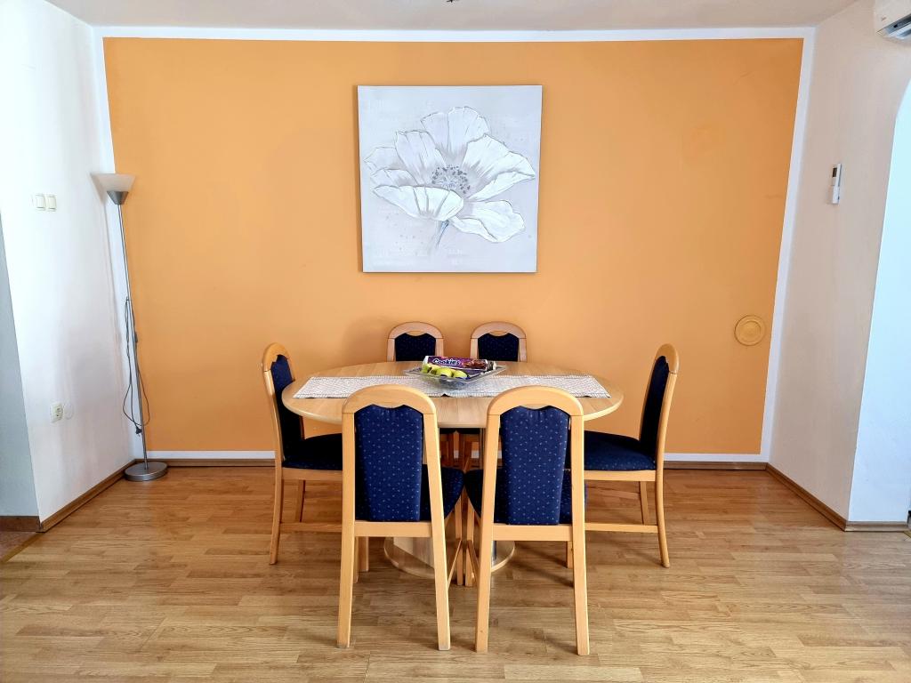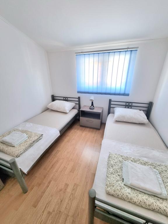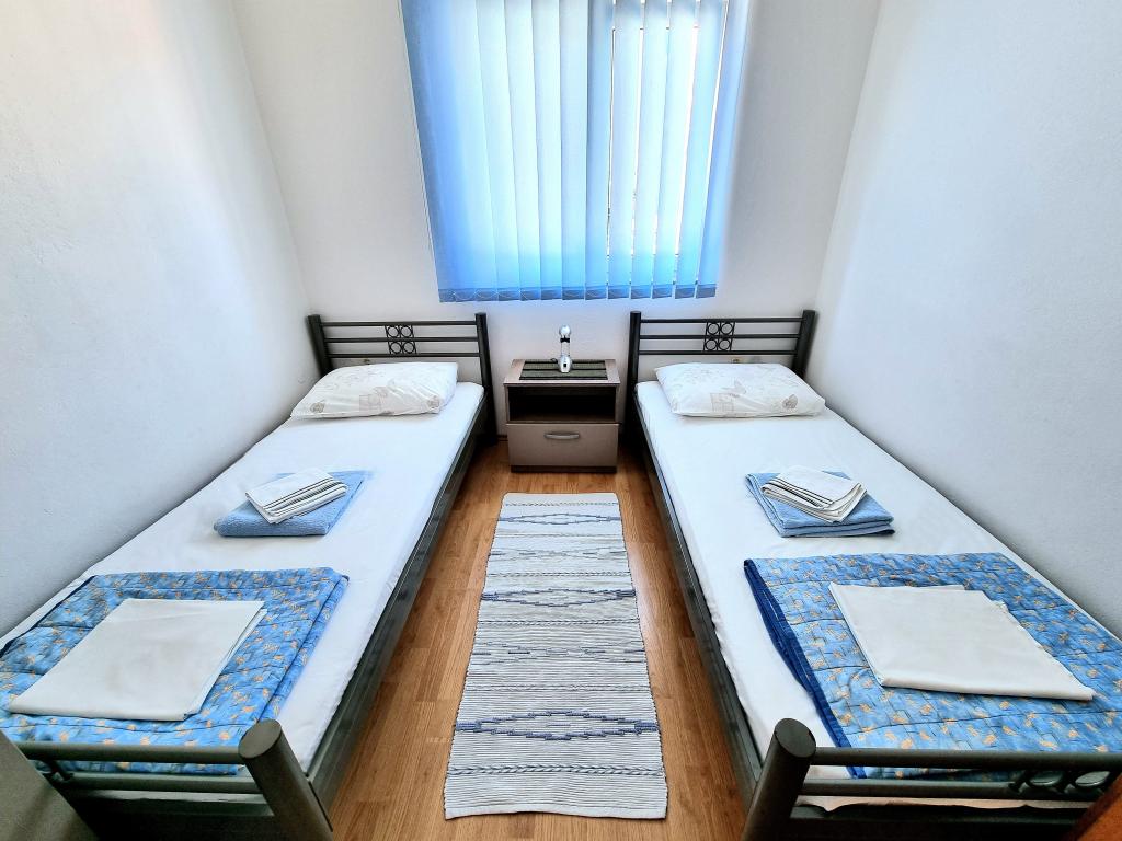 Lejlighederne er beliggende i en nybygget bygning i en rolig beliggenhed. Anlægget ligger 100 m fra stranden og 15 minutters let gåtur langs havet til centrum af Vodice. Lejlighed ID 9016 ligger i stueetagen, mens lejlighed ID 9017 ligger på husets første sal. Hver lejlighed har en separat indgang og består af to soveværelser - det ene med dobbeltseng og det andet med to enkeltsenge, en stue med et smart-tv, et badeværelse, et fuldt udstyret køkken og en terrasse. I køkkenet er der køleskab med fryser, komfur med ovn, mikroovn, kedel til vand og kaffe og alle de retter, der er nødvendige for at tilberede måltider. I nærheden af lejligheden er der supermarkeder, restauranter, strandbar, kaffebar, sportsfaciliteter og mange andre attraktive faciliteter.