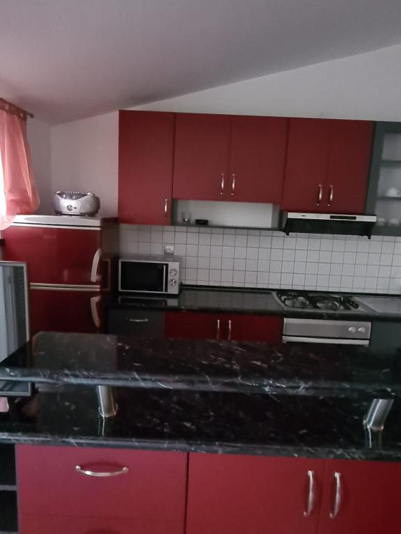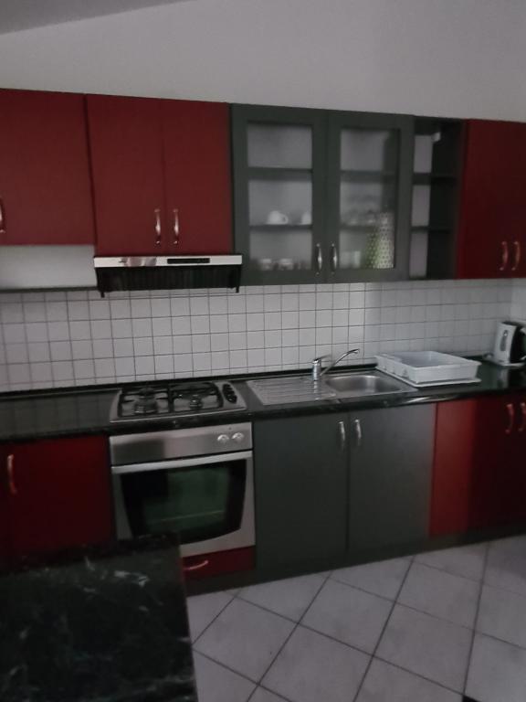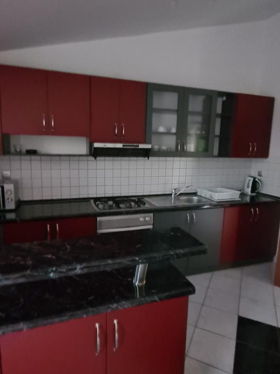 Rød lejlighed: en veludstyret komfortabel lejlighed i en rolig beliggenhed tæt på en smuk strand.