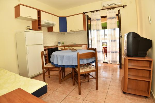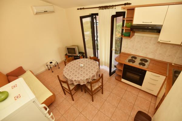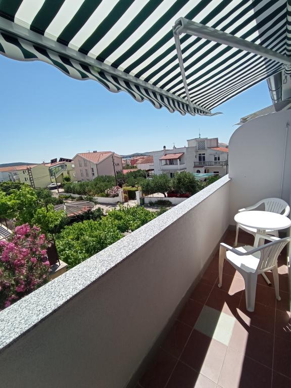 Vodice er en smuk lejlighed med en stor terrasse, 2 værelser og en ekstra seng i køkkenet;