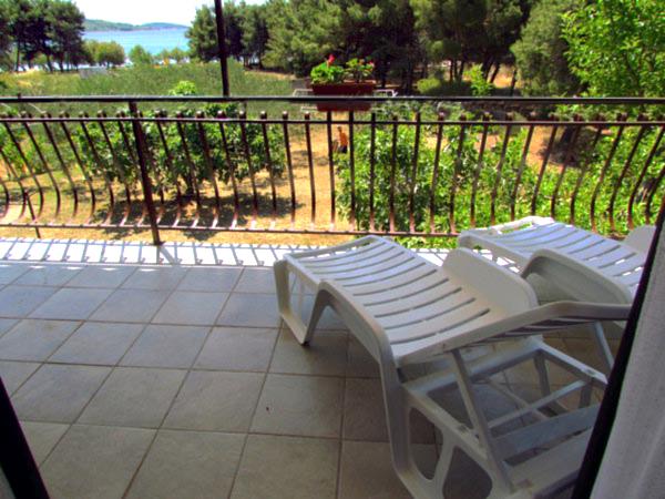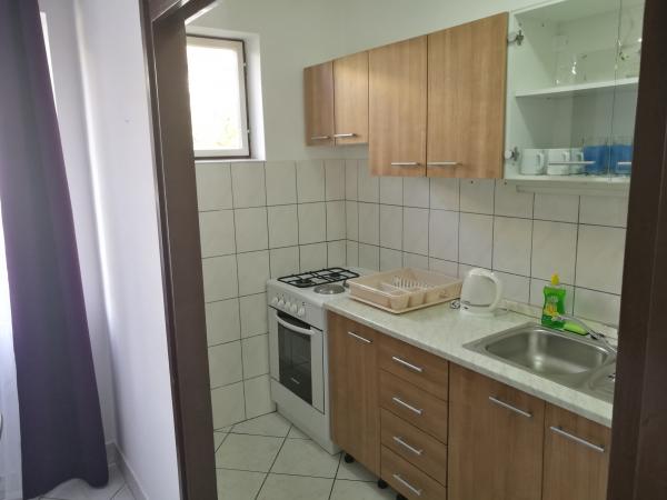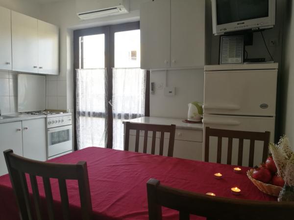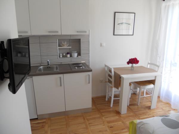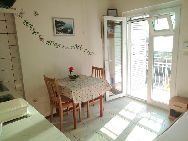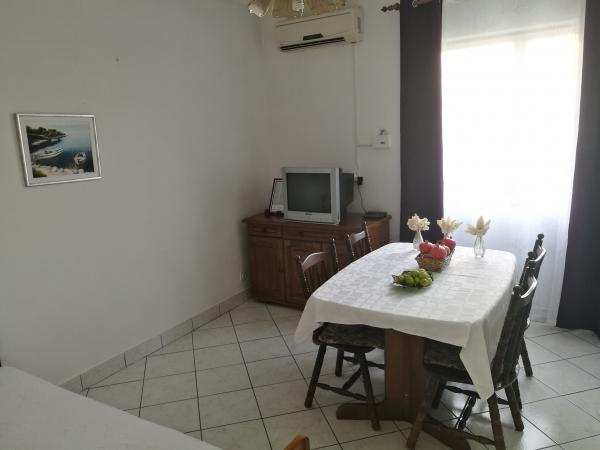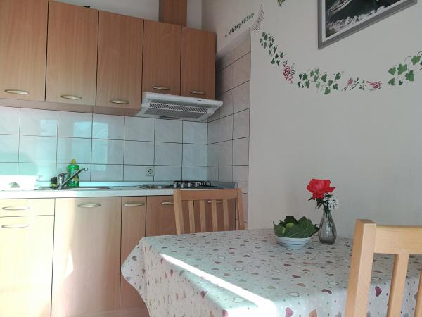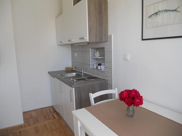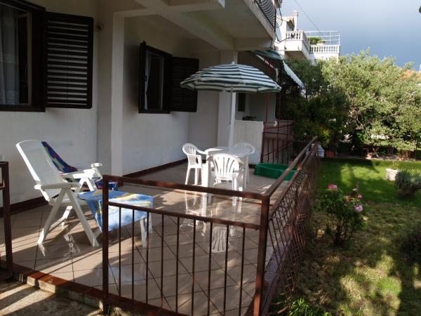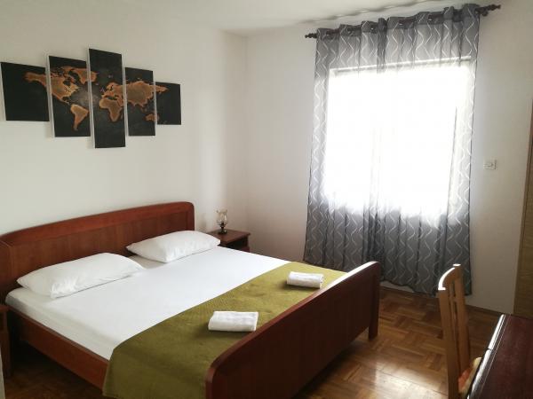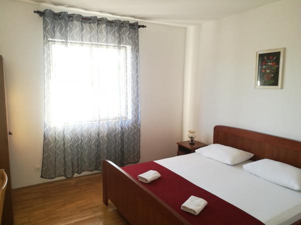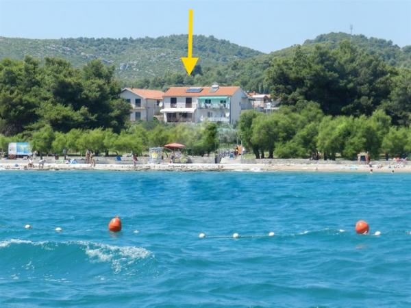 Huset ligger i et roligt kvarter første række til havet og består af 4 lejligheder. Det har en smuk havudsigt, og stranden med scrubs og beton sektioner er ideel til børn. Stranden har mange faciliteter, så du kan nyde jet-ski, vandcykler, vandland, bordtennis, trampolin og mange andre aktiviteter. Når du vil have en pause fra alle aktiviteter, solbadning og svømning, kan du tage en ferie i de nærliggende caféer og restauranter, hvor du kan nyde forfriskende drinks og dalmatiske specialiteter.