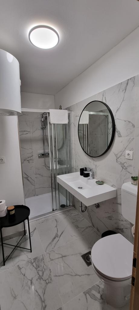 Moderne, nyrenoverede lejligheder med en ideel beliggenhed for alle dem, der leder efter en ferie med en række faciliteter lige ved hånden. Beliggende i centrum af Vodice, nær havet, kun 100 meter fra den blå strand med krystalklart hav og blåt flag. I nærheden af lejligheden er der butikker, restauranter, en stenstrand, en promenade, hvor du nemt kan nå centrum af Vodice ved at gå hele vejen langs havet. Lejlighederne indeholder alt hvad du behøver for et behageligt ophold og en uforglemmelig ferie.