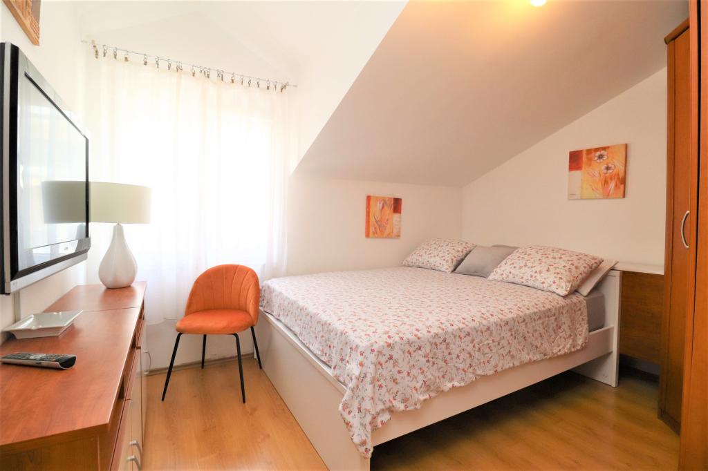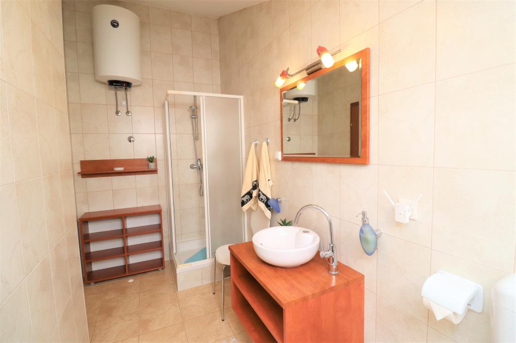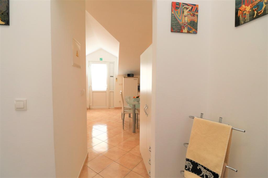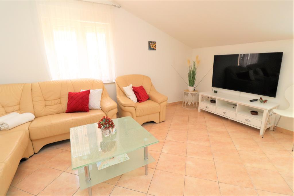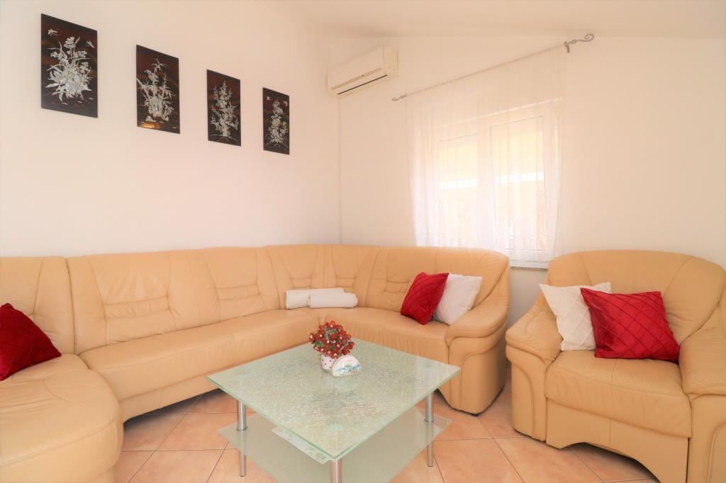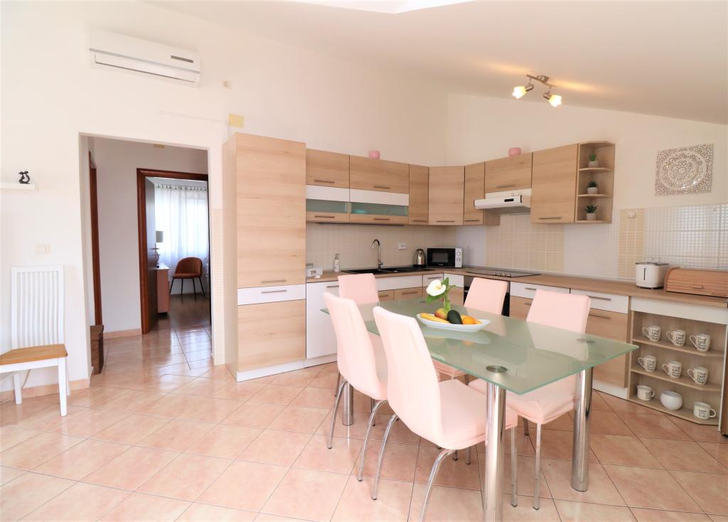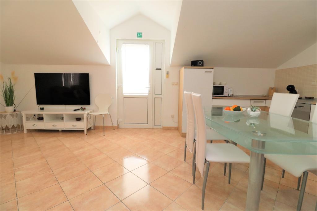 Fuldt udstyrede lejligheder i et roligt område i Vodice med stor terrasse og gårdhave. Lejlighederne er placeret på øverste etage i familiehuset. Terrassen kan adskilles med sidemarkise, hvis det er nødvendigt. Der er jacuzzi og grill i gården. Kæledyr er velkomne. En parkeringsplads til to biler er til rådighed. Strandene ligger omkring 15 minutters gang væk. Opholdsafgift er inkluderet i prisen. Mulighed for transport fra Zadar og Split lufthavne.