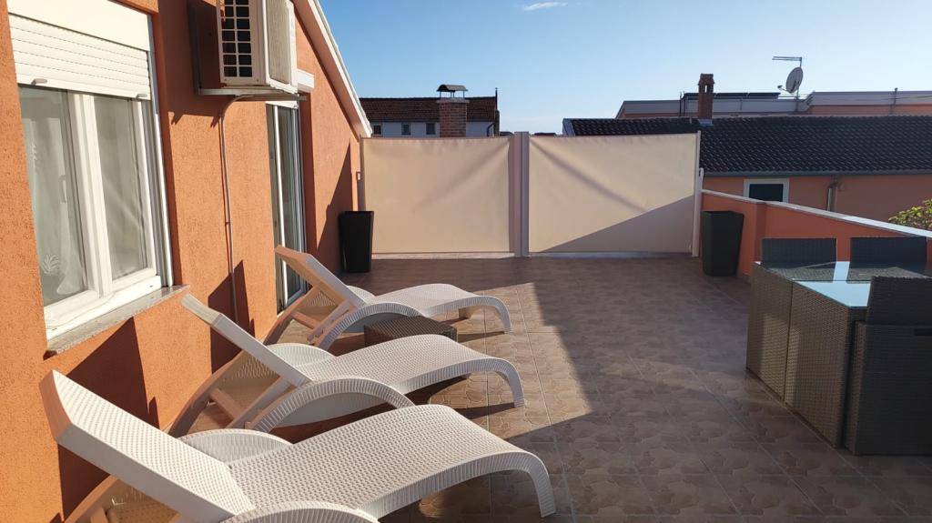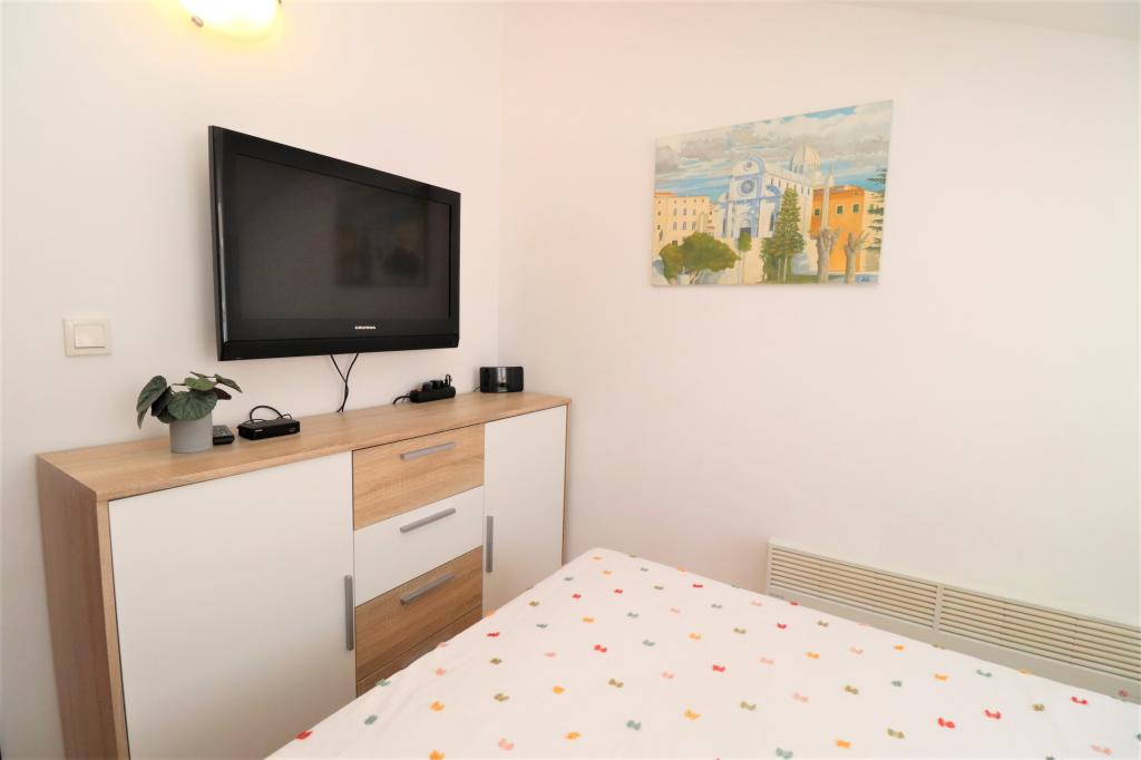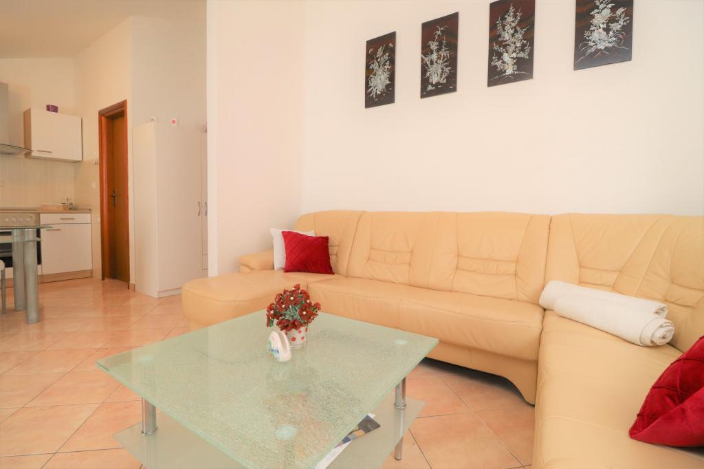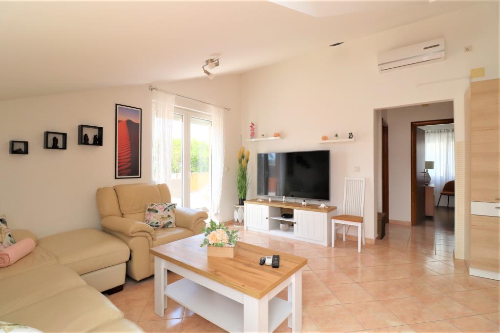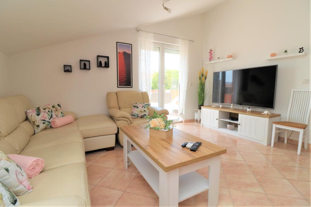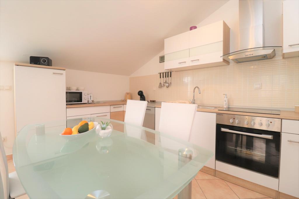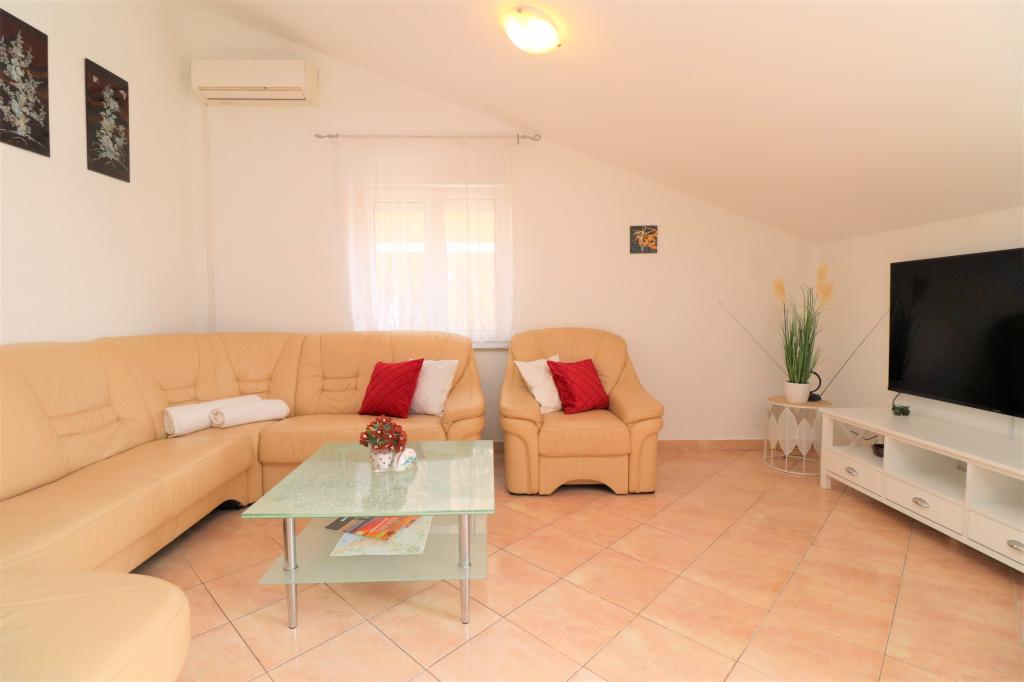 Fuldt udstyrede lejligheder i et roligt område i Vodice med stor terrasse og gårdhave. Lejlighederne er placeret på øverste etage i familiehuset. Terrassen kan adskilles med sidemarkise, hvis det er nødvendigt. Der er jacuzzi og grill i gården. Kæledyr er velkomne. En parkeringsplads til to biler er til rådighed. Strandene ligger omkring 15 minutters gang væk. Opholdsafgift er inkluderet i prisen. Mulighed for transport fra Zadar og Split lufthavne.