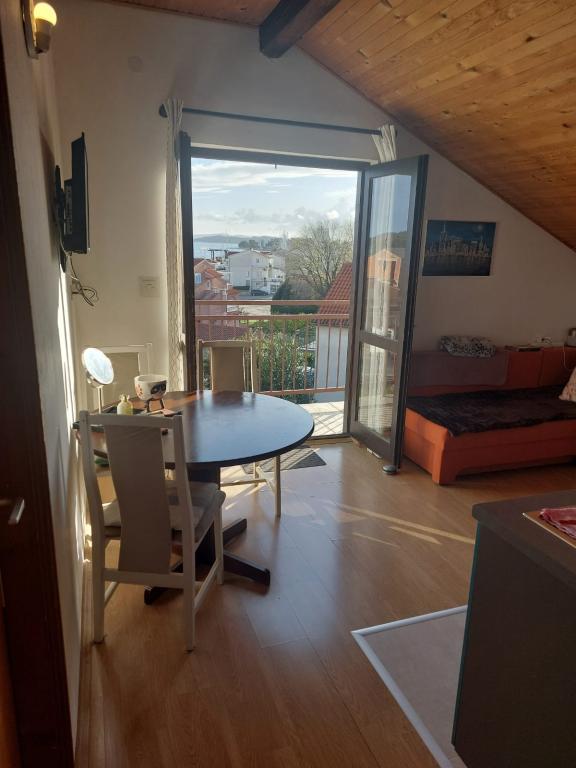 Ferielejligheder Marusic er beliggende i en attraktiv beliggenhed, tæt på stranden, butikker, centre. Græsklædte værftet perfekt til børn, samt parkering, store terrasser omkring huset giver en hyggelig sammenkomster og grill. Mulighed for pleje trajlera i gården. Lejlighederne er anstændigt møblerede, pæne og rene. Mand turist køkken kan du tilberede enkle måltider og grill, der er i gården anvendt, hvilket sparer den friske fisk (fisk marked 200 m), eller en hvilken som helst andet kød. Anlægget er omgivet af grønne områder og består af, i stueetagen, loftsrum. I nærheden er der to nationalparker, nationalpark Krka og Kornati, som er organiserede udflugter med båd, og i den nationale Paek Krka kan nås med bil. Ikke langt fra byen (12 km) er beliggende i byen Sibenik, hvor der er en smuk katedral. James og den gamle del af Sibenik, hvilket bestemt er værd at se.