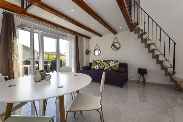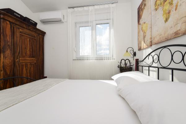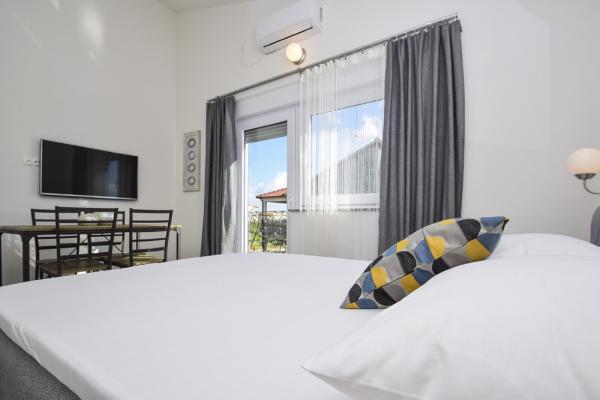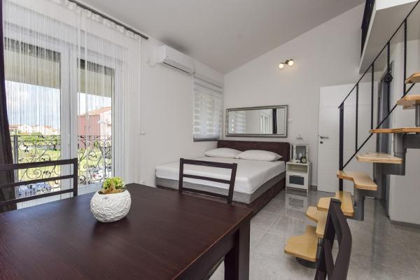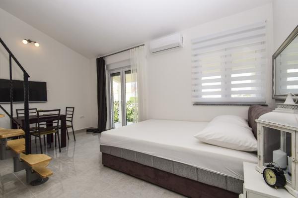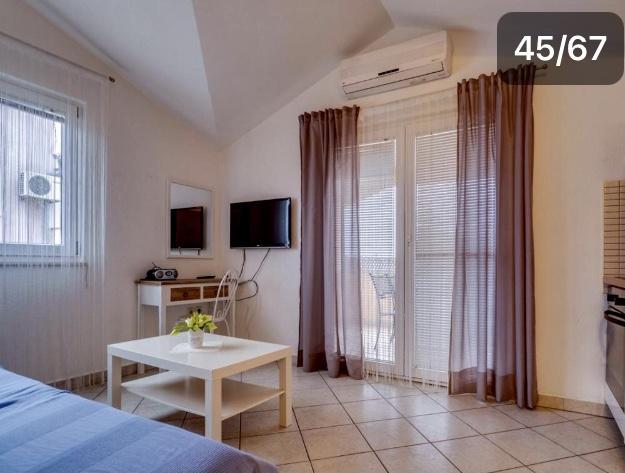 Smukke lejligheder med aircondition, nyligt udstyret med moderne standarder, der vil opfylde og najzahtjenije, hygiejne samme fejlfri. Lejlighederne er beliggende i en stille gade, med en rummelig terrasse og en smuk pool. Nær stranden i en granskov, med masser at gøre for børn og voksne, samt hoteller og butikker. Byens centrum og en af de smukkeste marina ved Adriaterhavet er en let spadseretur langs stranden, 5 minutter.