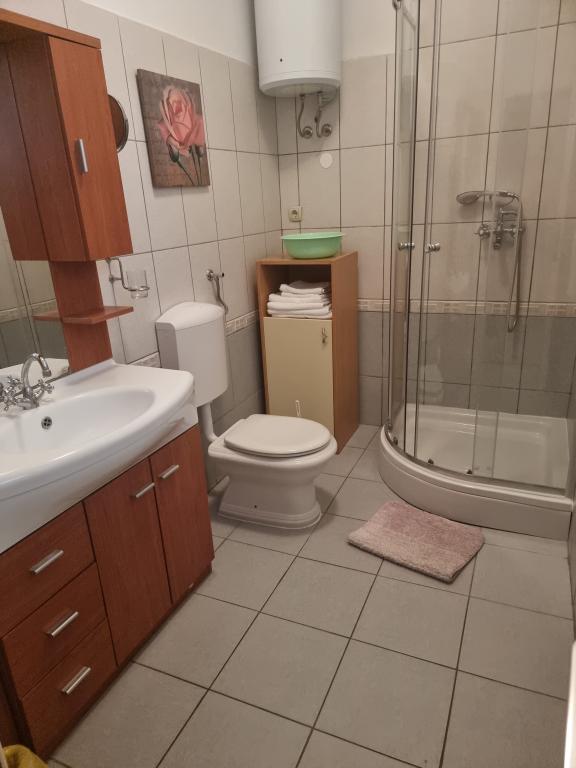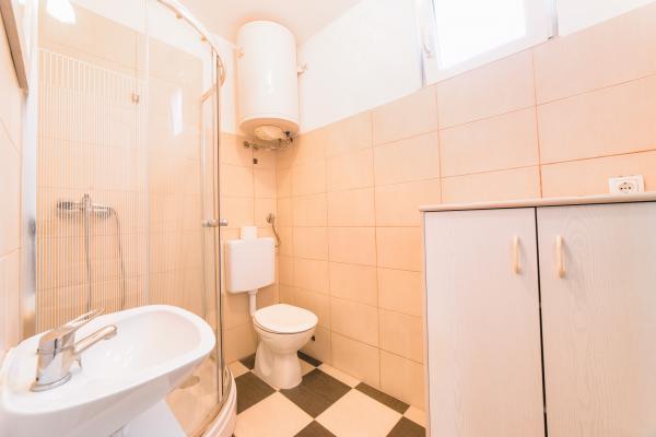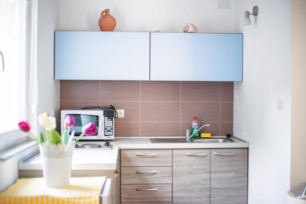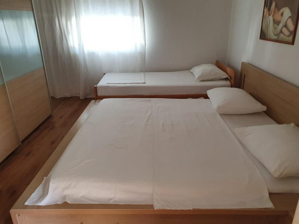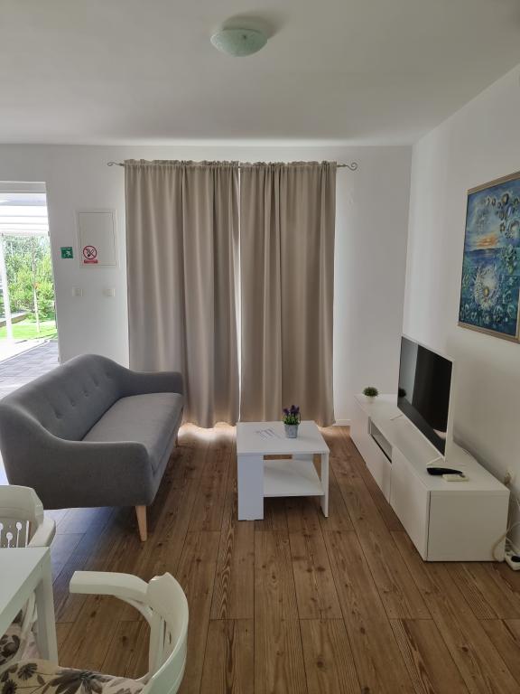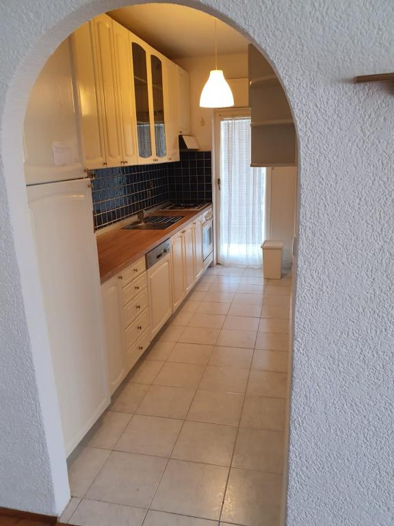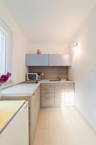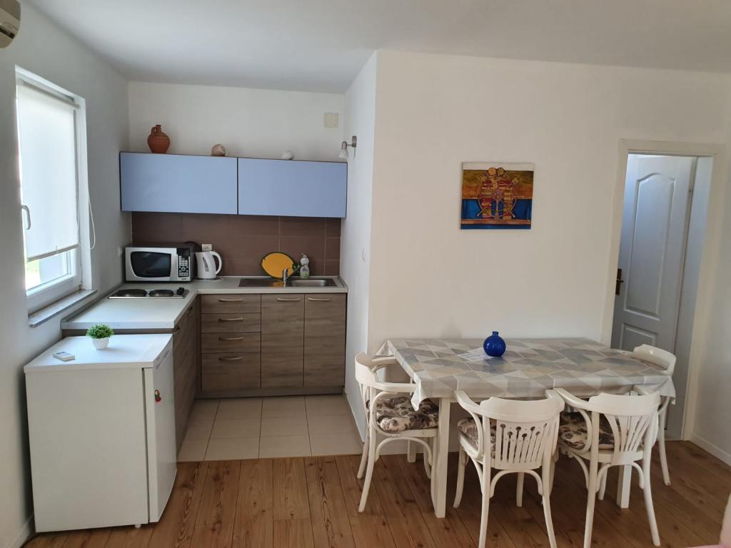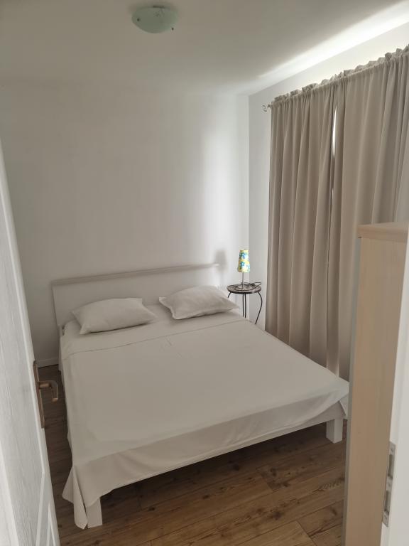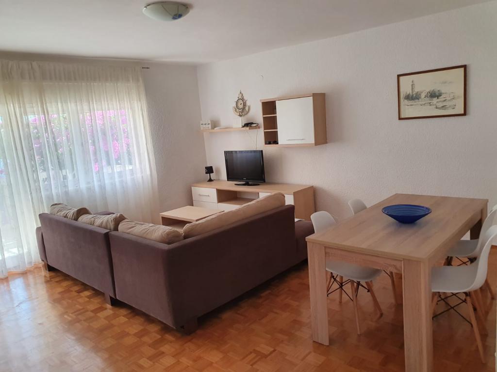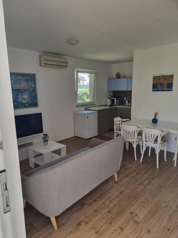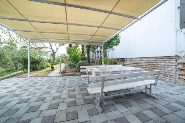 Fuldt møbleret lejlighed i en rolig del af byen, der ligger 100 meter fra havet og 200 meter fra byens centrum. Lejligheden har 2 soveværelser og en sovesofa, et badeværelse og toilet, og et fuldt udstyret køkken. Gården er rummelig med masser af grønne områder og behagelig atmosfære til aften med en grill. Parkering til 2 biler.
