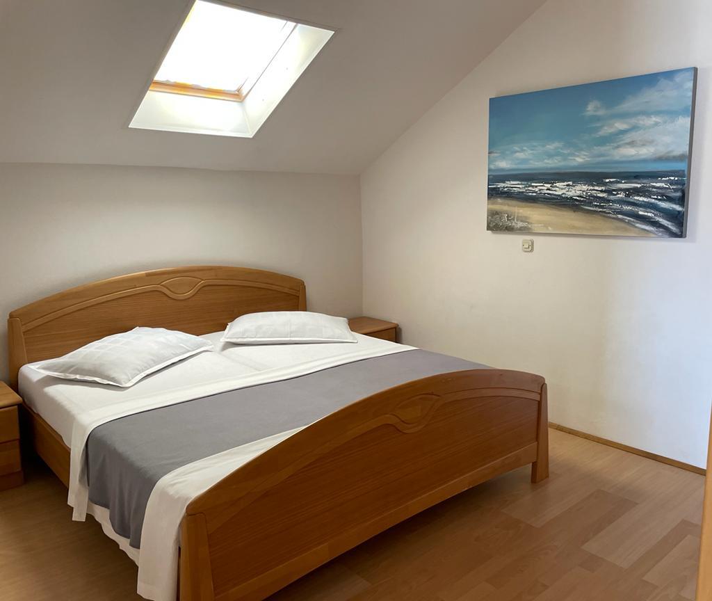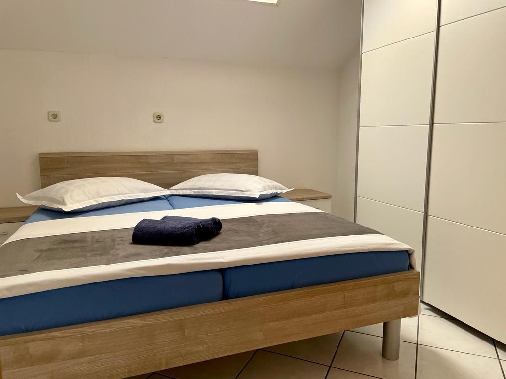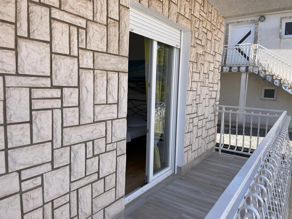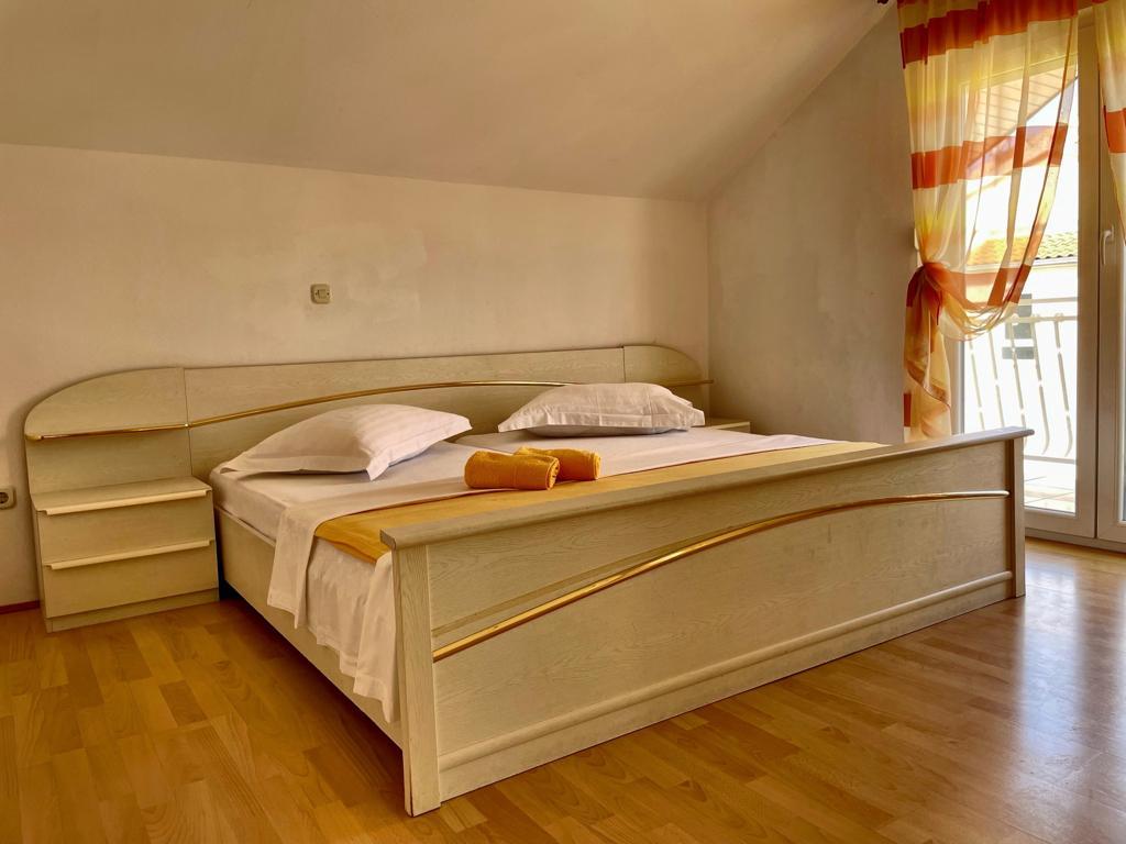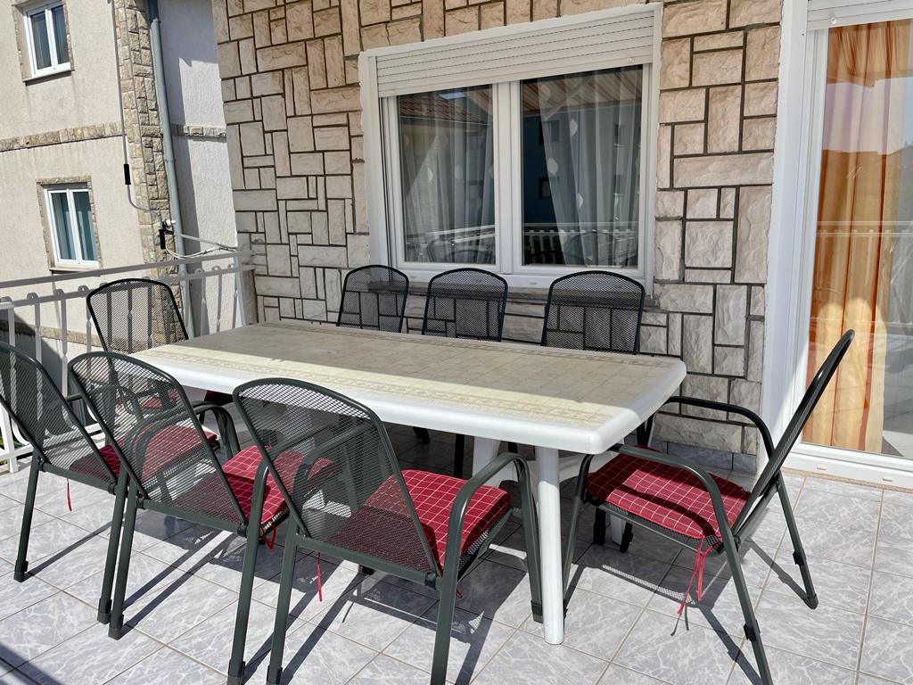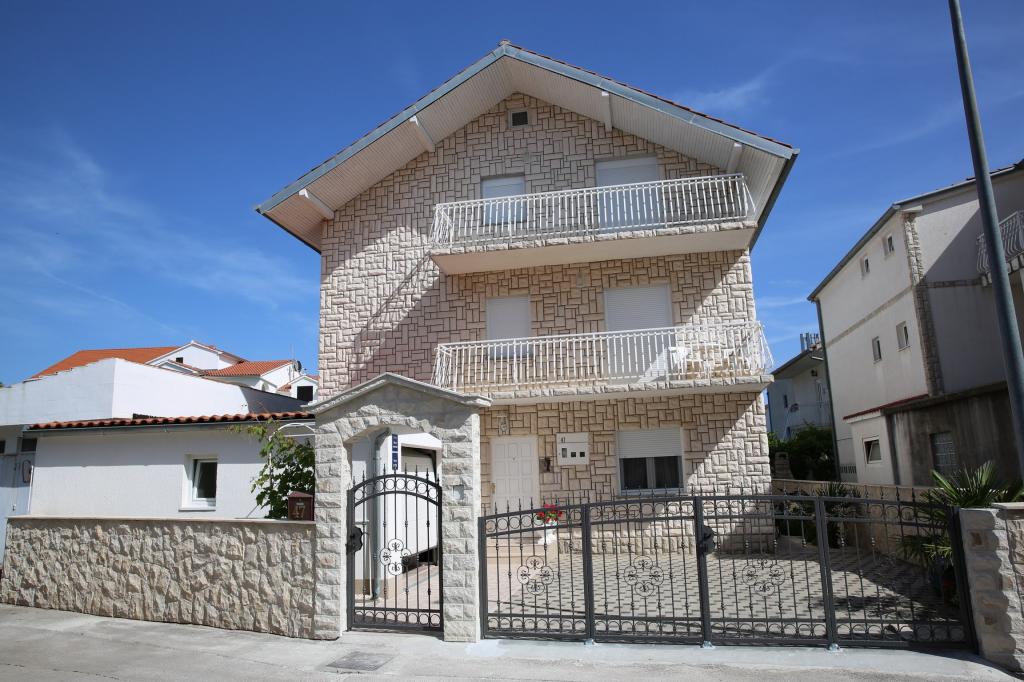 Lejlighed (lejlighed) til leje på første sal i et familiehus i en stille del af Vodice. Huset ligger 5 minutters gang til stranden og 10 til centrum. Lejlighed på 130m2 består af fuldt møblerede fire soveværelser, to badeværelser med toilet, udstyret køkken, balkon og terrasse.
