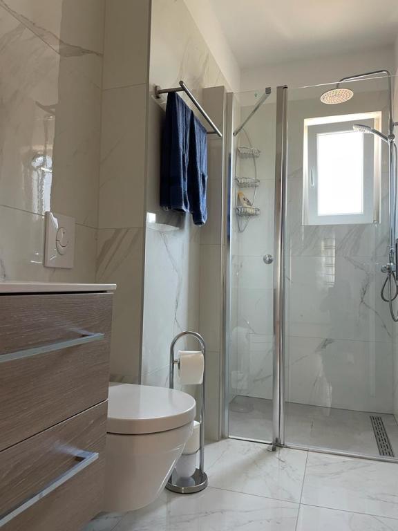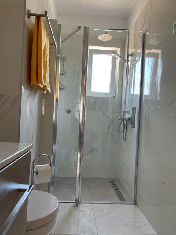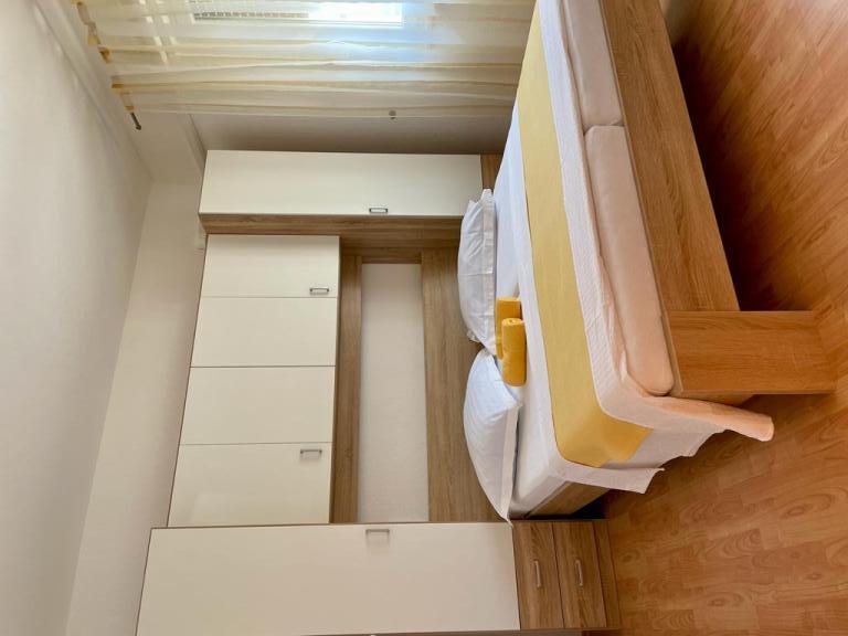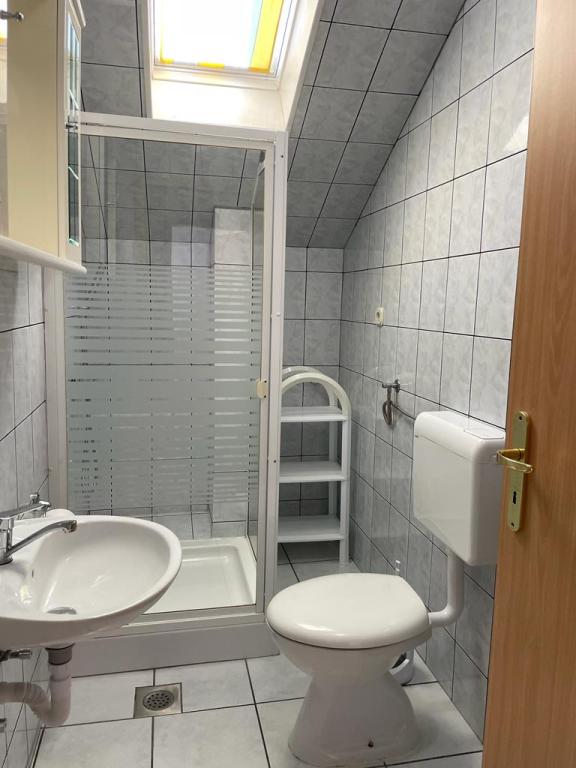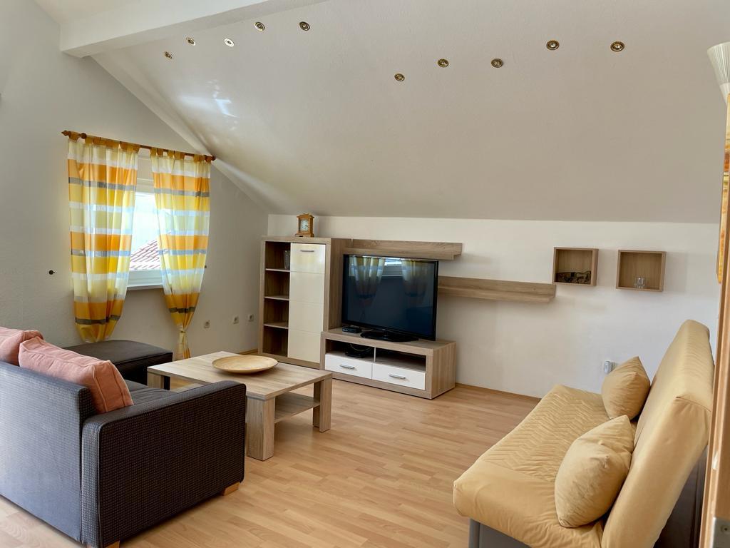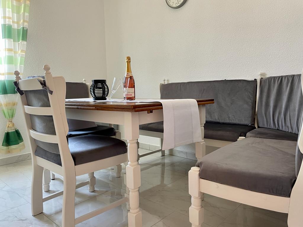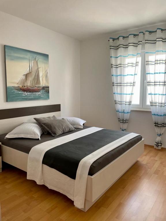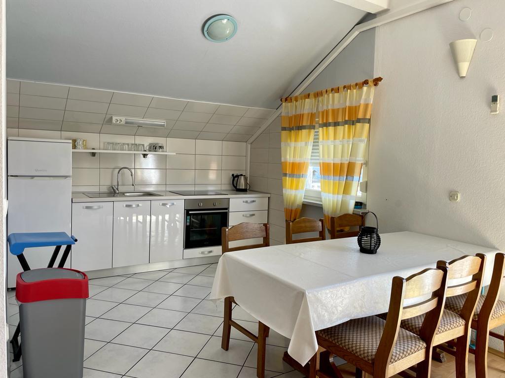 Lejlighed (lejlighed) til leje på første sal i et familiehus i en stille del af Vodice. Huset ligger 5 minutters gang til stranden og 10 til centrum. Lejlighed på 130m2 består af fuldt møblerede fire soveværelser, to badeværelser med toilet, udstyret køkken, balkon og terrasse.