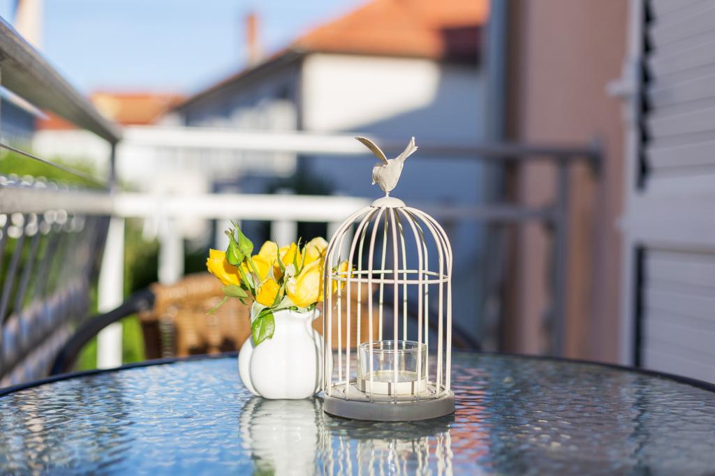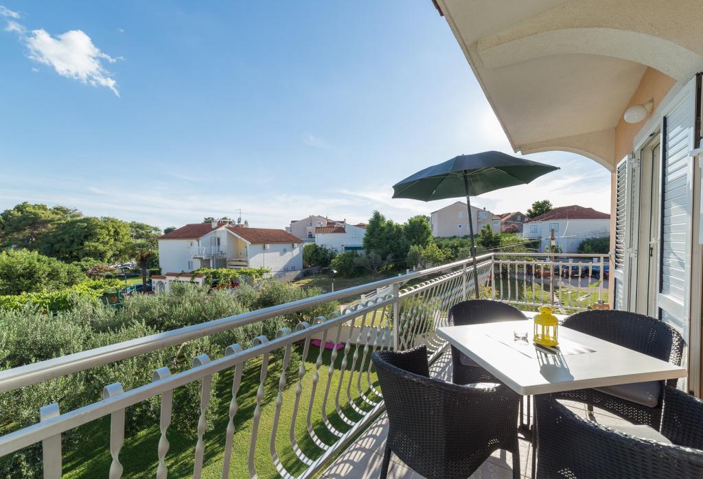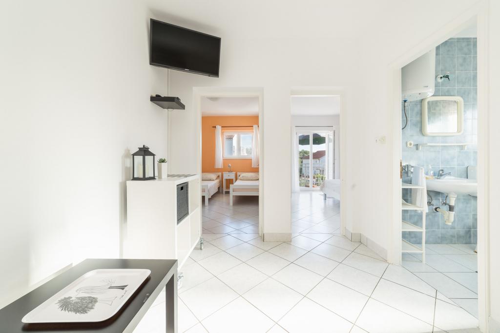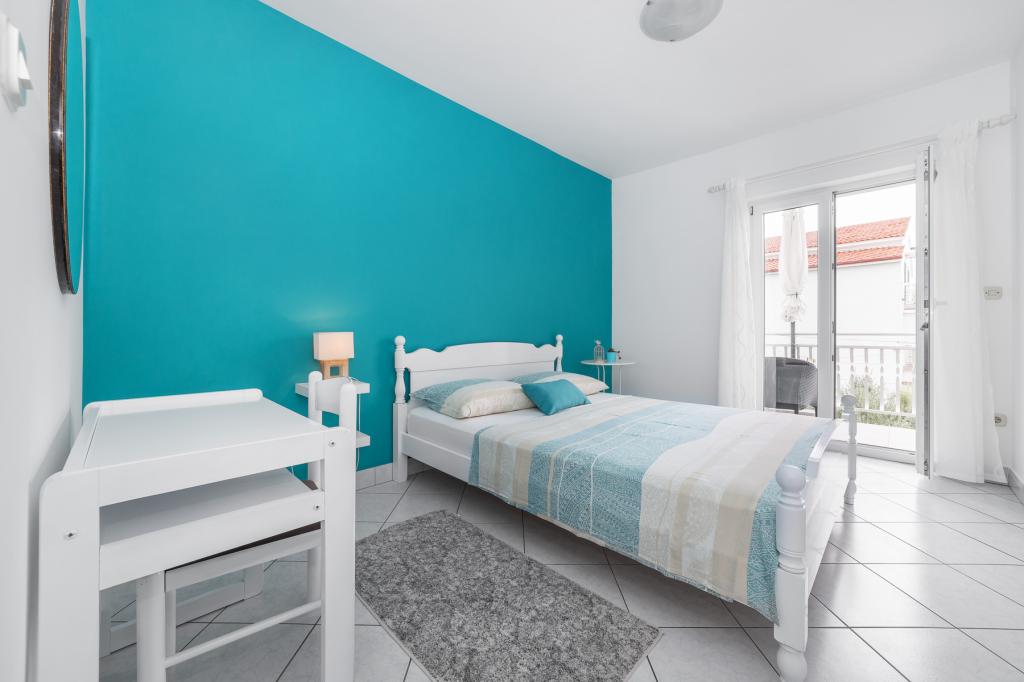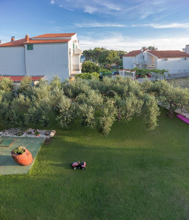 Apartments Salvia ligger i Vodice og ligger 30 meter fra en småstenstrand, som en præget sti uden trafik fører til. Den smukke promenade ved havet ligger kun et minuts gang væk, og dens placering giver dig muligheden for en komplet ferie. Den første butik ligger 2 minutters gang væk, og byens centrum og andre byfaciliteter ligger mindre end 5 minutters gang væk. Lejlighederne Salvia ligger i en rolig del af Vodice, så boligen er ideel til familier med børn. Alle vores gæster råder over en parkeringsplads og en smuk have fyldt med grønt, blomster, morgenfugle og en leg på varme sommeraftener. Vi ønsker at give dig den bedst mulige ferie, så som dine værter er vi tilgængelige for alle dine forespørgsler.