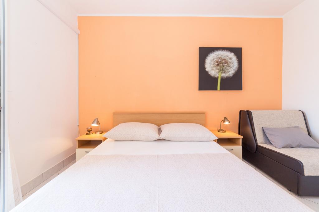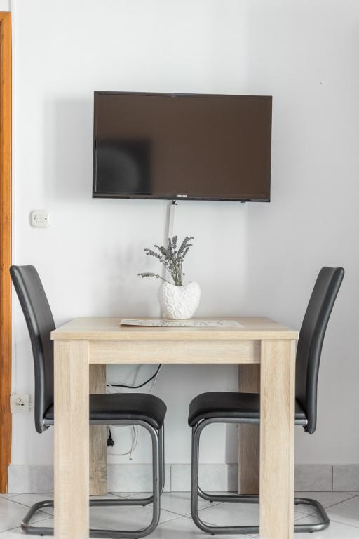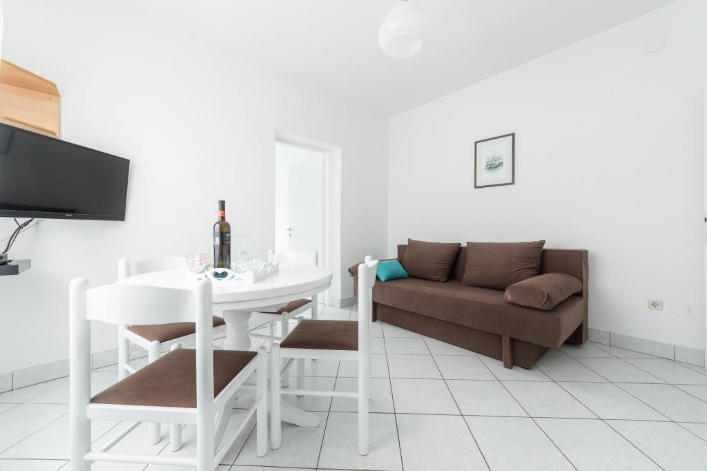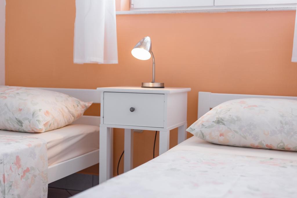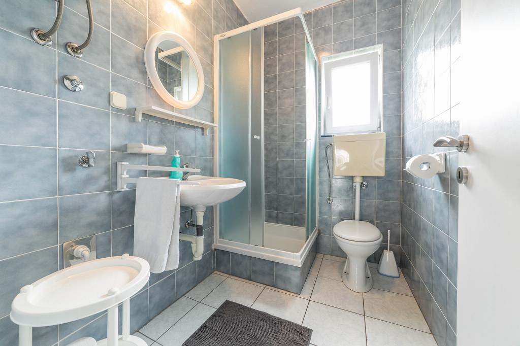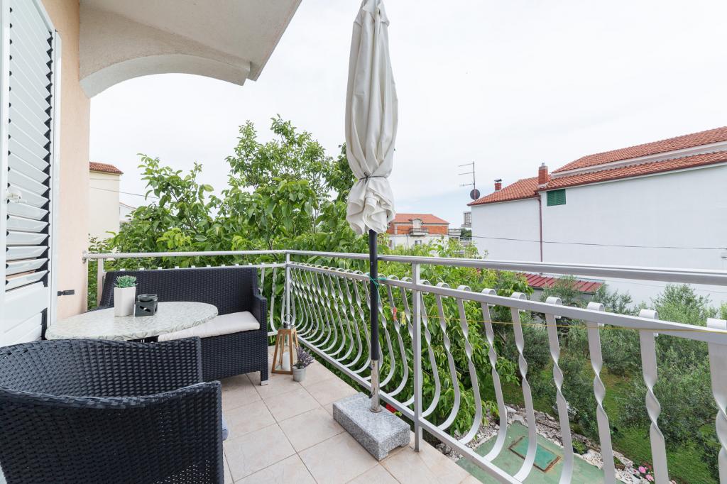 Apartments Salvia ligger i Vodice og ligger 30 meter fra en småstenstrand, som en præget sti uden trafik fører til. Den smukke promenade ved havet ligger kun et minuts gang væk, og dens placering giver dig muligheden for en komplet ferie. Den første butik ligger 2 minutters gang væk, og byens centrum og andre byfaciliteter ligger mindre end 5 minutters gang væk. Lejlighederne Salvia ligger i en rolig del af Vodice, så boligen er ideel til familier med børn. Alle vores gæster råder over en parkeringsplads og en smuk have fyldt med grønt, blomster, morgenfugle og en leg på varme sommeraftener. Vi ønsker at give dig den bedst mulige ferie, så som dine værter er vi tilgængelige for alle dine forespørgsler.
