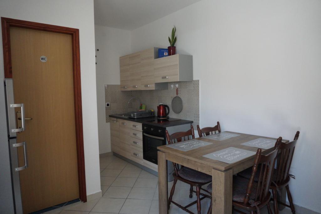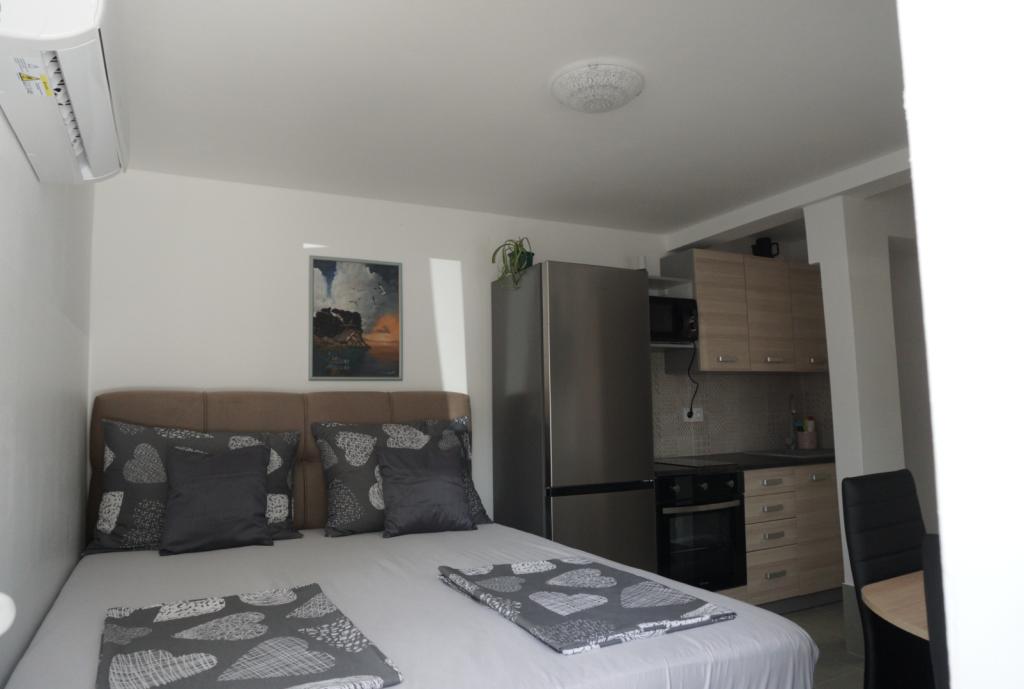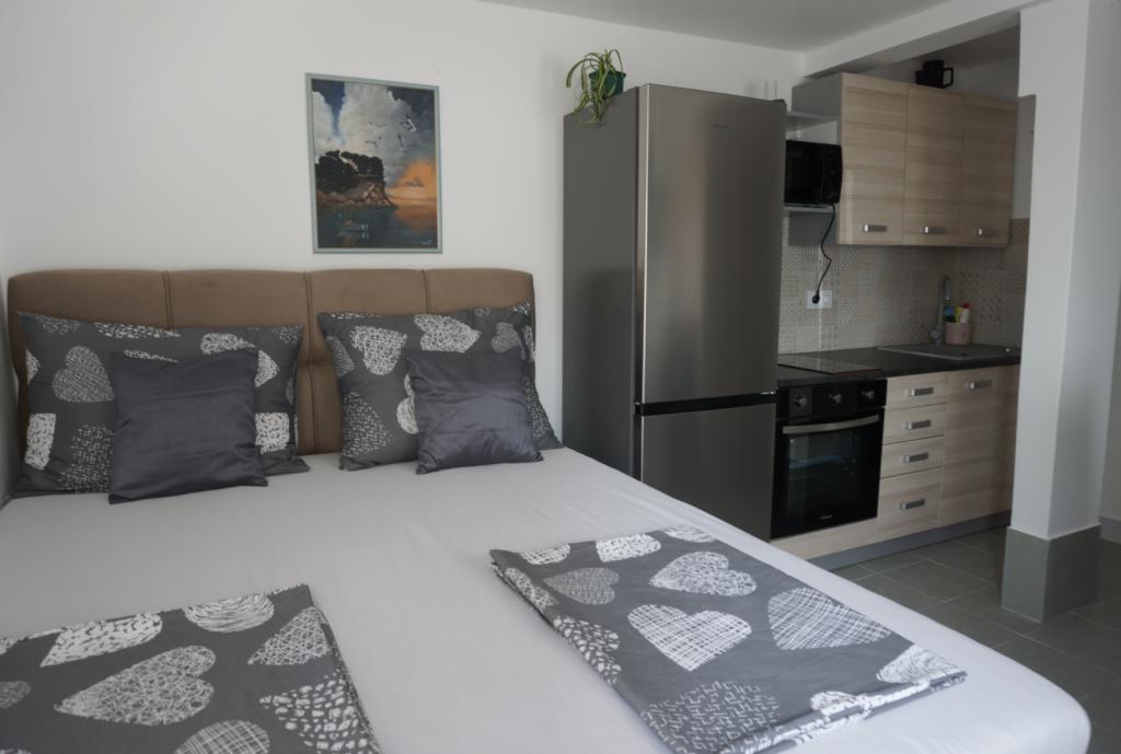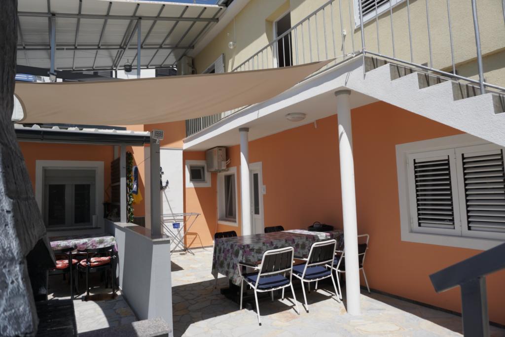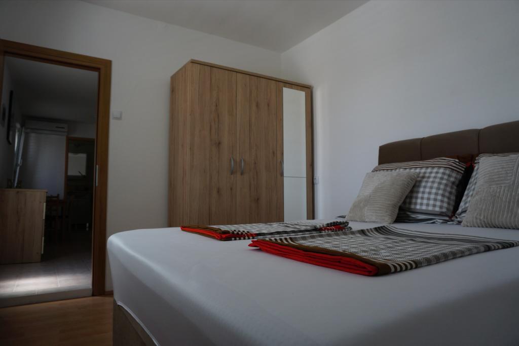 Velkommen til Apartments Skledar! Oplev ægte komfort i vores nyrenoverede lejligheder beliggende i hjertet af Vodice. Vores adresse, Ulica blata 10, ligger kun 200 meter fra den fortryllende Blå Strand, som er det perfekte valg for strandelskere. Derudover er vi kun 350 meter fra byens centrum, hvilket sikrer nem adgang til den pulserende byatmosfære. Alt hvad du behøver er lige ved hånden, inklusive et købmandsforretning kun 50 meter væk. Karakteristika: Vores nyrenoverede lejligheder har en moderne indretning og indeholder faciliteter tilpasset din komfort og praktiske anvendelighed. Hver af vores 3 lejligheder tilbyder en privat terrasse, der giver dig et personligt paradis at slappe af og nyde de fredelige omgivelser. Havudsigt: Selvom vores soveværelser ikke har havudsigt, tilbyder en af vores lejligheder en begrænset havudsigt, som du kan se fra køkkenet og terrassen. Fantastisk beliggenhed: Vores lejligheder ligger i en stille gade og tilbyder et fredeligt tilflugtssted efter en dag med sightseeing.