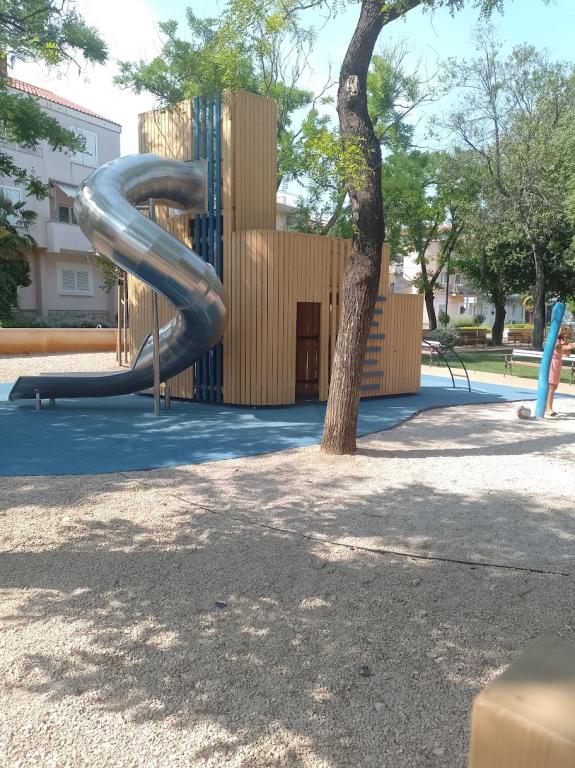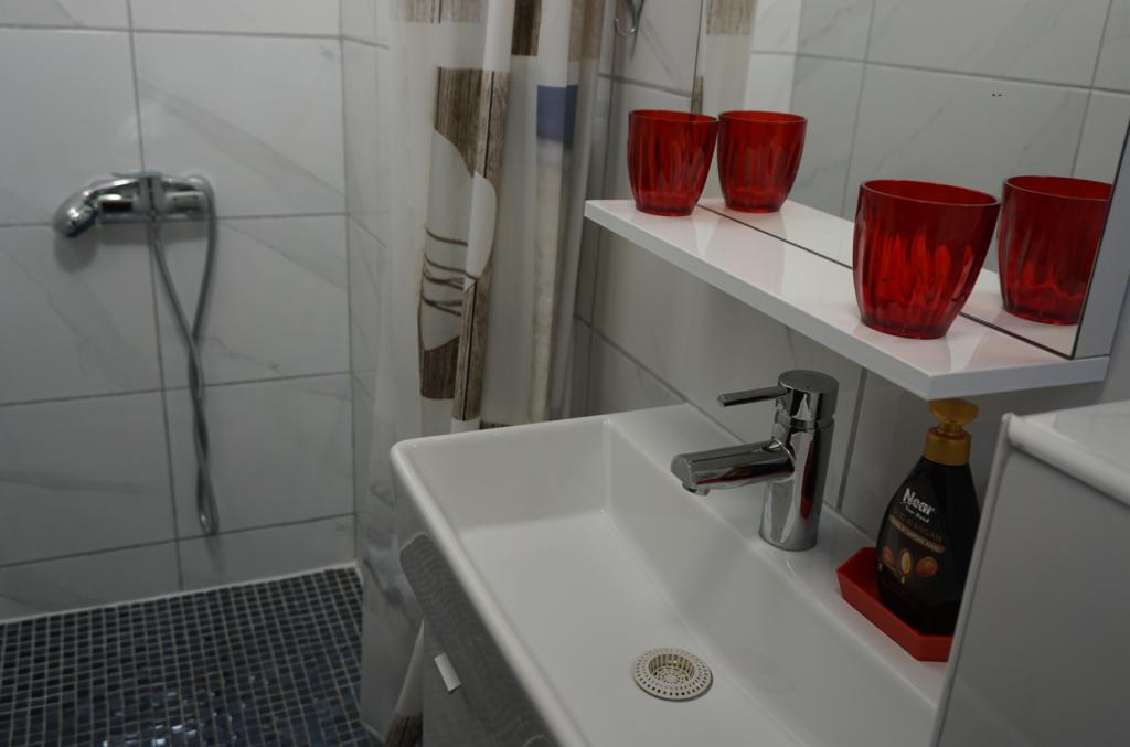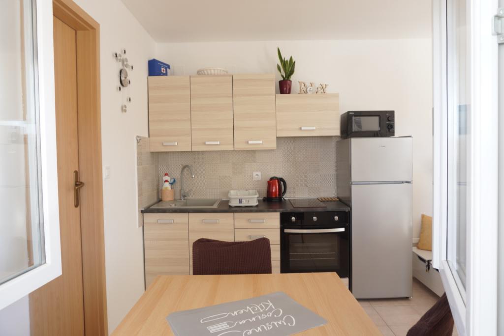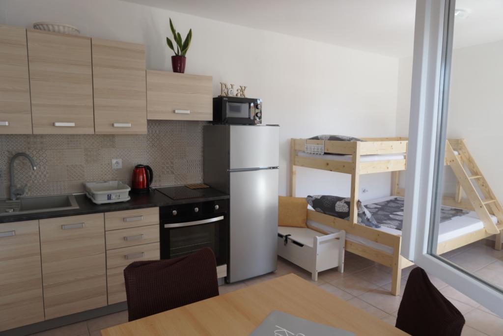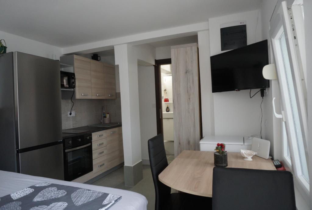 Velkommen til Apartments Skledar! Oplev ægte komfort i vores nyrenoverede lejligheder beliggende i hjertet af Vodice. Vores adresse, Ulica blata 10, ligger kun 200 meter fra den fortryllende Blå Strand, som er det perfekte valg for strandelskere. Derudover er vi kun 350 meter fra byens centrum, hvilket sikrer nem adgang til den pulserende byatmosfære. Alt hvad du behøver er lige ved hånden, inklusive et købmandsforretning kun 50 meter væk. Karakteristika: Vores nyrenoverede lejligheder har en moderne indretning og indeholder faciliteter tilpasset din komfort og praktiske anvendelighed. Hver af vores 3 lejligheder tilbyder en privat terrasse, der giver dig et personligt paradis at slappe af og nyde de fredelige omgivelser. Havudsigt: Selvom vores soveværelser ikke har havudsigt, tilbyder en af vores lejligheder en begrænset havudsigt, som du kan se fra køkkenet og terrassen. Fantastisk beliggenhed: Vores lejligheder ligger i en stille gade og tilbyder et fredeligt tilflugtssted efter en dag med sightseeing.