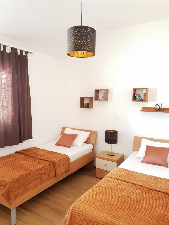 Luksuslejligheder, den ene på 84 m2 (ID: 24697) og den anden på 58 m2 (ID: 24698) er beliggende på første sal i et familiehus beliggende i en rolig del af Vodice, omgivet af 1700 m2 middelhavshave, kun 10 min. gang fra centrum og nærmeste strand, og 5 min. fra butikken. Lejlighederne er moderne indrettede, har aircondition, SAT-TV, internet (Wi-Fi), vaskemaskine, opvaskemaskine. Begge er toværelses, idet værelserne med dobbeltseng er placeret på gallerierne, som også har aircondition. Foran huset er der overdækket parkeringsplads og sommerkøkken med grill. I centrum af Vodice, i et roligt område, på adressen Plimica 96A, lejer vi et feriehus med gårdhave og parkering. Huset er udstyret med alt nødvendigt for en behagelig ferie og et længere ophold. Send os din forespørgsel, og vi giver dig vores bedste tilbud. velkommen :)