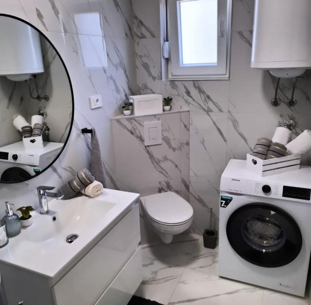 Lejlighederne ligger i en rolig del af Vodice, hvilket er et perfekt sted til en ferie. Lejlighederne er fuldt udstyrede, så du har aircondition i alle værelser, TV/SAT, WI-FI, et køkken med alt udstyr og parkering foran bygningen. På stranden er der parkering hele dagen, som er inkluderet i lejeprisen. For mere information kan du kontakte os på Gmail eller telefonnummer. Ved din ankomst er værten klar til at møde dig og vise dig restauranter, caféer, konditorier, strande og parkeringspladser. Hilsen.