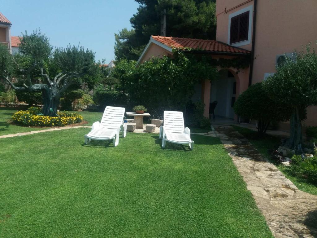 Apartments Zlatka Srdarev er beliggende i en rolig del af byen Vodice kendt som Blata; tæt på Punta hotel. Den største strand ligger kun 150 m fra Zlatka-lejligheden, og byens centrum er 300 m væk. Lejlighederne ligger på en privat gade og er omgivet af smuk vegetation og middelhavsplanter som oliventræer, vinranker, figner, kiwier... Vi kan prale af, at vi to gange er blevet belønnet med den bedst anlagte have. Gæsterne kan benytte grillen. Vores lejligheder er helt adskilt fra hinanden, og hver lejlighed har sin egen terrasse. Gæsterne har adgang til parkering i gården. Kom og nyd med os!
