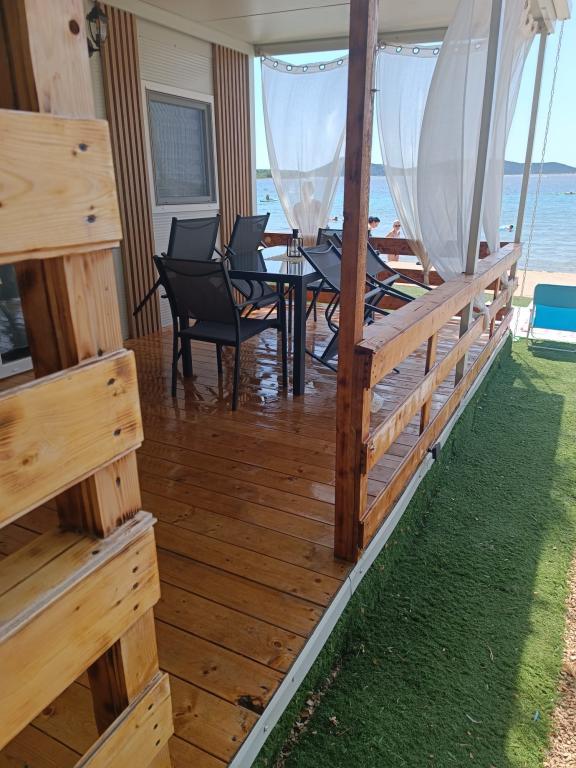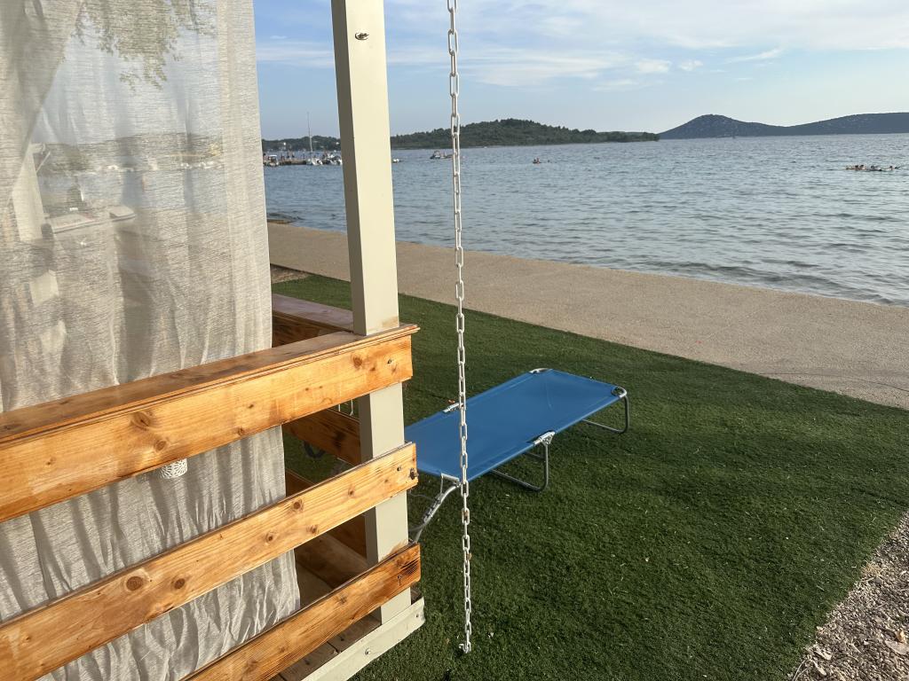 Villa Kiara ligger på Imperijal Vodice parkeringsplads, i første række til havet (5 m fra terrassen til havet). Huset har 2 soveværelser med store senge, en ekstra seng til 2 personer. Køkken, grill, køleskab, aircondition, TV, internet, suppebræt og alt andet for et behageligt ophold.