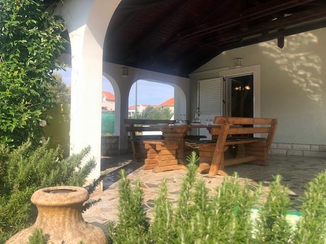 Hele huset kun til dig! Paradis for familier! Velkommen til Villa Melosa! Komfortabelt feriehus i Vodice med privat tennisbane. Huset kan rumme op til 10 gæster. Det har 5 soveværelser, 3 badeværelser, et køkken, en stue og en rummelig terrasse, hvor du kan slappe af og nyde grillaftener og en udendørs jacuzzi til 5 personer. Huset har aircondition. Der er 3 parkeringspladser til rådighed i bygningen, to med overdækket garageplads. Hele ejendommen er indhegnet, så du kan være sikker på, at børn ikke kommer ud på vejen og kan lege ubekymret i den rummelige gårdhave.