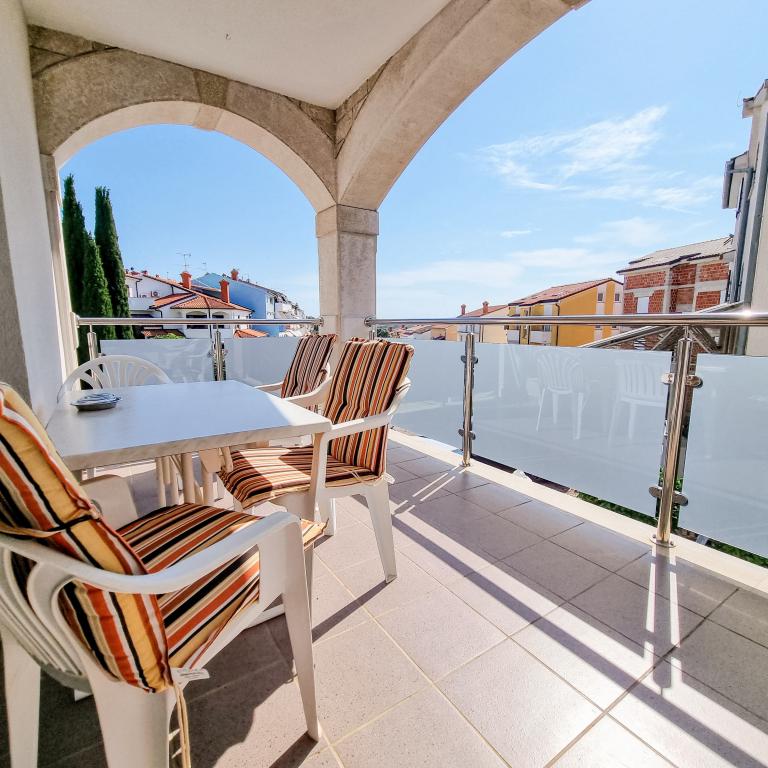 Min oplevelse med at bo i Senkovic-familiens lejlighed. Denne tekst er på engelsk, men jeg er hollandsk. Den ligger blandt mange andre lejligheder på bakken i Vrsar, hvor selve kirken kan ses fra en afstand af cirka 1 kilometer. Den nærmeste restaurant (Rimini eller den nærliggende Vrsaranka) ligger også et minuts gang derfra, og supermarkedet lige rundt om hjørnet ligger to minutters kørsel derfra. Jeg har boet hos disse mennesker før, og der var grunde til det. Den første var, at jeg rejste alene, så jeg ledte efter noget, jeg stolede på, deraf min beslutning om at vende tilbage. Den anden grund var, at disse mennesker alt andet end er vanskelige; de vil altid besvare dine spørgsmål og imødekomme alle dine behov. Selve lejligheden er for nylig blevet renoveret, og det kan man se. Den gammeldags 80'er-stemning er der stadig (hvilket gør det hyggeligt igen), men faciliteterne er blevet grundigt opdateret. Nye køleskabe, køkkenapparater og et badeværelse. Alt hvad du behøver for en uge er inkluderet. Jeg skulle bare købe dagligvarer, og så var jeg klar til at slappe af og nyde solen. Fremragende Wi-Fi også (koden står på et stykke papir ved køkkenbordet). Fantastisk for folk som mig på ferie. Du ved, du kan se Netflix på din balkon. Det var en dejlig ferie. Der var masser at lave, og lejligheden er et behageligt fristed at vende tilbage til efter en aften i byen. Familien Senkovic, tak på vegne af Jeffrey 😉