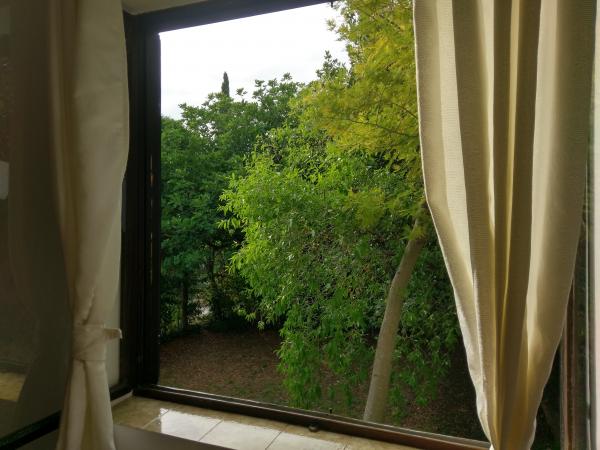 Vi boede i begge studier i 2 uger i juni/juli. Vi var 4 personer. Hvert studie havde et soveværelse med 2 senge, aircondition og fluenet på vinduerne. Køkkenet var lille, men havde alt hvad du behøver. Køleskab, gaskomfur, vask og service. Der er også et lille forværelse. Vi spiste udenfor. Bordet og stolene stod foran studiet. Du kan handle i byen eller i det store supermarked ved indgangen til byen. Du kan parkere ved huset. Studiet var meget rent og ryddeligt. Håndklæder er på badeværelset. Der manglede intet. Vi savnede ikke tv'et. Det tager 3,5 minutter fra boligen til græsplænen på stranden. Der er altid plads på stranden. Der er brusere, toiletter, græsplæne, skov, restaurant og bar. Vi havde rigtig god kontakt med værtindens datter, hun ordnede alt. Vi var i stand til at afklare alt med hende, via e-mail eller telefon. Tak igen til hende. Vi følte os virkelig godt tilpas.