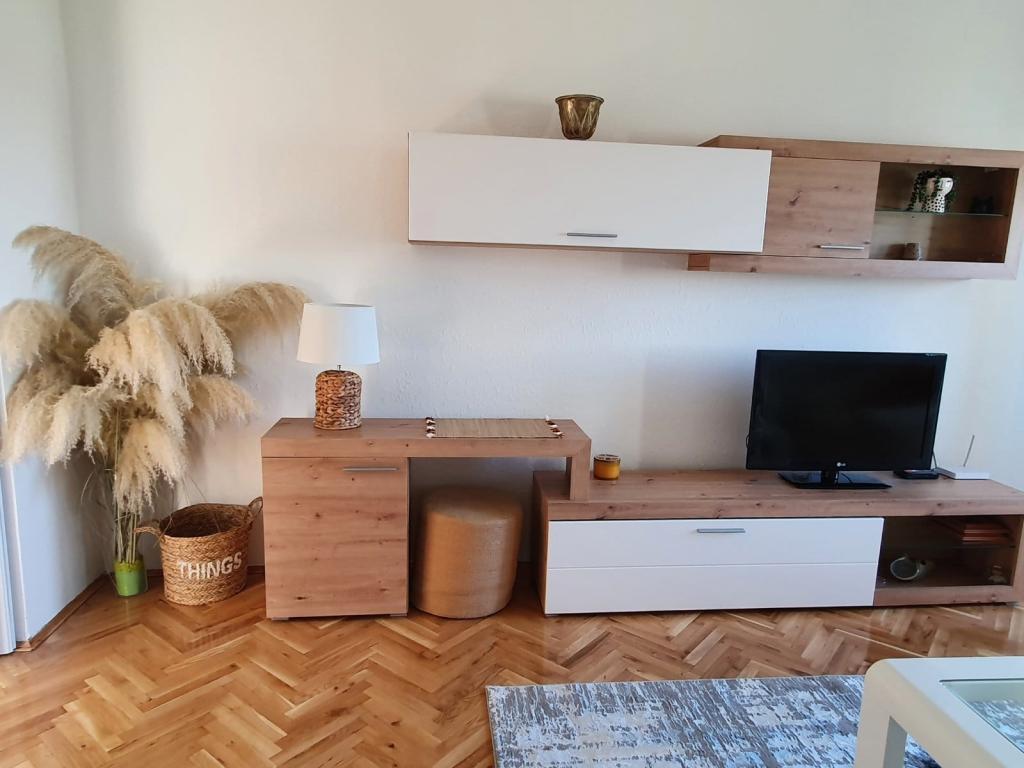 Dejlig lejlighed udlejes bestående af: soveværelse, stue, køkken med spisestue, entre og badeværelse. Areal 56 m2 Den er beliggende i en beboelsesejendom på 4. sal (bygningen har 2 elevatorer) - Indeholder 2 altaner med en smuk udsigt over Donau. Lejligheden udlejes hele året rundt og har centralvarme. Det ligger i byens centrum ved siden af Eltz-slottet. Parkering foran bygningen. Faciliteter: en smuk promenade langs Donau nær bygningen, indkøbscenter Golubica (2 minutter til fods) og alle andre caféer og restauranter 5 minutter til fods. Lejligheden har gratis internethastighed på 10mb/s.