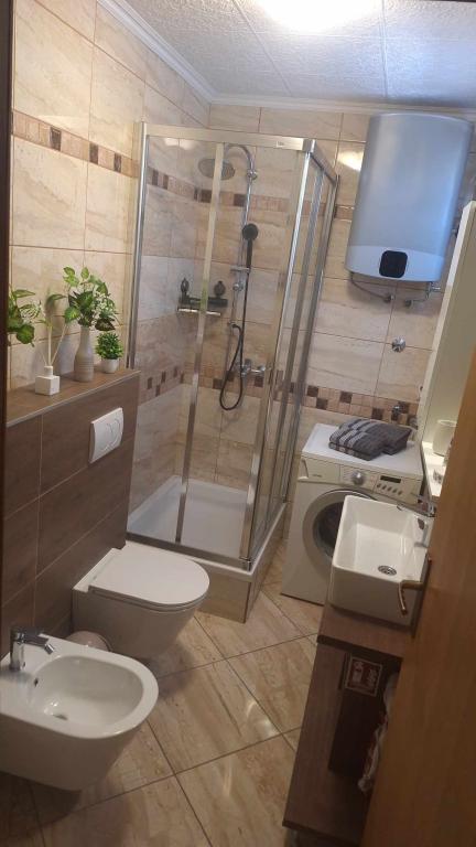 Lejlighed Galešić er nyligt og pænt møbleret. Den indeholder alt hvad du behøver for hvile og ferie (aircondition, vaskemaskine, tv, internet, mikroovn, håndklæder ...). Ved ankomsten blev vi mødt af vin og is til børnene - ekstraordinær opmærksomhed på børnenes store glæde. Lejligheden ligger 50 meter fra et bageri og 100 meter fra en lokal butik. Det ligger 5 minutters gang fra Zablaće -stranden - stranden strækker sig langs hele landsbyen - for en stille nydelse ved havet. Lejligheden ligger 5 minutter væk fra stranden Brodarica i bil - her finder du en legeplads, fitness, restaurant, is, liggestole og parasoller, fitness. Denne strand kan nås i bil, og parkering er gratis. Det er 10 minutter i bil til større butikker - f.eks. Lidl, Plodine, Kaufland og også til centrum af Šibenik. Lejligheden ligger også 5 minutter i bil fra Solaris -komplekset, hvor der også er et lille betalt vandland Dalmatia. Goran og hans kone er meget opmærksomme og omsorgsfulde værter, der tager sig af gæsten og øjet og hånden for detaljerne i lejligheden. Jeg anbefaler!